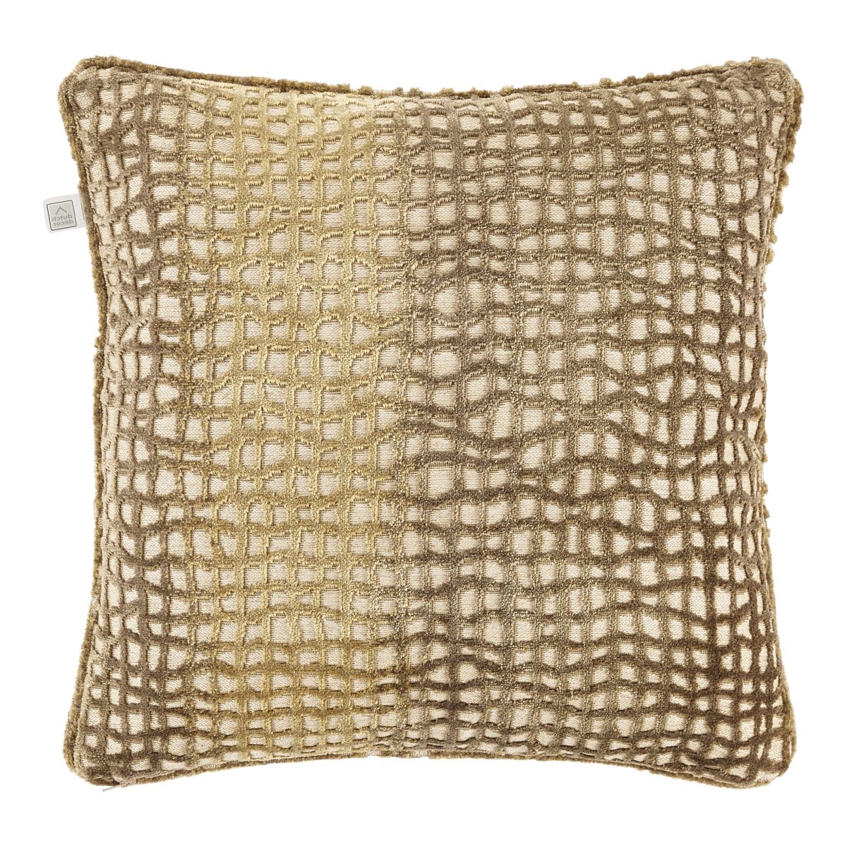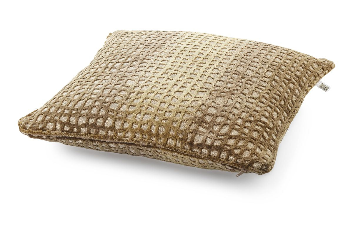 - Het kussen heeft een driedimensionaal geometrisch patroon