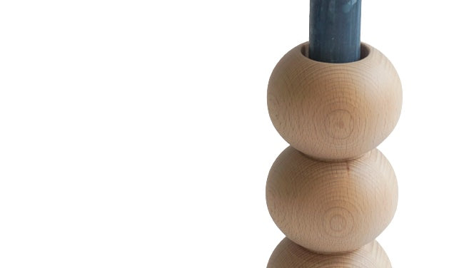 - Deze massief houten kandelaar past met haar elegante hout gedraaide vormen en matte kleur, goed in een modern interieur.