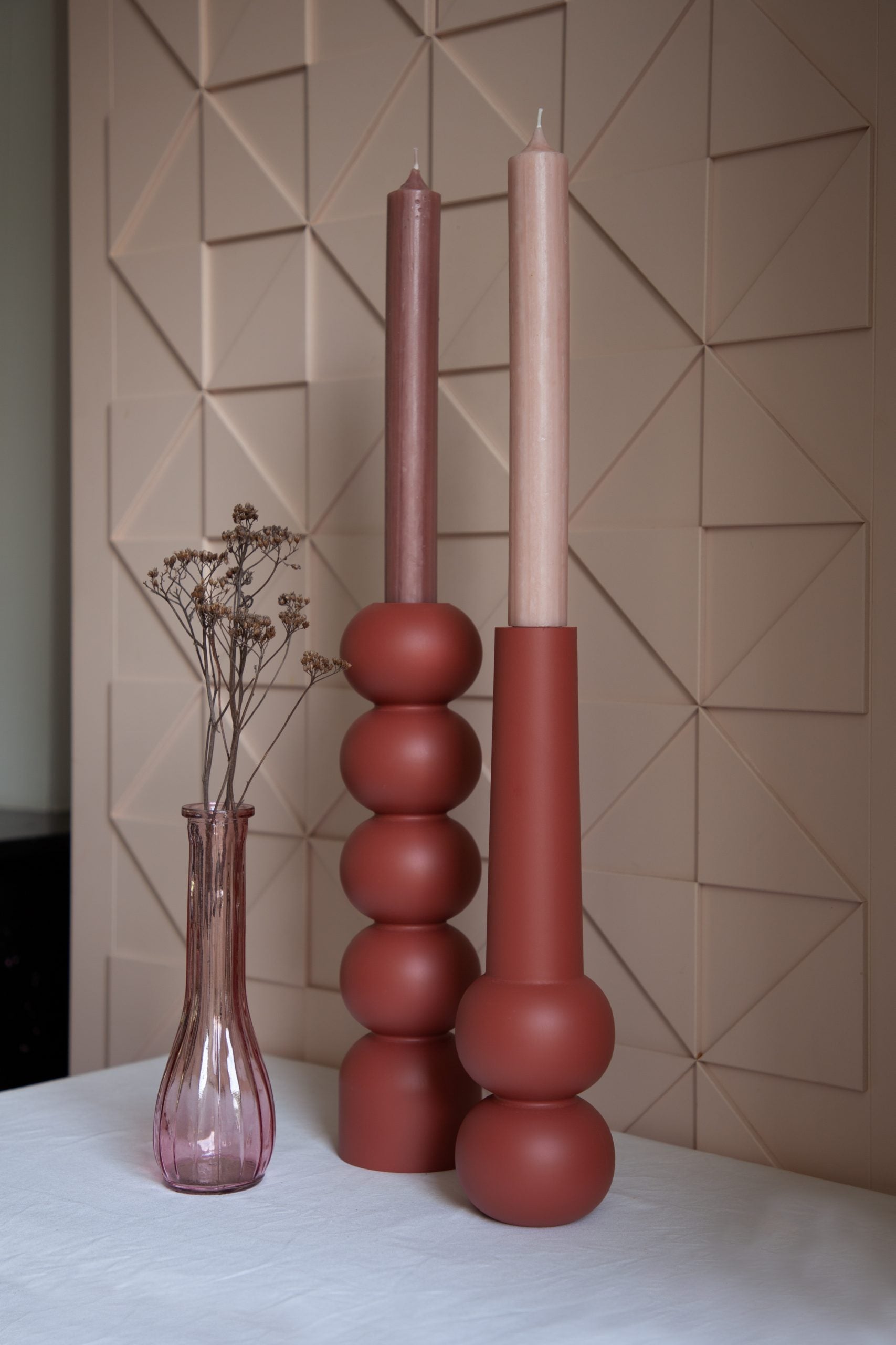 - Deze massief houten kandelaar past met haar elegante hout gedraaide vormen en matte kleur, goed in een modern interieur.
