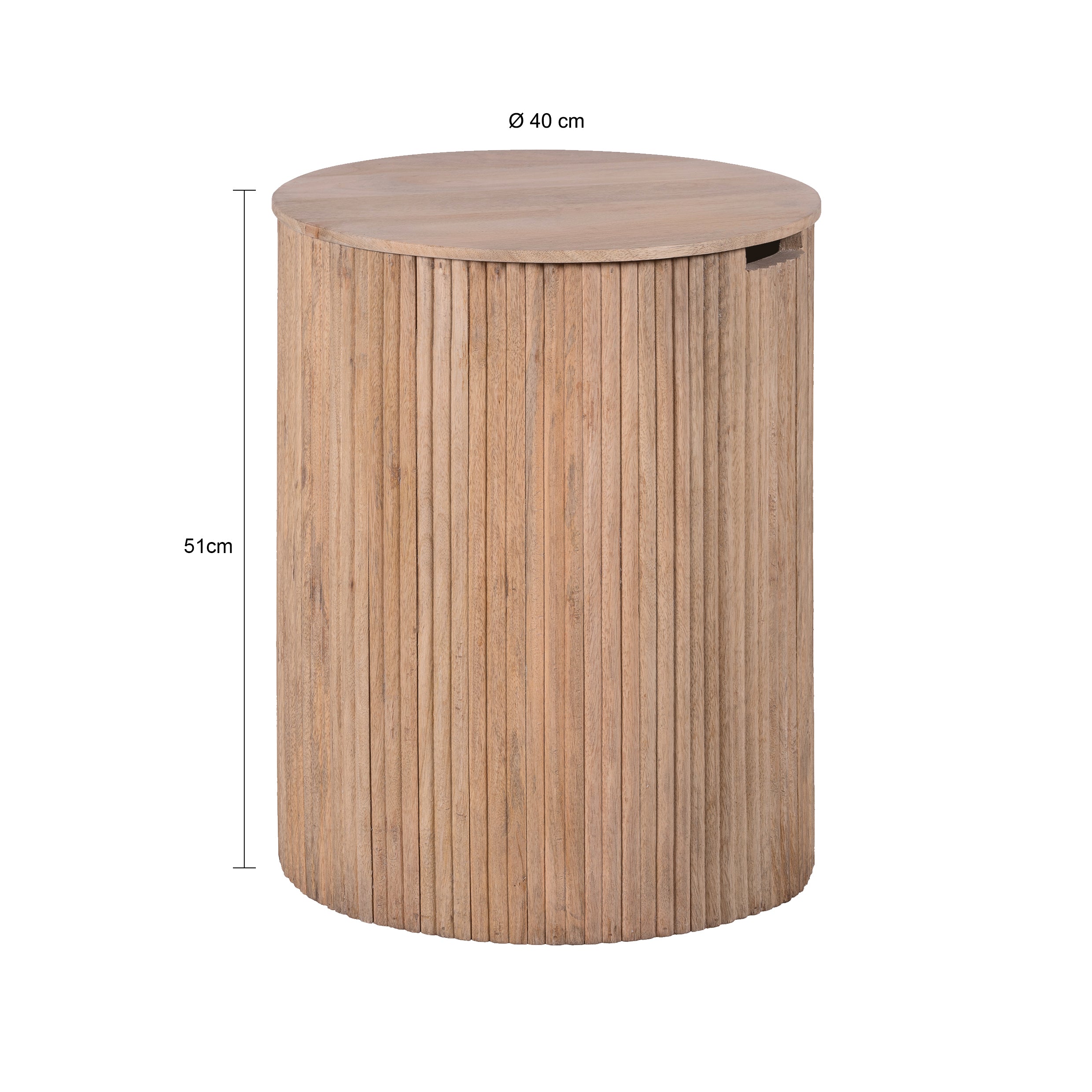 Stijlvolle bijzettafel met handige opbergruimte binnenin Ontdek de veelzijdigheid van de bijzettafel rond, een stijlvolle toevoeging aan je interieur. Gemaakt van duurzaam mangohout, straalt deze ronde bijzettafel natuurlijke elegantie uit. Laat je verrassen door de slimme details die dit tafeltje te bieden heeft, perfect voor elke ruimte in huis.