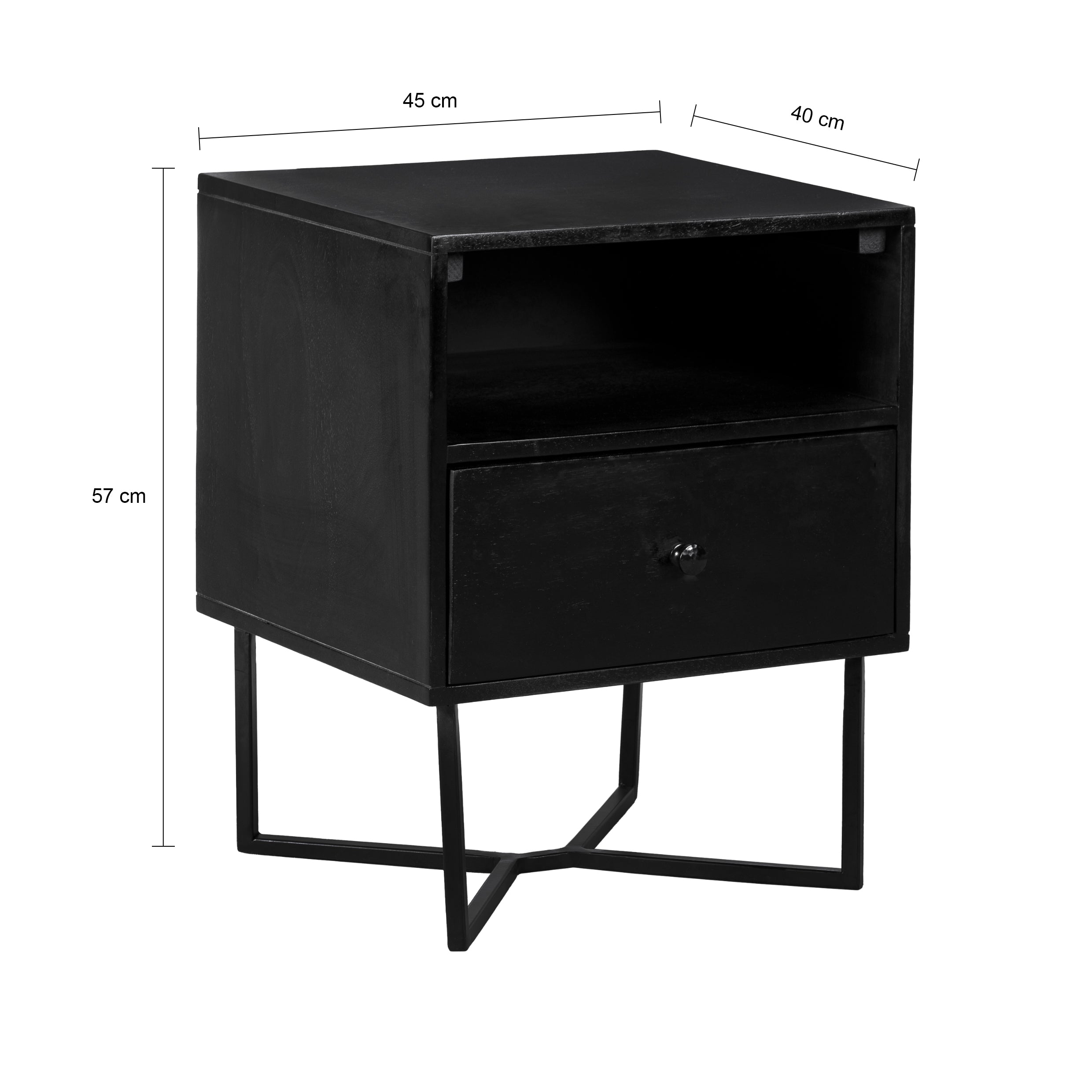 Een veelzijdige toevoeging aan jouw interieur Het strakke, zwarte design van dit nachtkastje maakt het een uitstekende keuze voor zowel een industriële loft als een minimalistische Scandinavische slaapkamer. De combinatie van robuust mangohout en een moderne afwerking zorgt ervoor dat dit nachtkastje perfect past in deze stijlen.