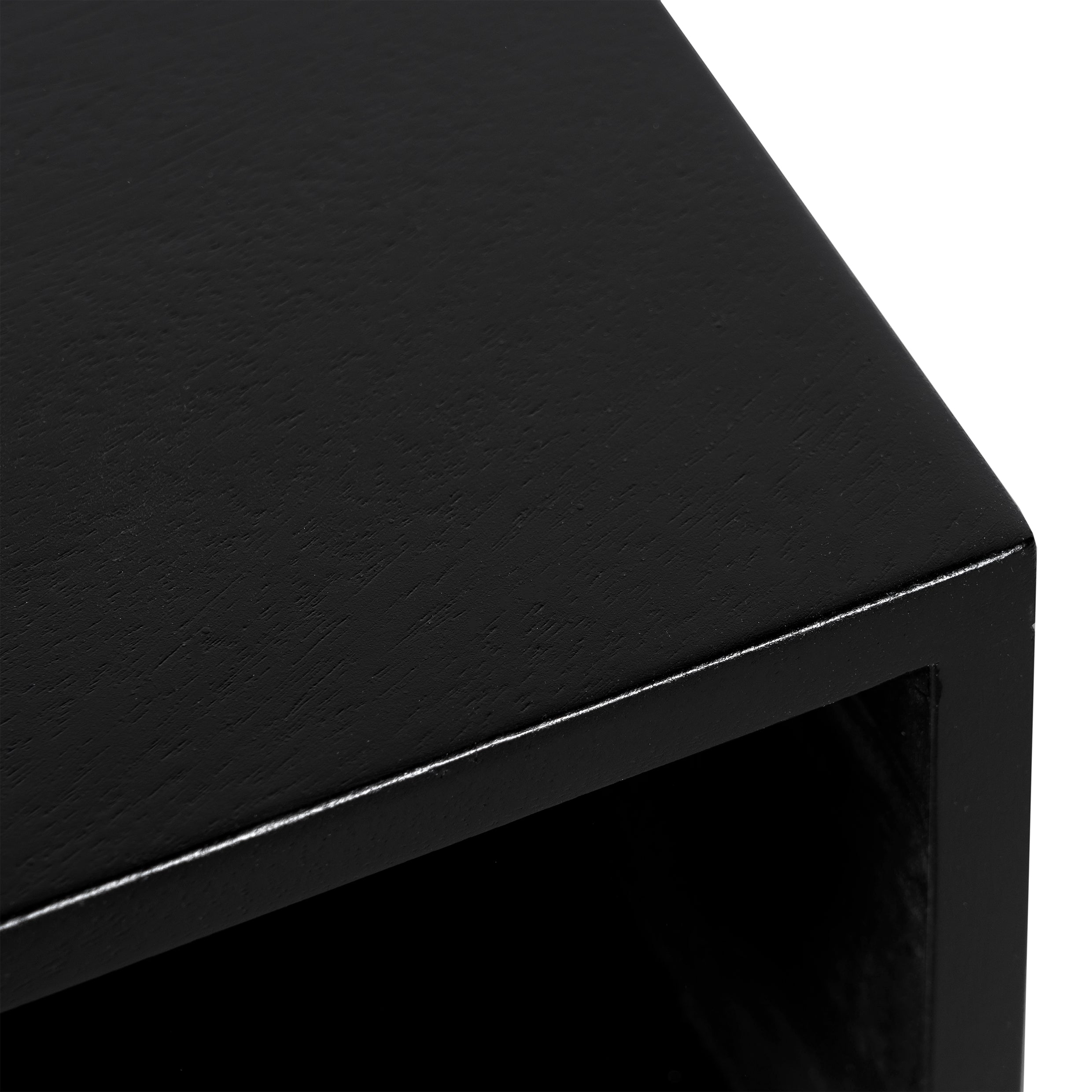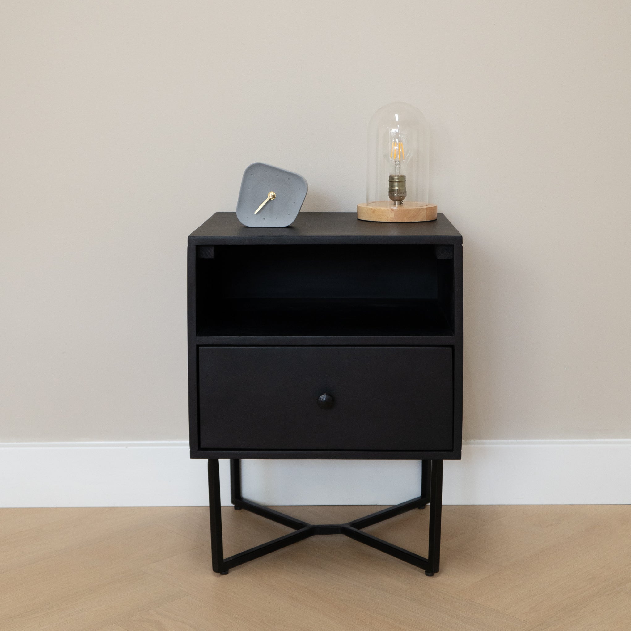 Compacte maar ruime opbergoplossing Dankzij de afmetingen van 45x40x57 cm biedt dit zwarte nachtkastje genoeg ruimte voor het opbergen van boeken, accessoires en andere spullen die je binnen handbereik wilt hebben. De praktische lade en het open vak maken dit meubelstuk zowel functioneel als stijlvol.