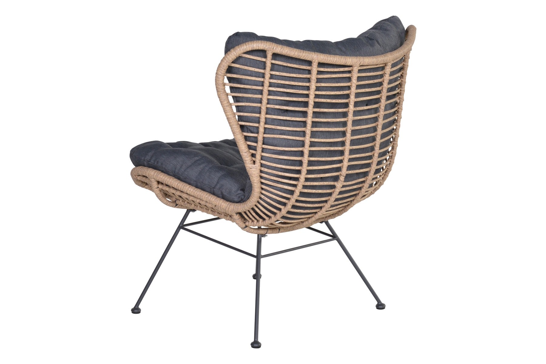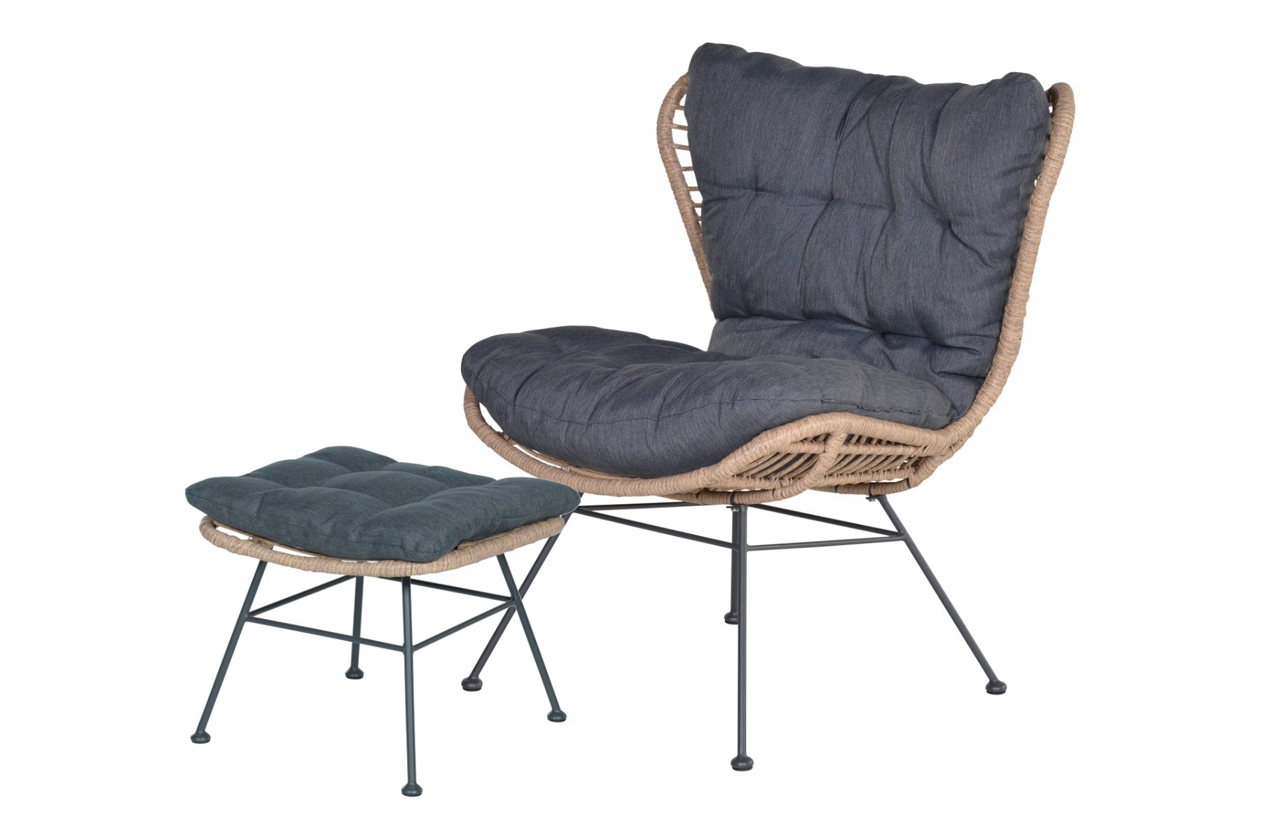 Het frame van de Libelle loungestoel en voetenbank is gemaakt van aluminium. Dit onderhoudsarme materiaal kan niet verroesten en is licht in gewicht. Om dit frame is het kunststof vlechtwerkdraad gevlochten in de kleur natural rotan. De loungestoel en voetenbank wordt geleverd inclusief polyester kussens welke voorzien zijn van extra stiksels. Hierdoor krijgt de Libelle loungestoel een chique uitstraling. De kussens zijn niet waterbestendig, daarom adviseren wij ook om de kussens na gebruik op een droge en geventileerde plek op te bergen.