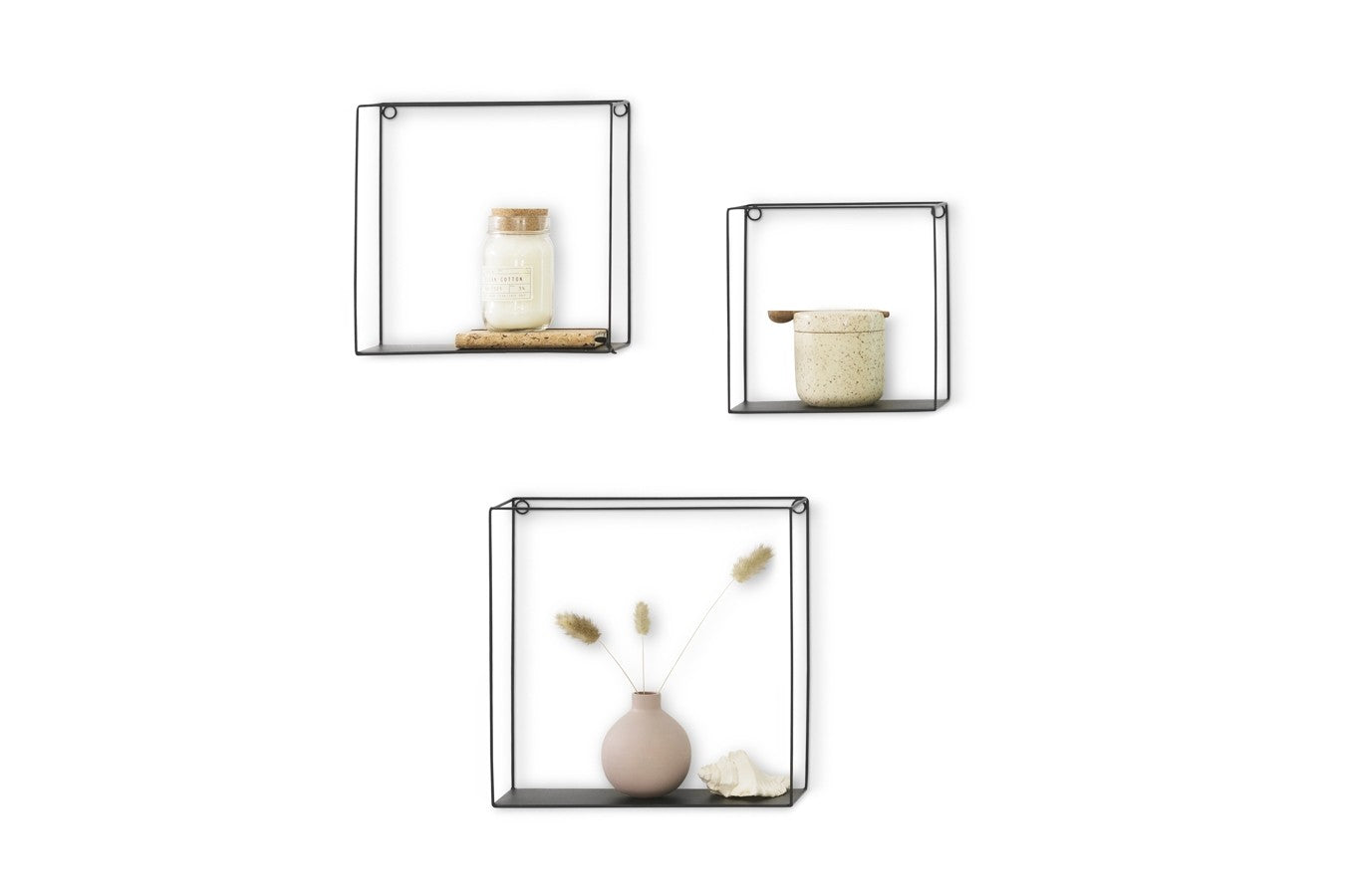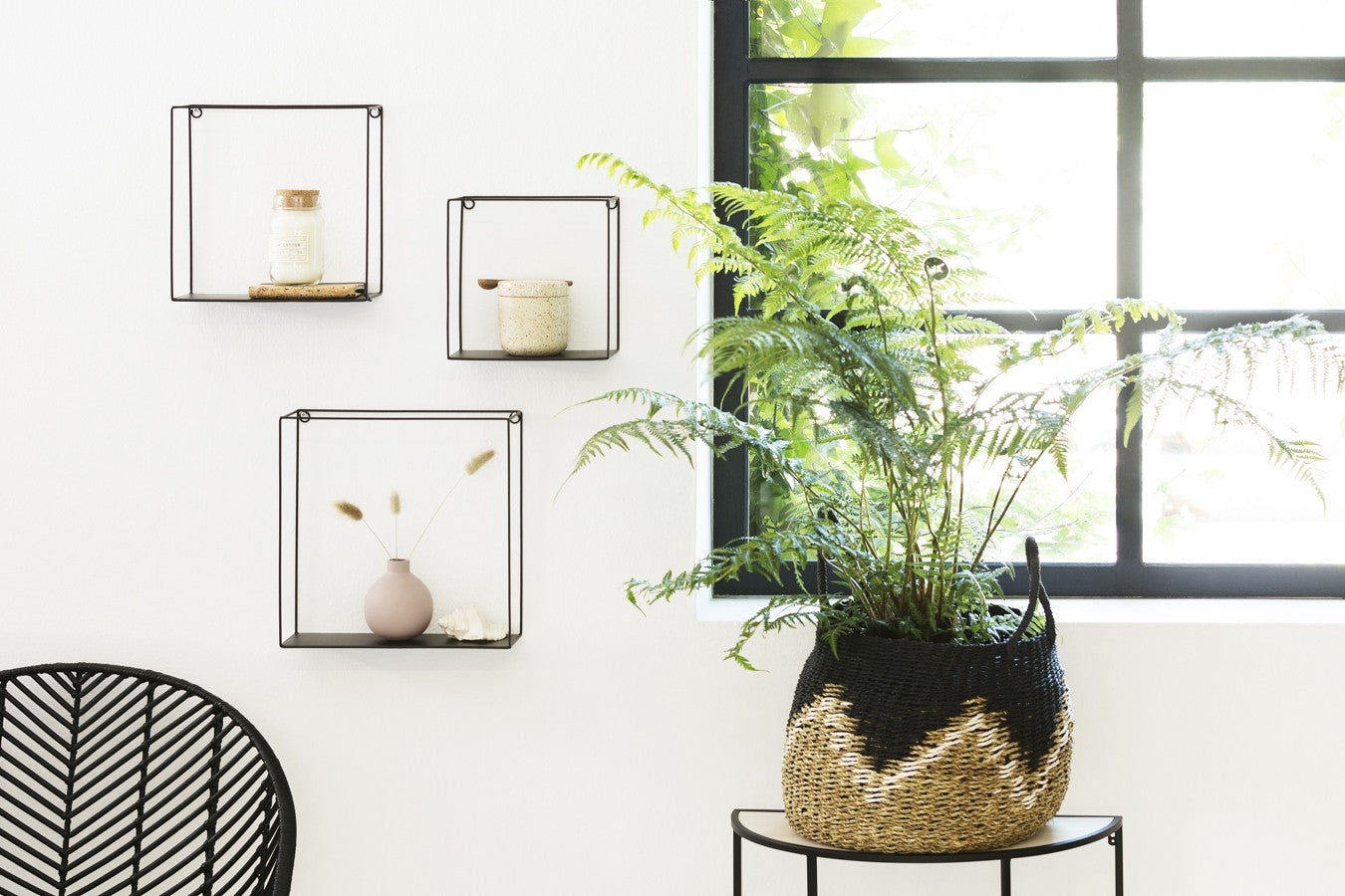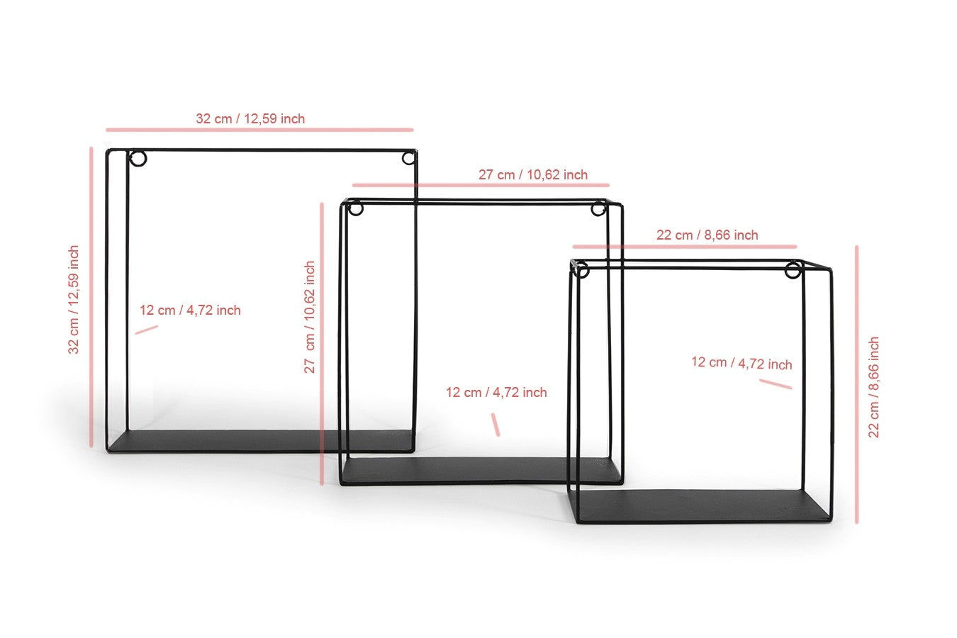 - De afmetingen van de moderne rekjes zijn: 22 x 12 x 22 cm, 27 x 12 x 27 cm en 32 x 12 x 32 cm.