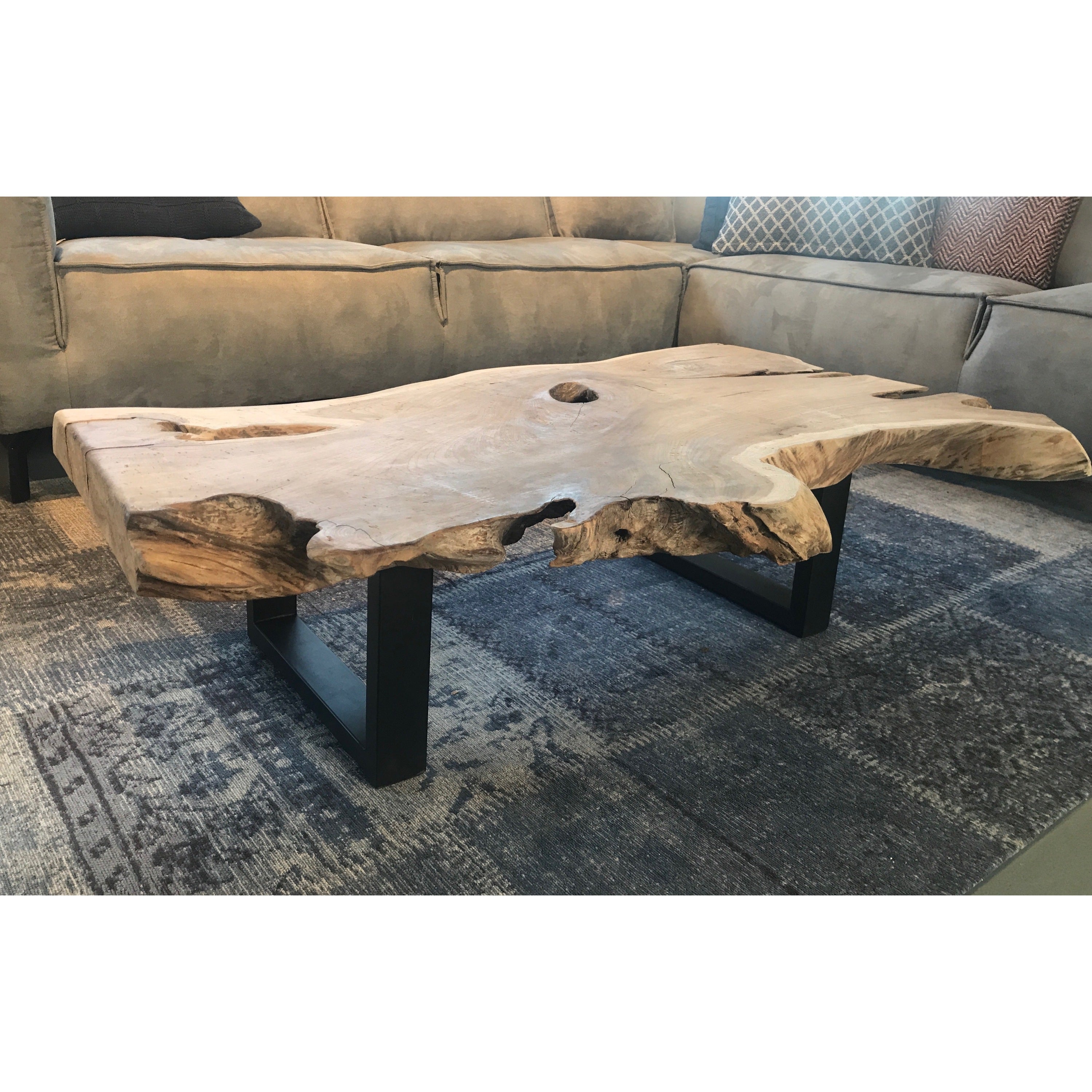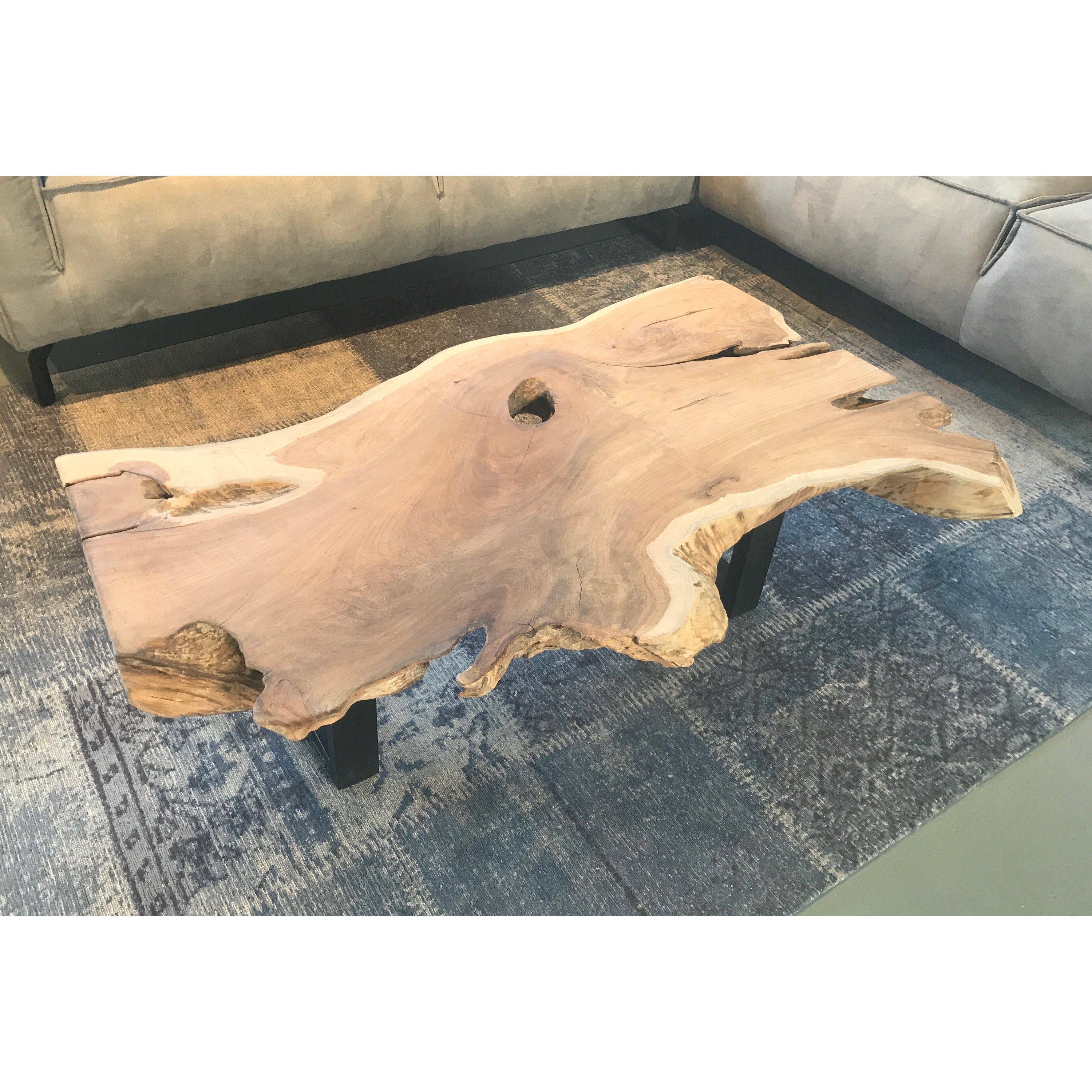 Als je op zoek bent naar een stoere robuuste salontafel die je wilt inzetten als eyecatcher, kom je zeker uit bij de salontafel Akar! Deze salontafel heeft een groot tafelblad wat vervaardigd is uit teakhout. Het heeft een natuurlijke, ruwe, stoere uitstraling. Het tafelblad heeft een prachtige boomstamvorm. Het stoere tafelblad wordt gedragen door twee stevige stalen poten. Vorm: boomstamvorm Doordat het een natuurproduct is kan uw exemplaar wel afwijken van de variant op de foto's.