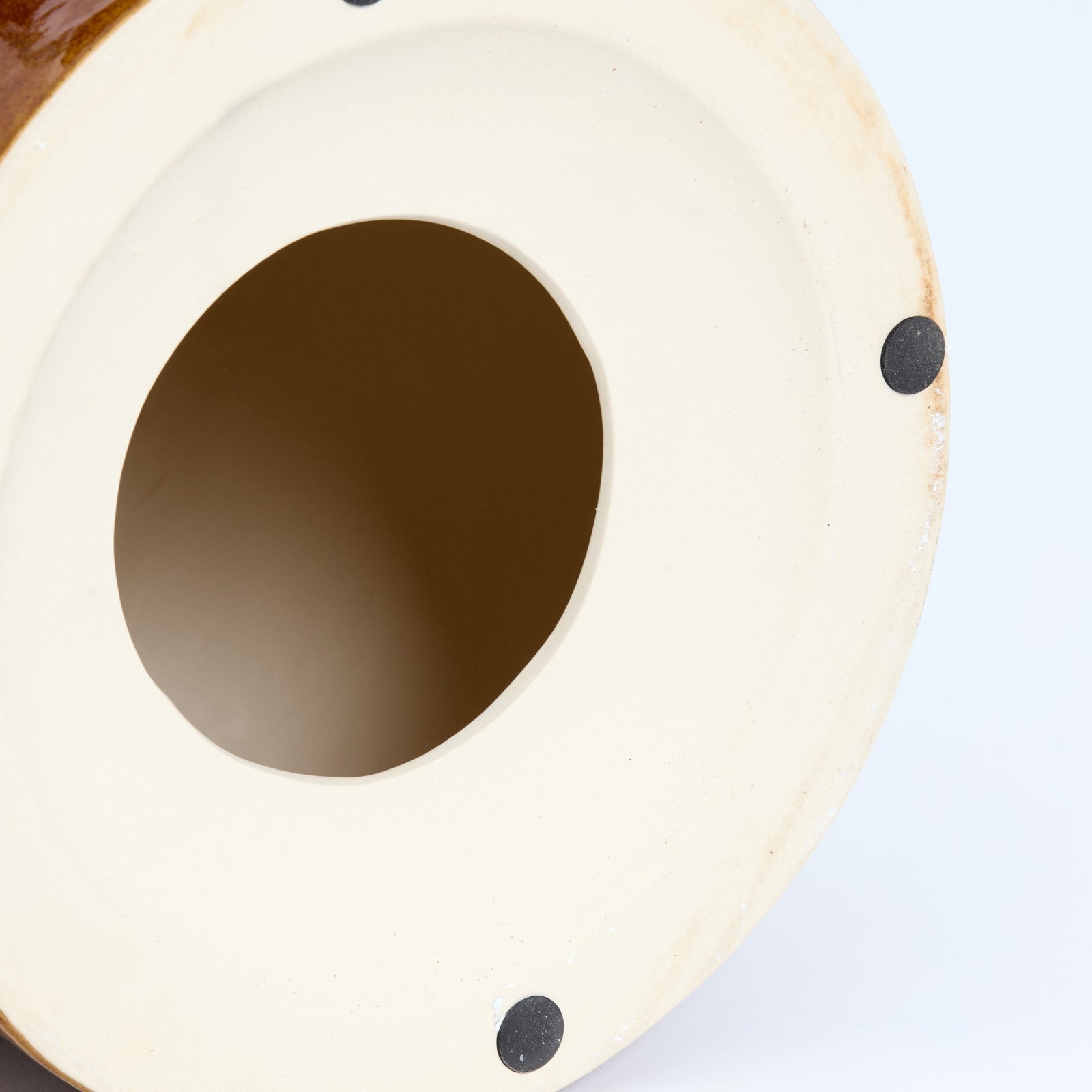 - Rond bijzettafeltje van glanzend keramiek in cognac met wit