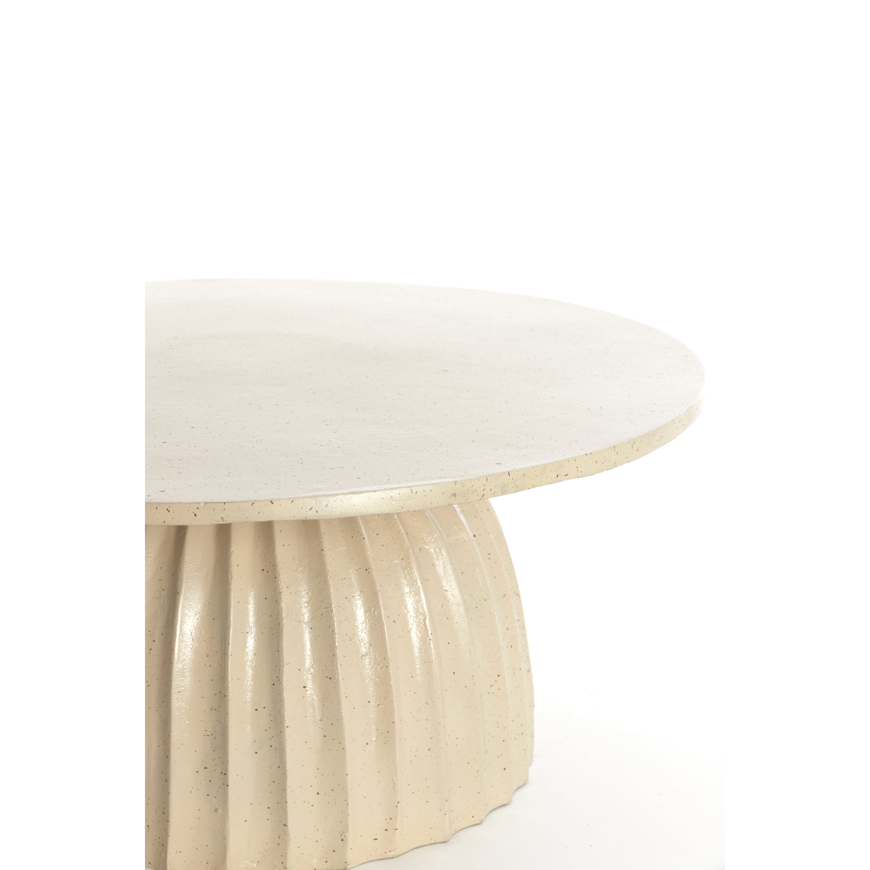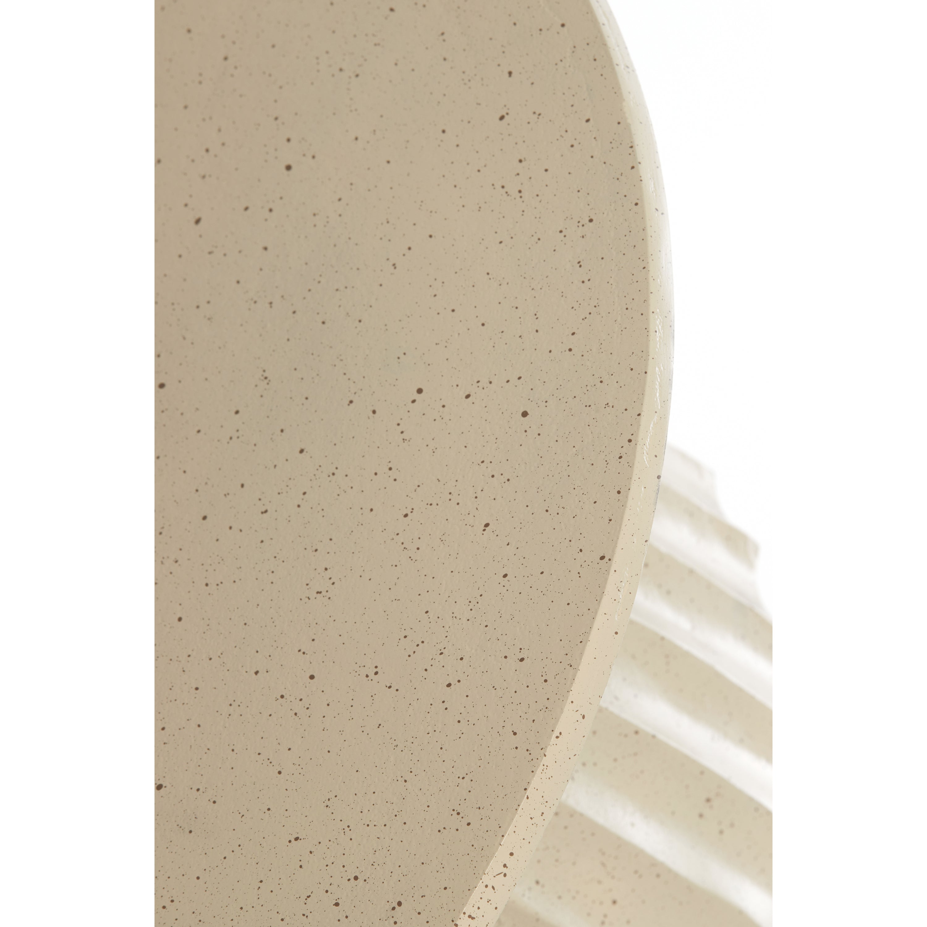 De Light&Living Bijzettafel VEGLIA heeft een unieke uitstraling door de combinatie van een mat zandkleur en een licht bruin gespikkelde afwerking. Deze kleuren en texturen geven de tafel een moderne en natuurlijke look die moeiteloos aansluit bij zowel minimalistische als bohemian interieurs. Het subtiele speelse patroon maakt deze tafel tot een echte blikvanger, zonder overweldigend te zijn.