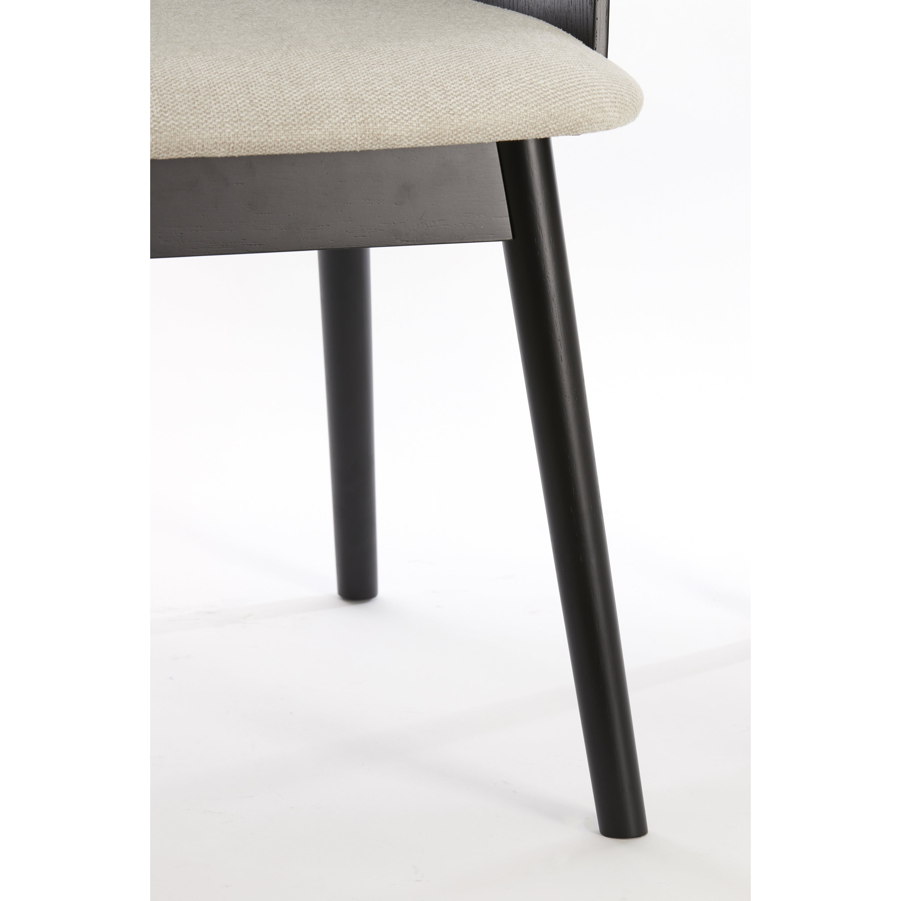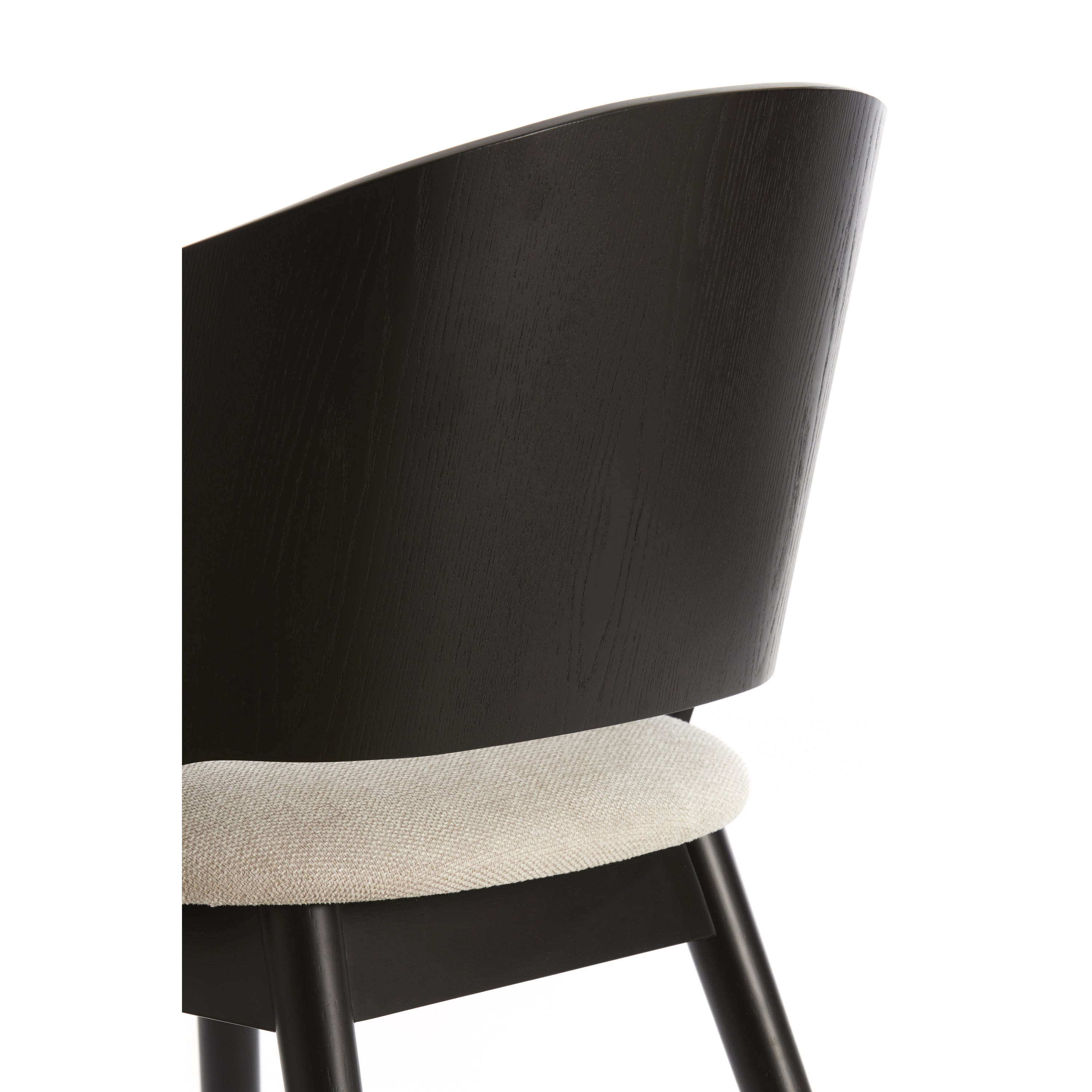 De NIEBLA eetkamerstoel heeft een elegant zwart houten frame dat de stoel een eigentijdse uitstraling geeft. Dit wordt prachtig gecombineerd met de lichte beige stoffering, wat zorgt voor een gebalanceerde, verfijnde look die elke eetkamer zal verfraaien. De contrasterende kleuren maken de stoel niet alleen visueel aantrekkelijk, maar zorgen ook voor een tijdloze uitstraling die bij veel interieurstijlen past.