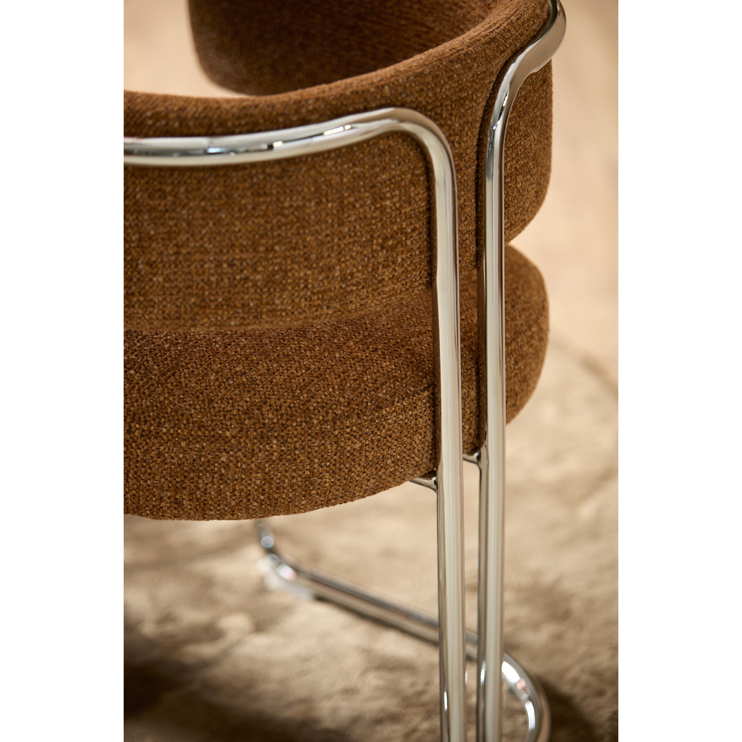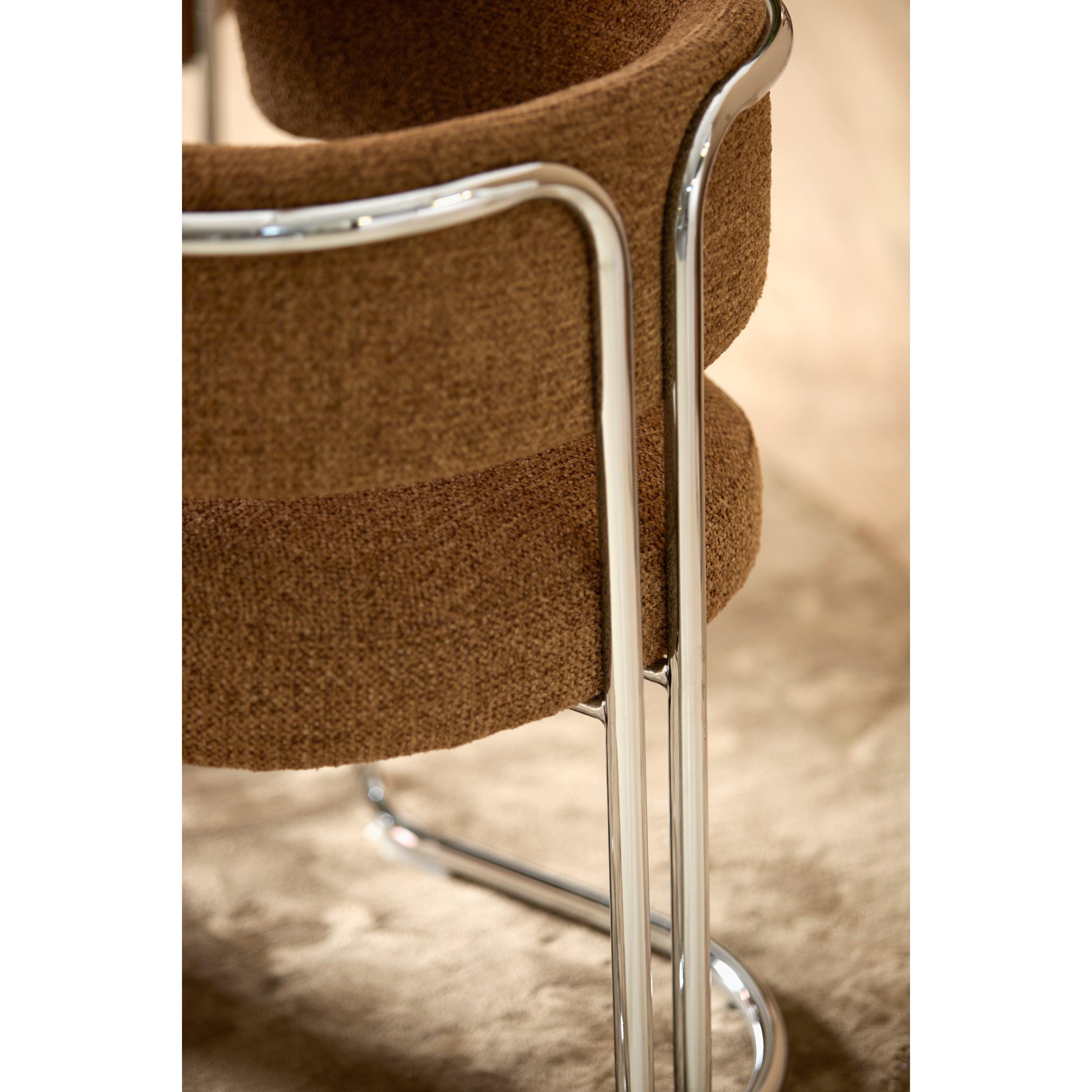 De stoel is voorzien van een stevig chroom frame dat zorgt voor een solide basis en lange levensduur. Het chroom heeft een glanzende afwerking die niet alleen esthetisch aantrekkelijk is, maar ook bestand is tegen slijtage. De robuuste constructie maakt de ADANTE stoel een duurzame keuze die jarenlang meegaat, zelfs bij intensief gebruik.