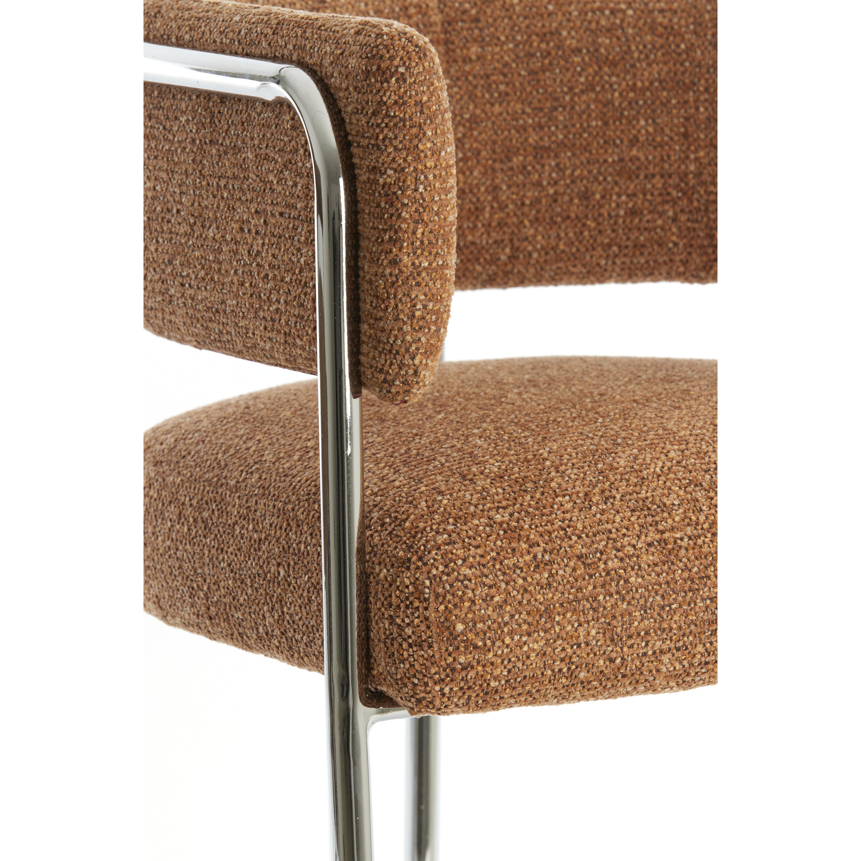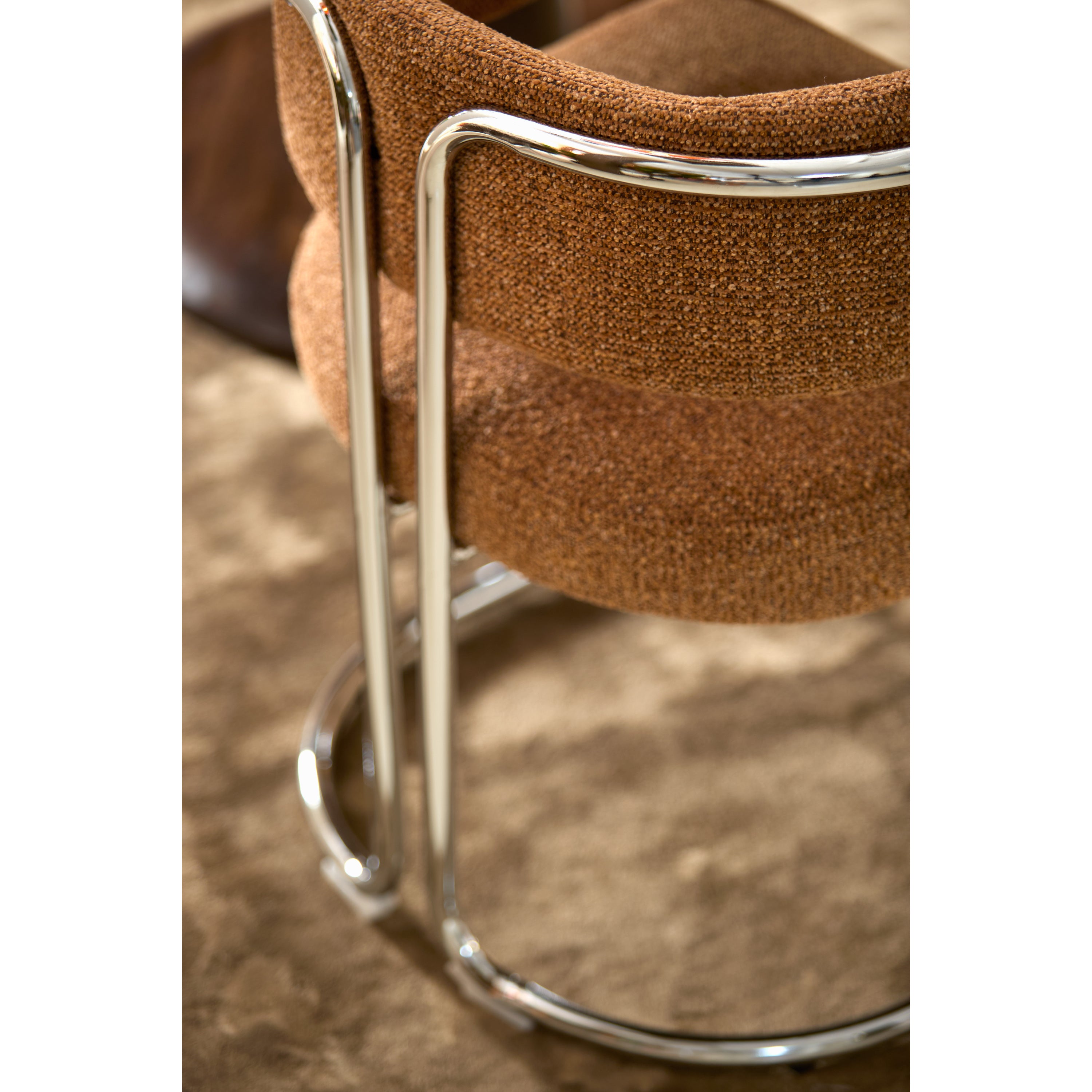 Het glanzende chroom frame van de ADANTE eetkamerstoel zorgt voor een strakke en moderne afwerking die de stoel een luxueuze uitstraling geeft. Het chroom voegt niet alleen een eigentijdse touch toe, maar is ook praktisch, omdat het gemakkelijk te onderhouden is en een lange levensduur heeft. Het contrast tussen de warme karamelkleurige zitting en het koele, glanzende chroom maakt de stoel tot een echt statement stuk in je eetkamer.
