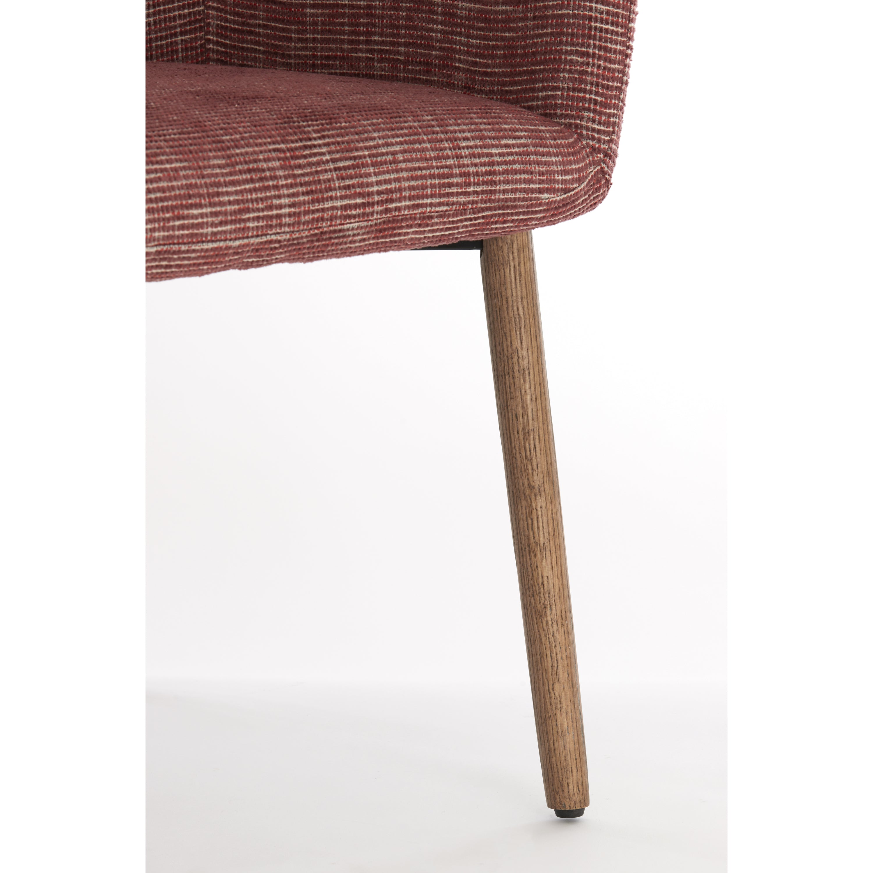 Het donkere houten frame van de BLAINE eetkamerstoel biedt zowel stabiliteit als duurzaamheid. Het contrast tussen het diepe bordeauxrode zitvlak en het donkere hout zorgt voor een verfijnde en tijdloze uitstraling. Het robuuste frame garandeert langdurig gebruik en de klassieke afwerking maakt de stoel een prachtige aanvulling op elke eetkamer, van traditioneel tot modern.