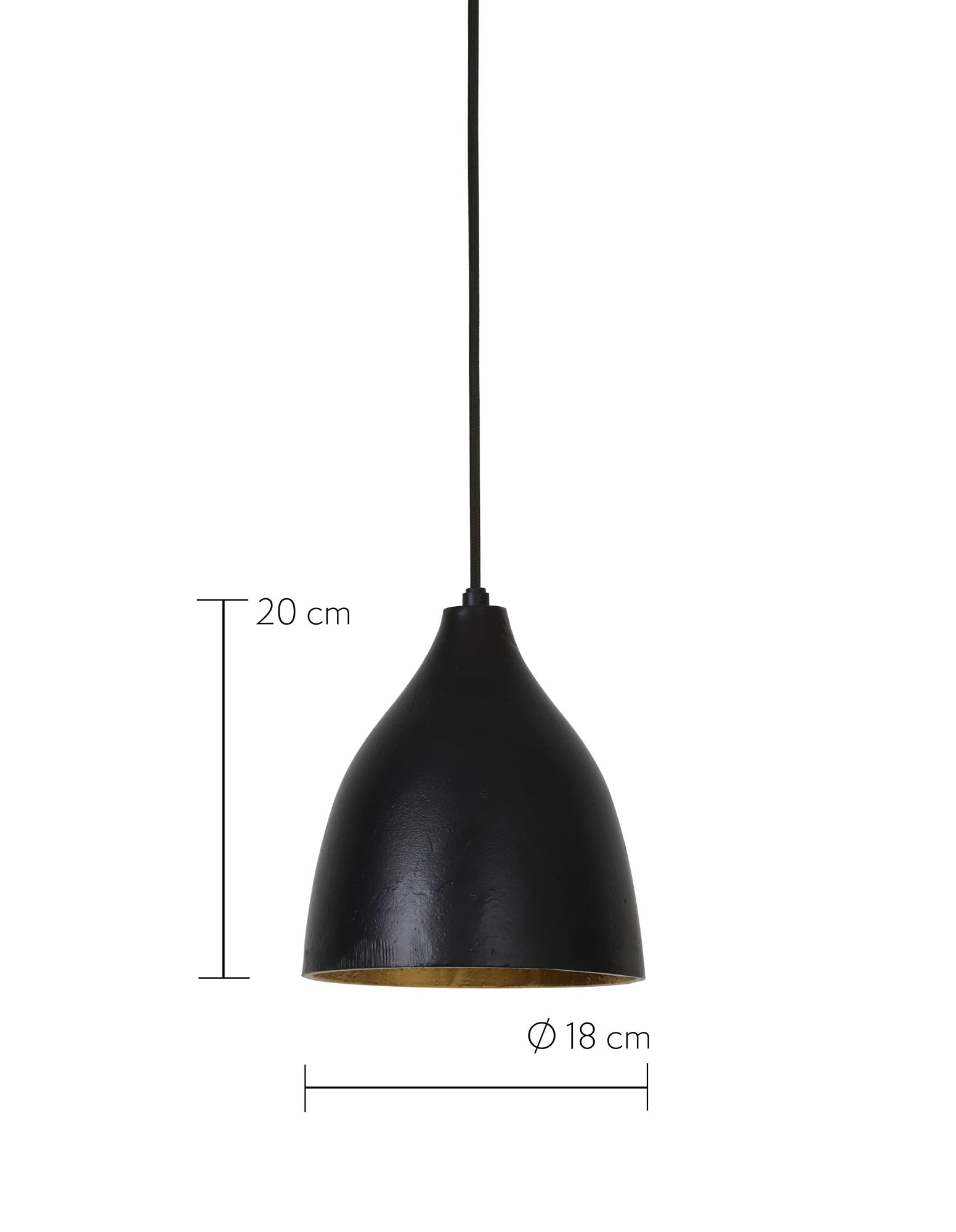 - Kleine robuuste zwarte hanglamp met gouden binnenkant