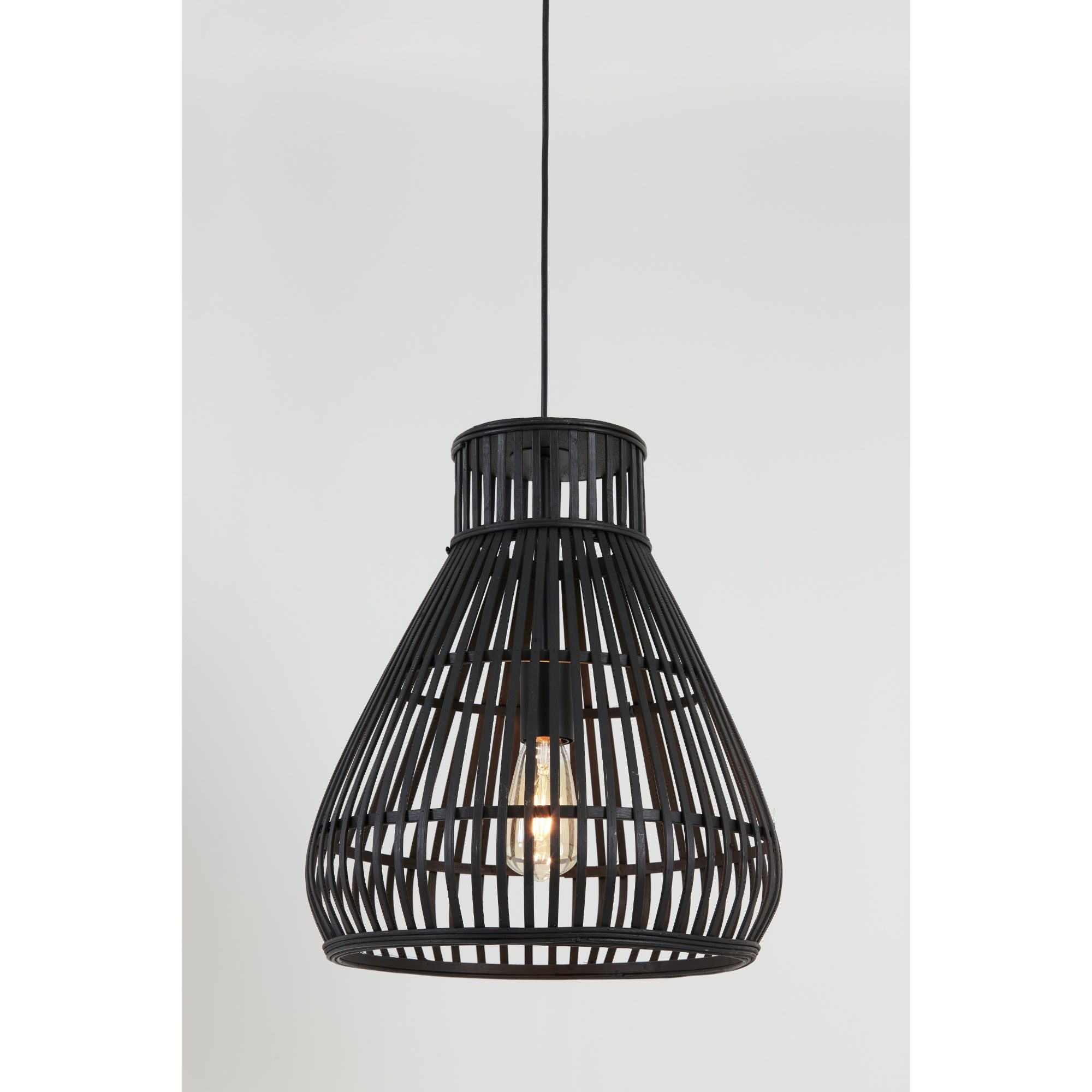 - Zwarte houten hanglamp in rotan stijl voor sfeerverlichting in de eetkamer