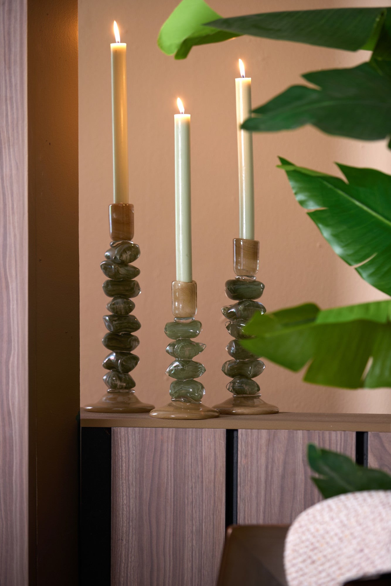 Kandelaar Ø11,5x23 cm ESTINA bruin+mos groen is gemaakt en ontwerpen door het Nederlandse merk Light & Living.
