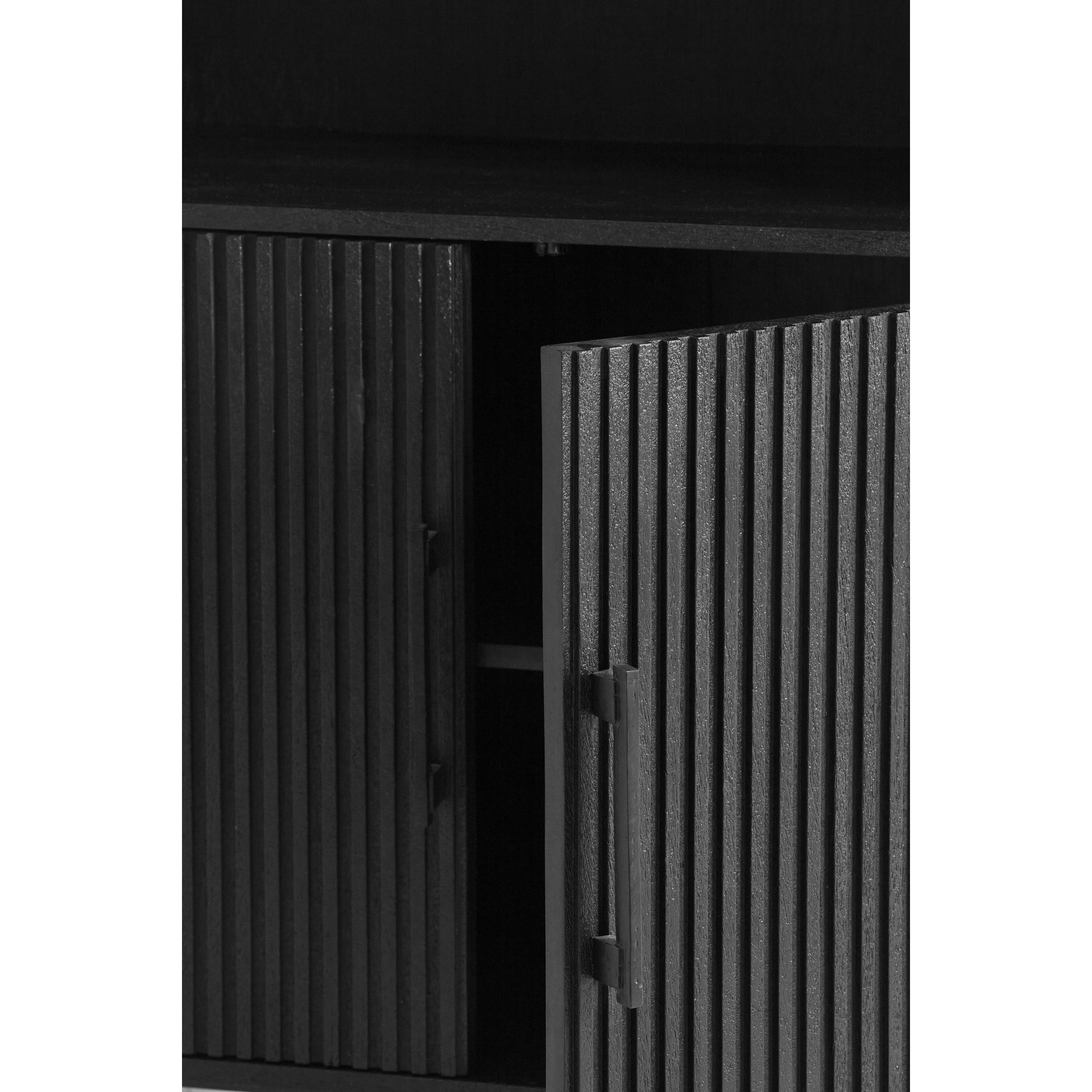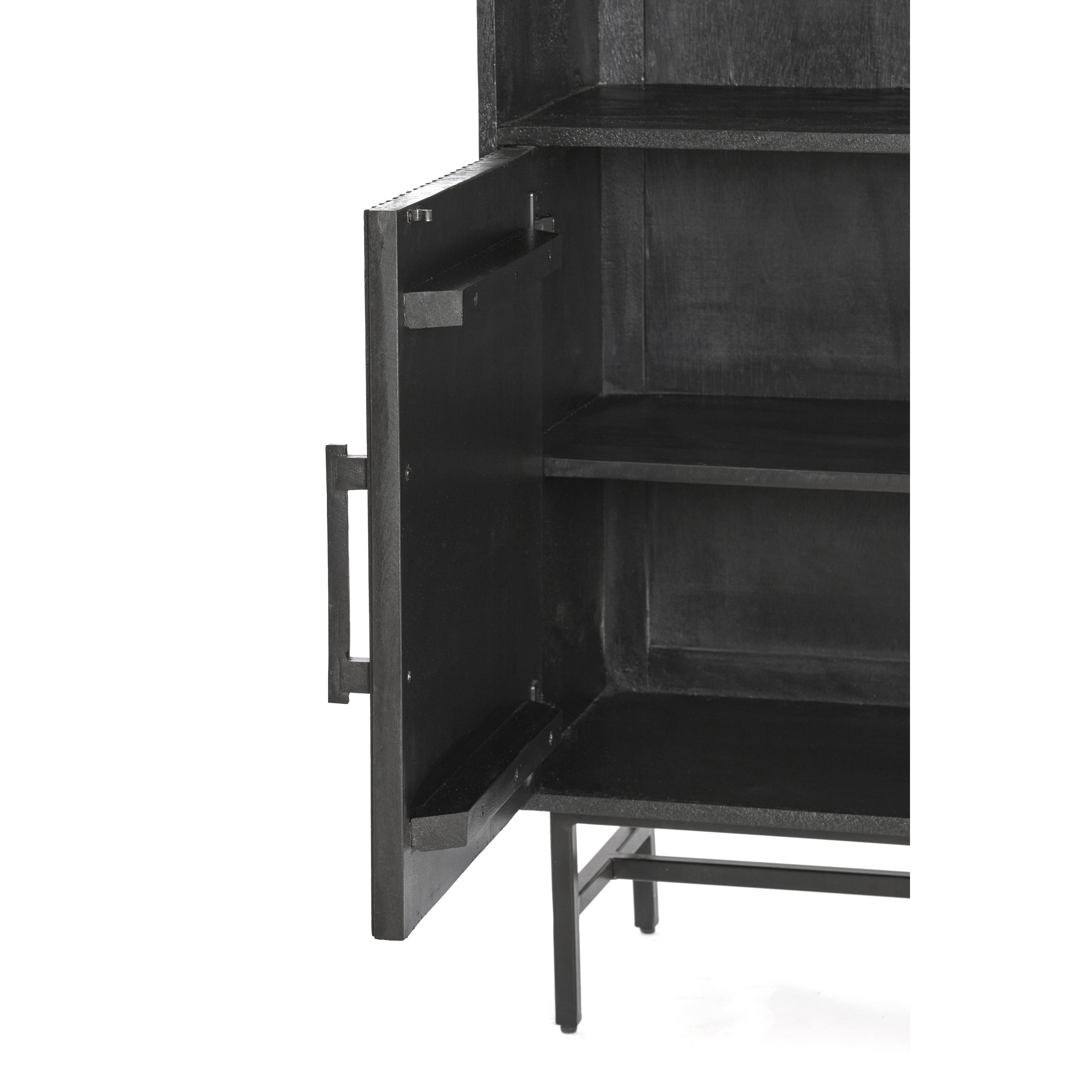 De kast is afgewerkt in een matte zwarte kleur, wat zorgt voor een eigentijdse en verfijnde uitstraling. De matzwarte afwerking maakt de kast veelzijdig en eenvoudig te combineren met verschillende interieurstijlen en kleurenschema’s. Het moderne design voegt een chique accent toe aan elke kamer, van minimalistisch tot industrieel en klassiek.