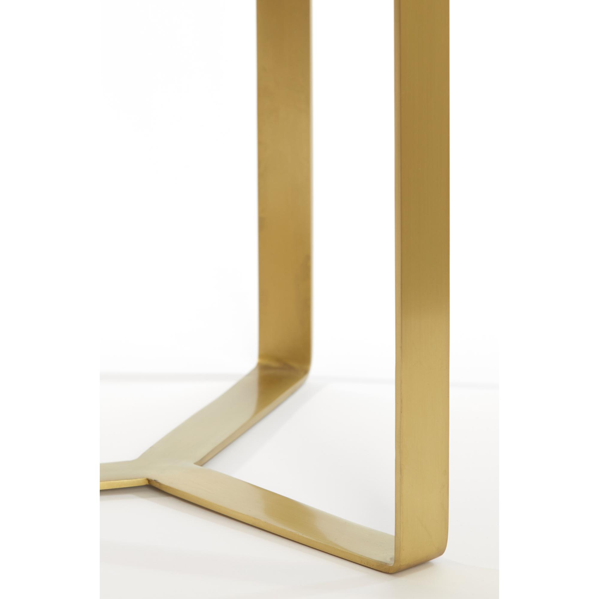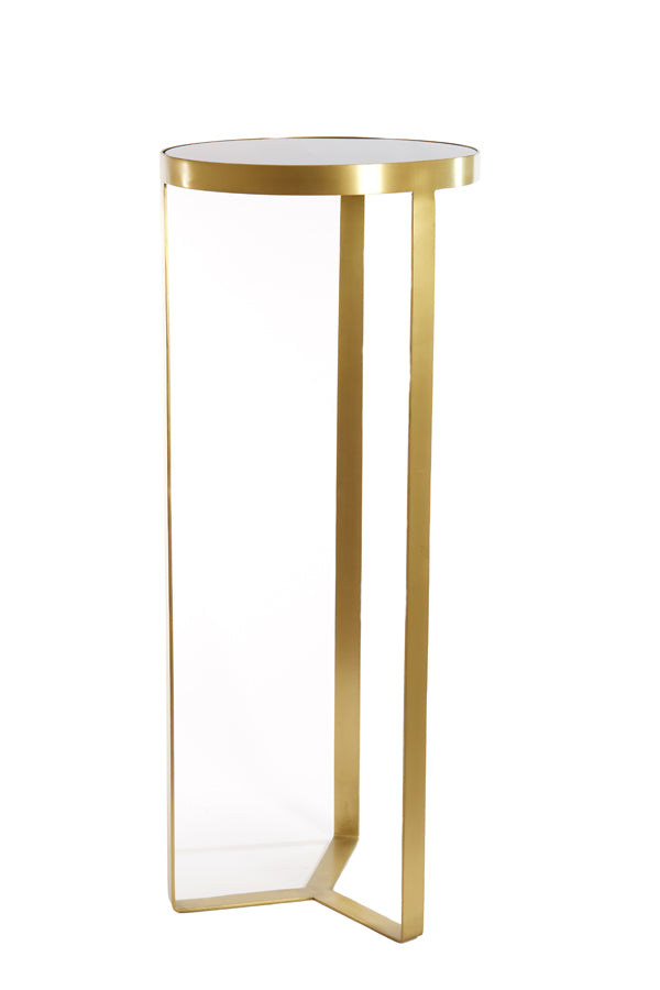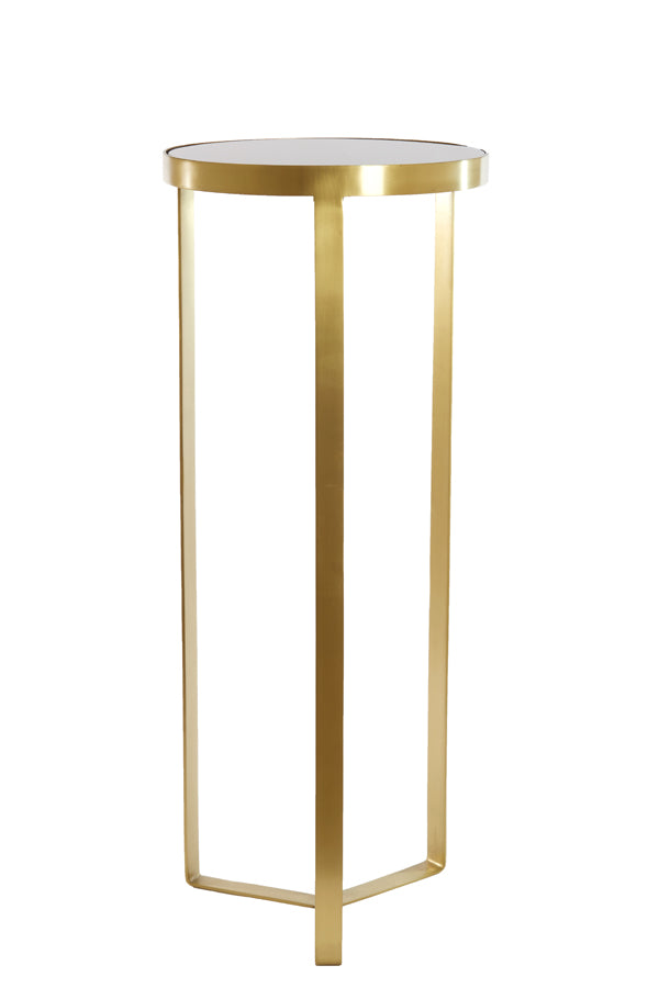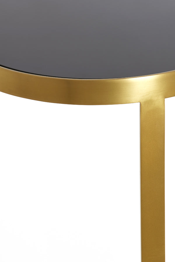 Het elegante ontwerp van deze bijzettafel in zwart en brons maakt het een opvallende toevoeging aan elke ruimte. Het mat bronzen frame gecombineerd met het zwarte glas straalt een moderne en toch tijdloze charme uit die in vele interieurstijlen past.