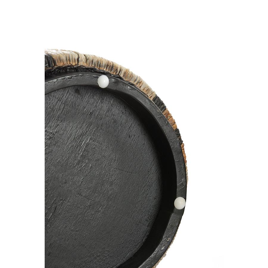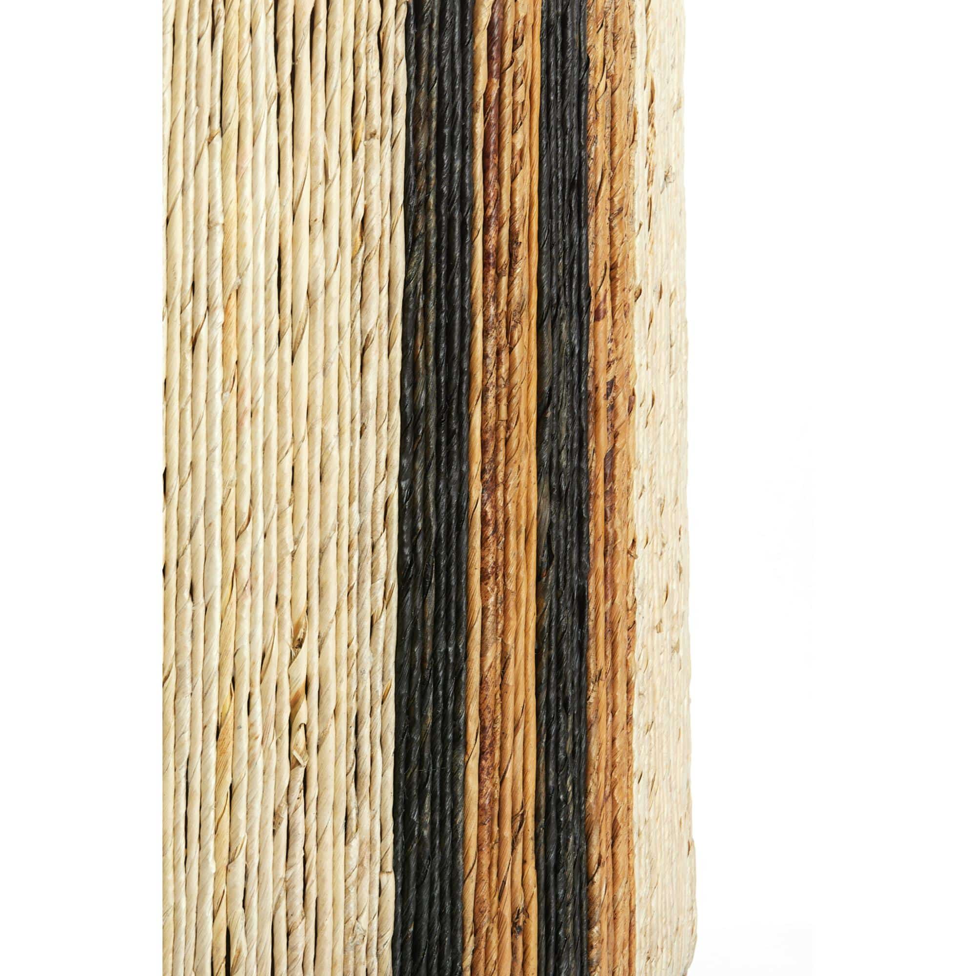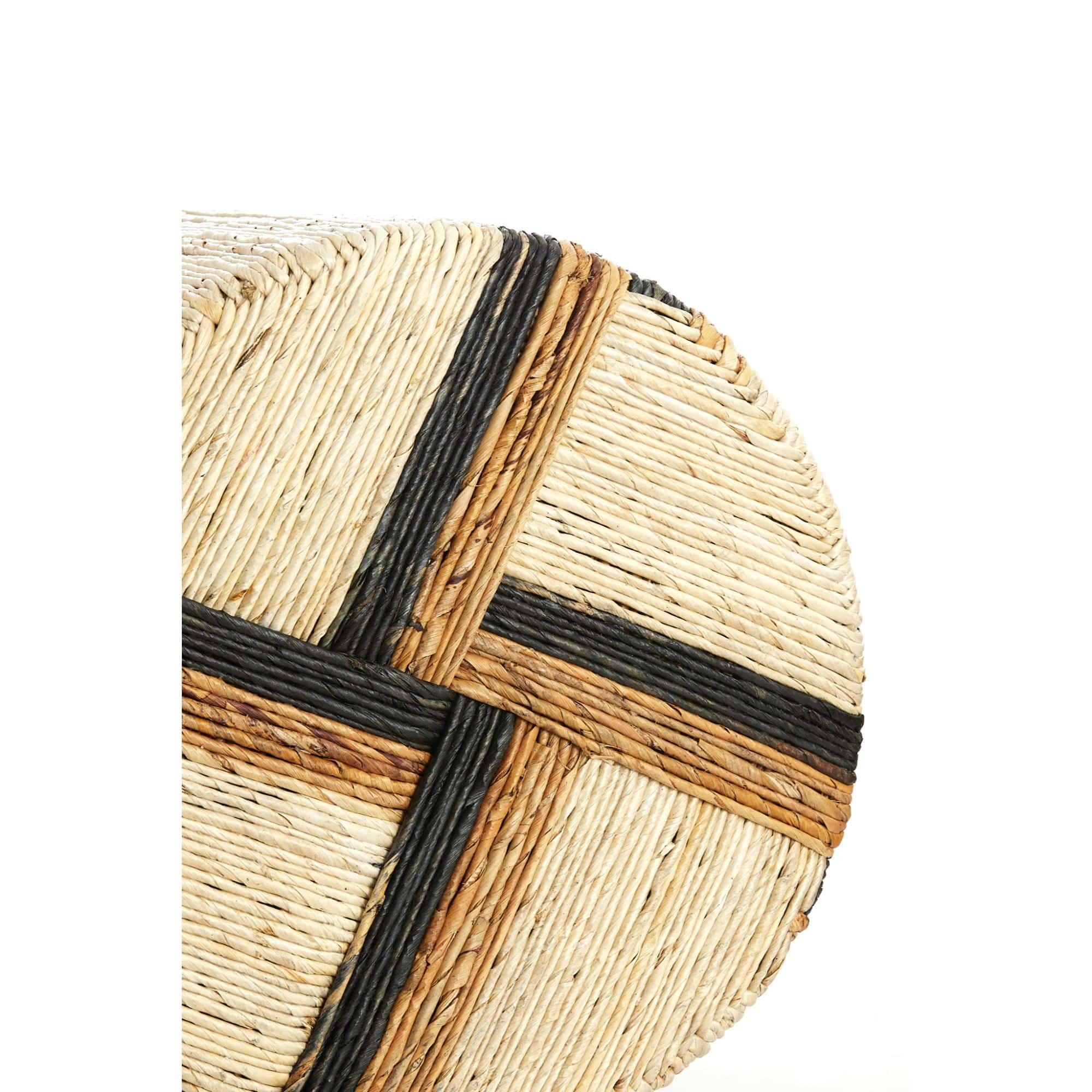 - Gestreept dessin gemaakt van gedraaide touwen die aan de poef bevestigd zijn.