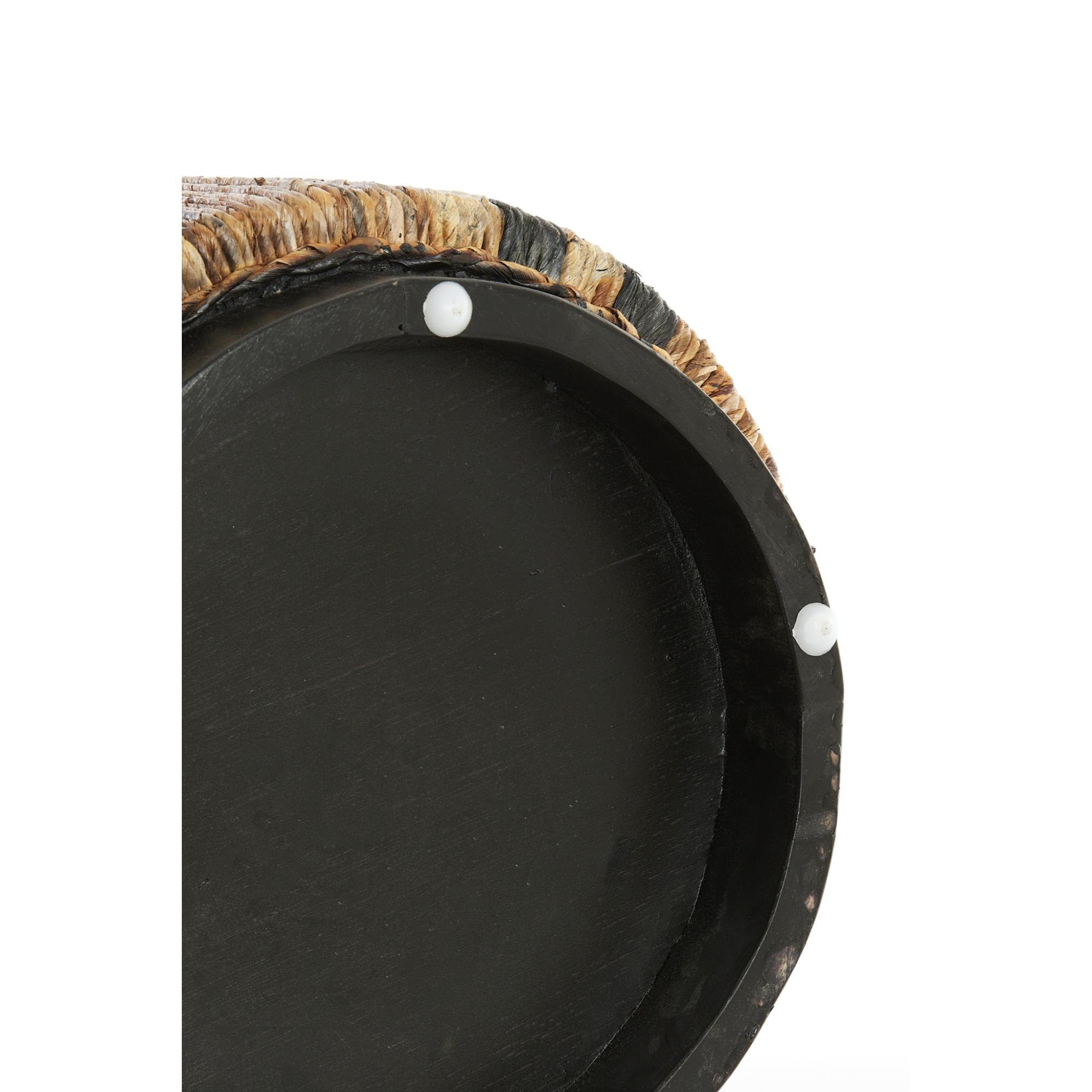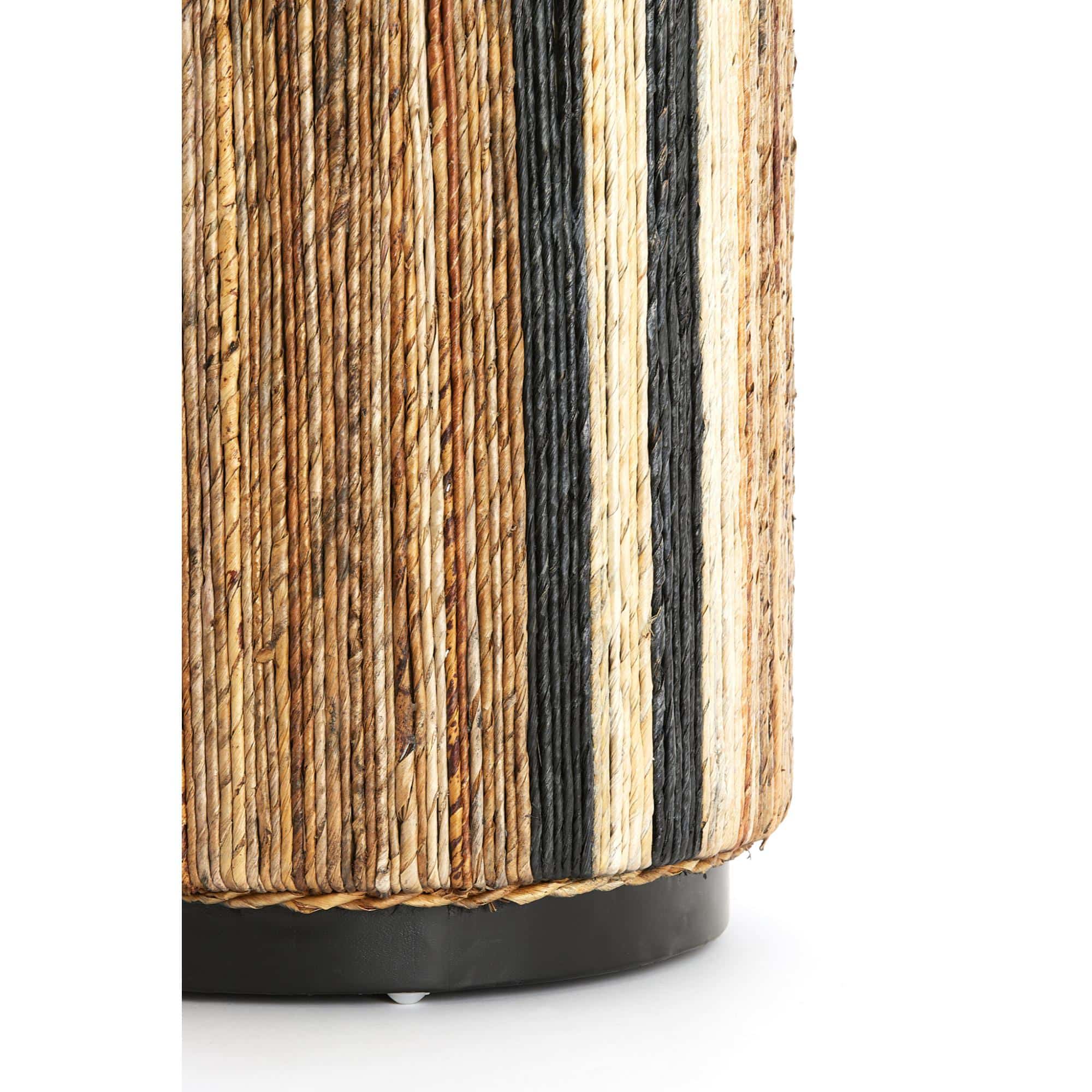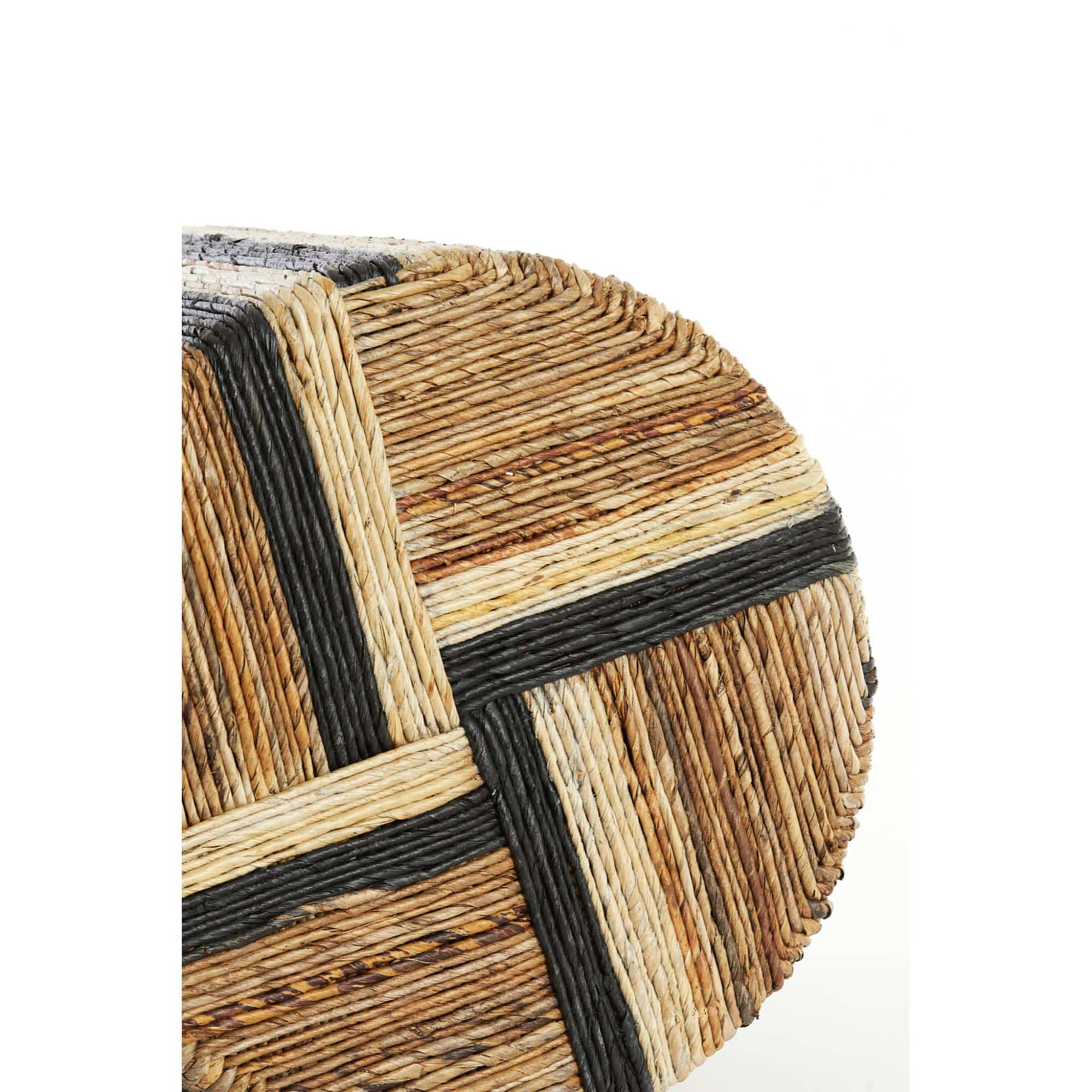 - Gestreept dessin gemaakt van gedraaide touwen die aan de poef bevestigd zijn.