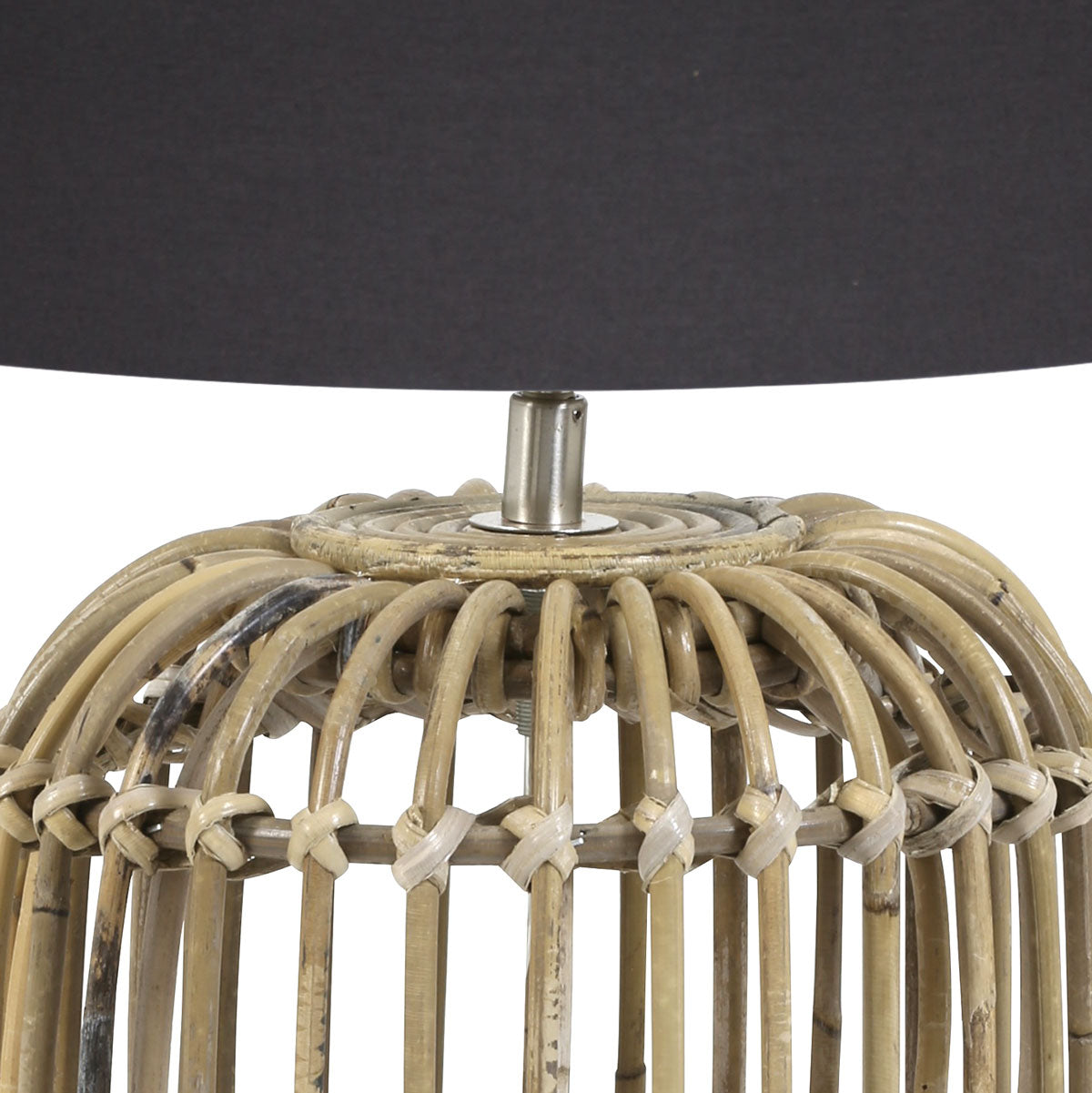 Light & Living Seram tafellamp - met zwarte kap - rotan - 63 cm hoog - Ø kap 40 cm - beige