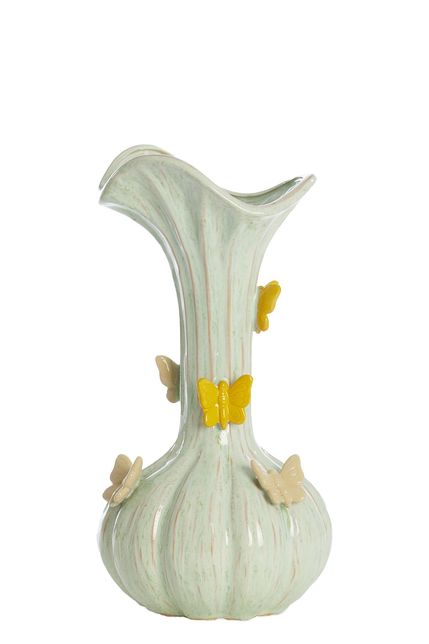 Vaas deco Ø23x44 cm BUTTERFLY keramiek mint groen+geel is gemaakt en ontwerpen door het Nederlandse merk Light & Living.