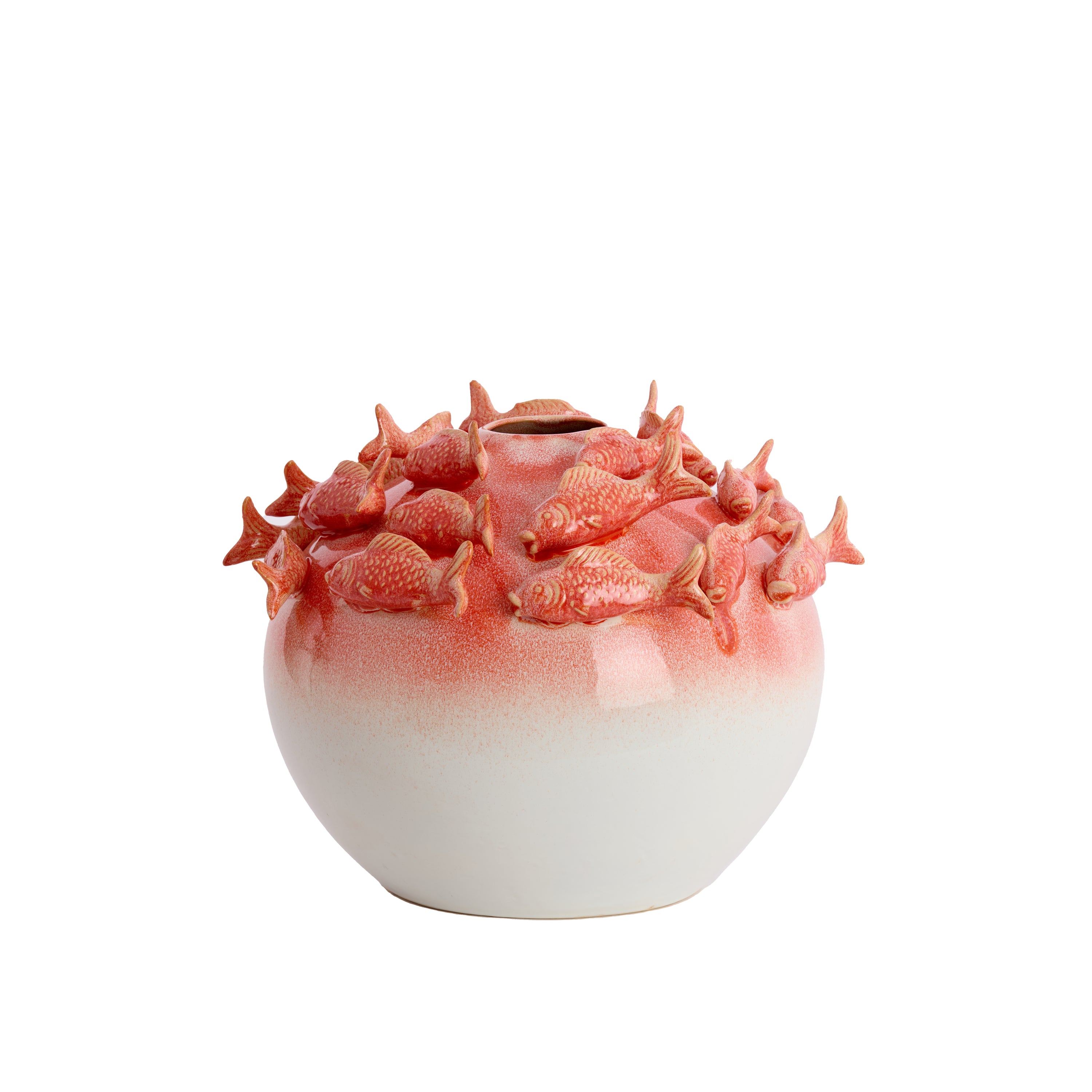 Vaas deco Ø41,5x32 cm FISH keramiek koraal+crème is gemaakt en ontwerpen door het Nederlandse merk Light & Living.