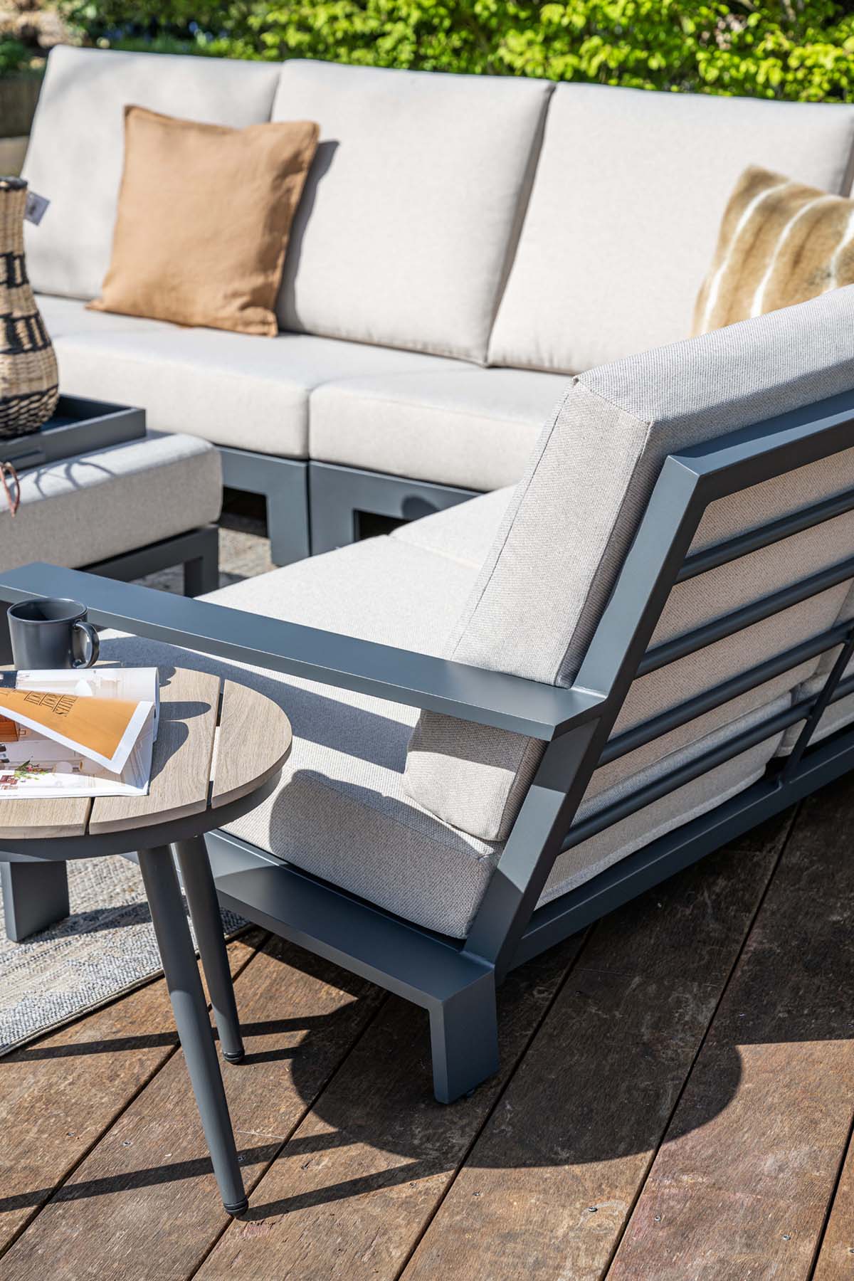 Met het Lincoln middenelement voeg jij gemakkelijk een extra zitplek toe aan je Lincoln loungeset. Dankzij het moderne design en het uitstekende comfort kun je langdurig genieten van dit middenelement. Het Lincoln middenelement is gemaakt van aluminium, wat het onderhoudsvriendelijk en weerbestendig maakt. De kussens worden standaard meegeleverd en hebben een waterafstotende coating, zodat je het water van een korte regenbui gemakkelijk van de kussens kunt kloppen. Ook zijn de kussenhoezen afritsbaar.