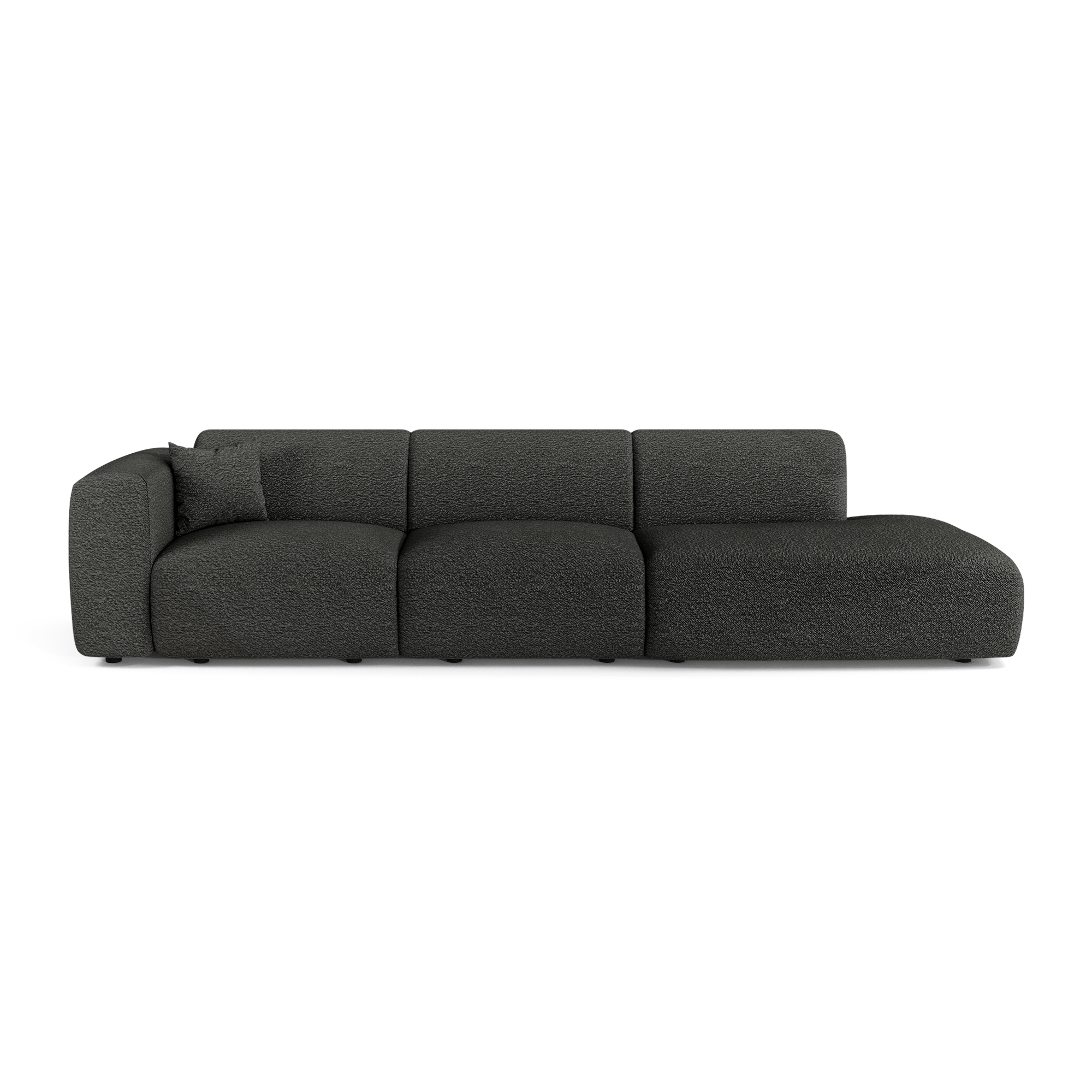 Linker 5-zitsbank in donker antraciet bouclé stof, 310 cm