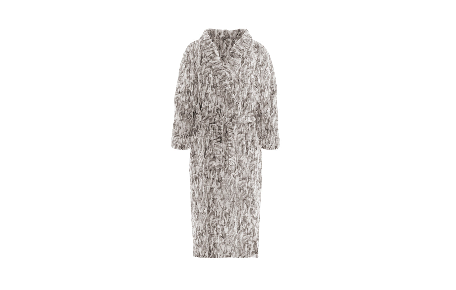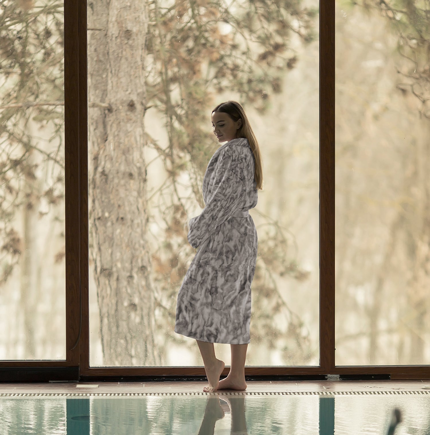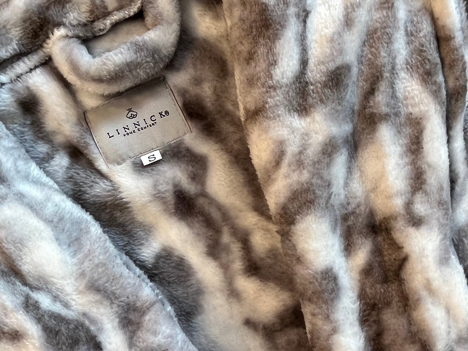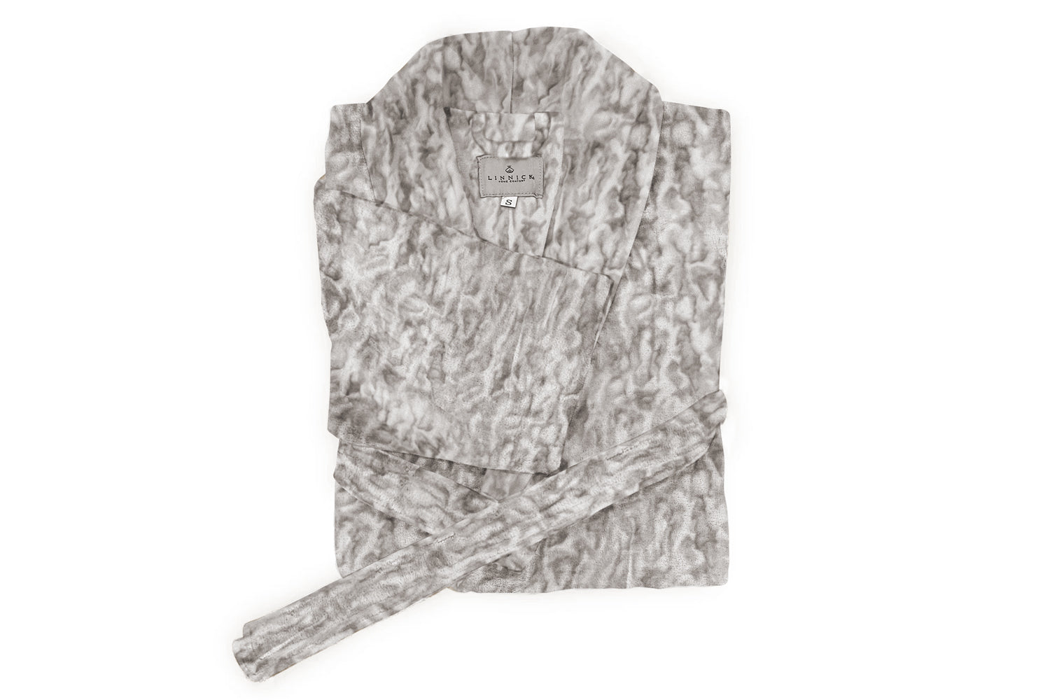 Op zoek naar een knusse badjas die er ook nog eens trendy uitziet? Deze lange fleece badjas van LINNICK in een print met vacht structuur is precies wat je nodig hebt. Heerlijk zacht en warm, perfect voor een relaxed dagje thuis, na een douche of tijdens een saunabezoek.
