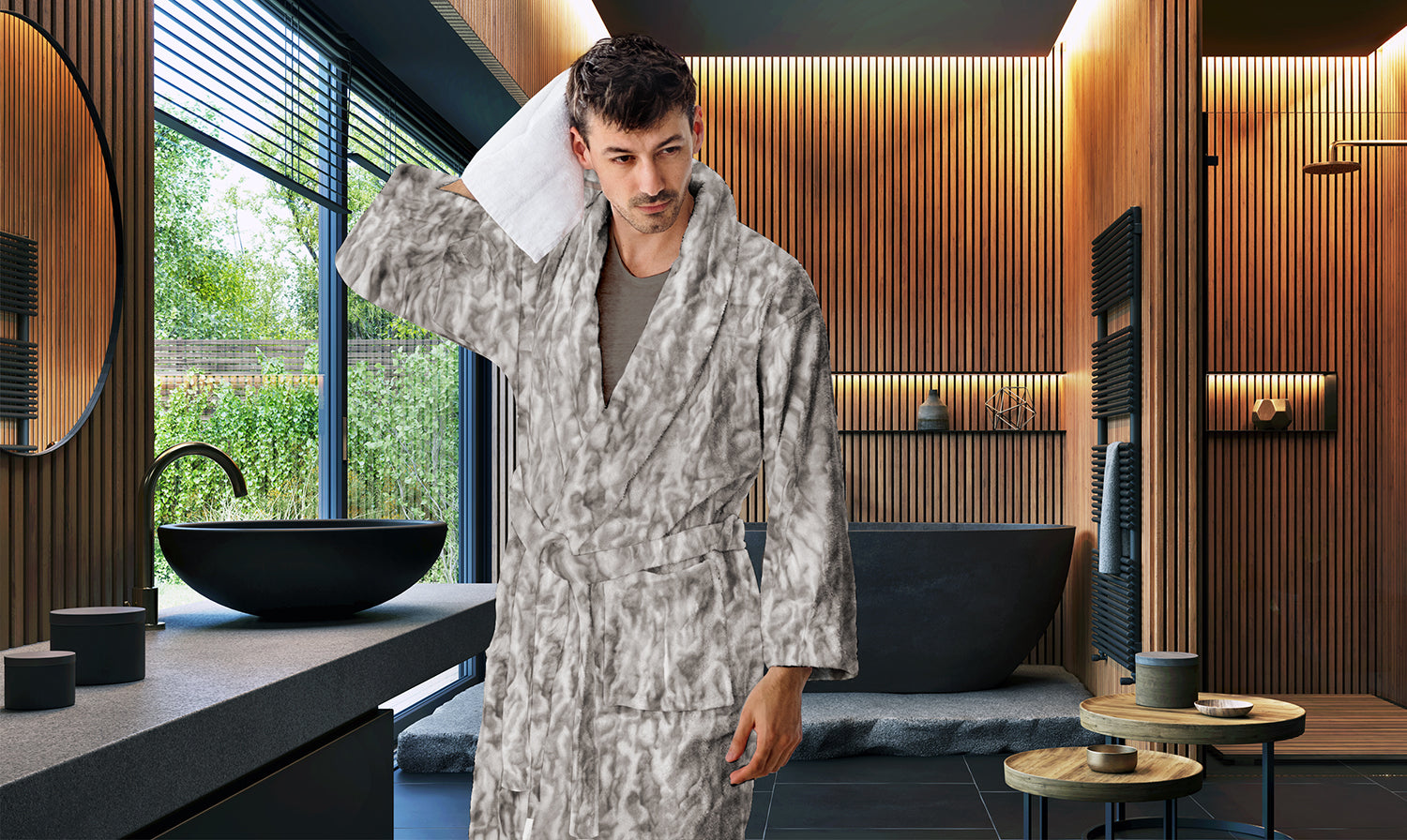 - Unisex badjas met een prachtige print die heerlijk is om aan te trekken in huis of voor een ontspannen dag in de sauna