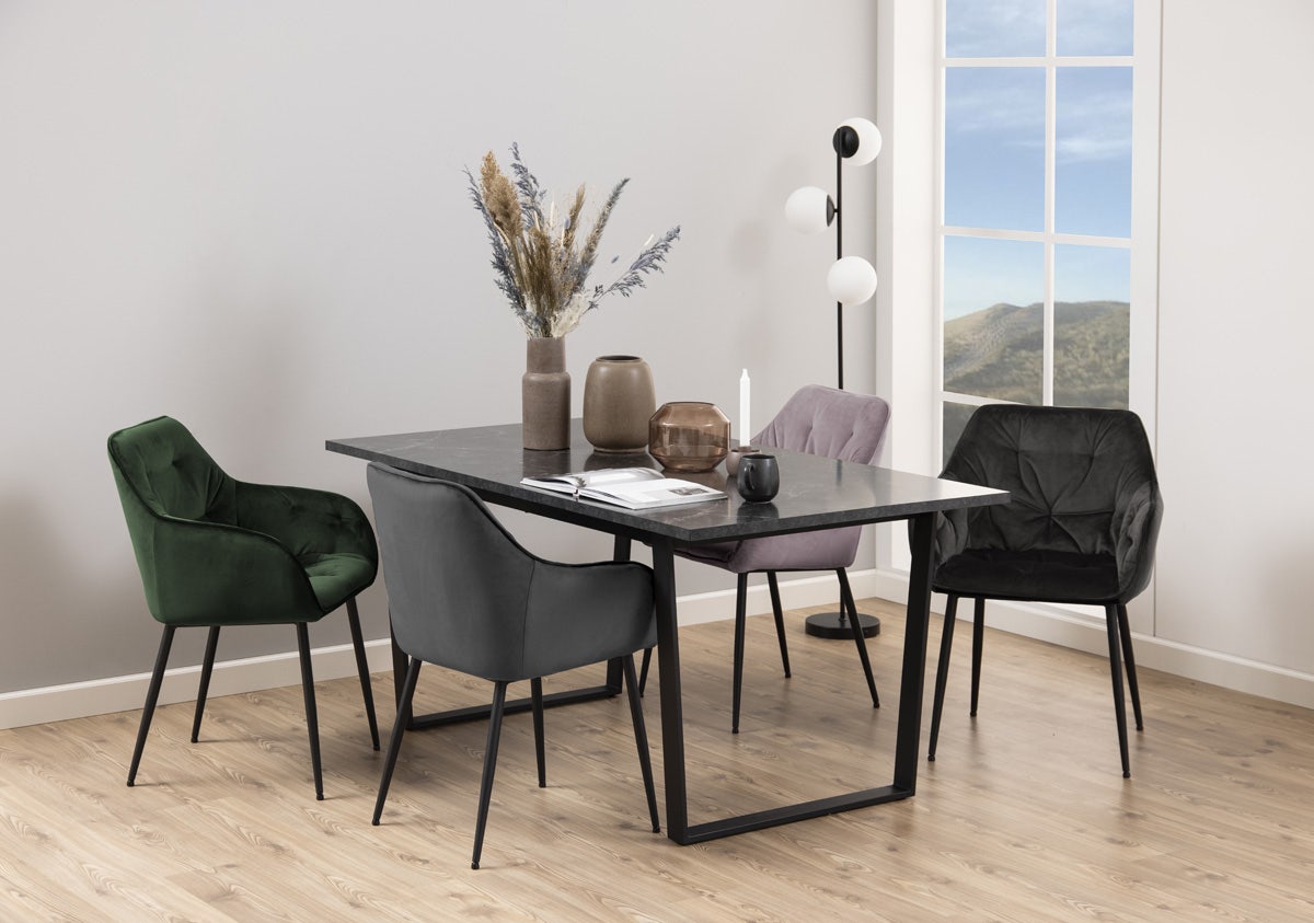De Arian velvet eetkamerstoel is perfect om uren mee na te tafelen.