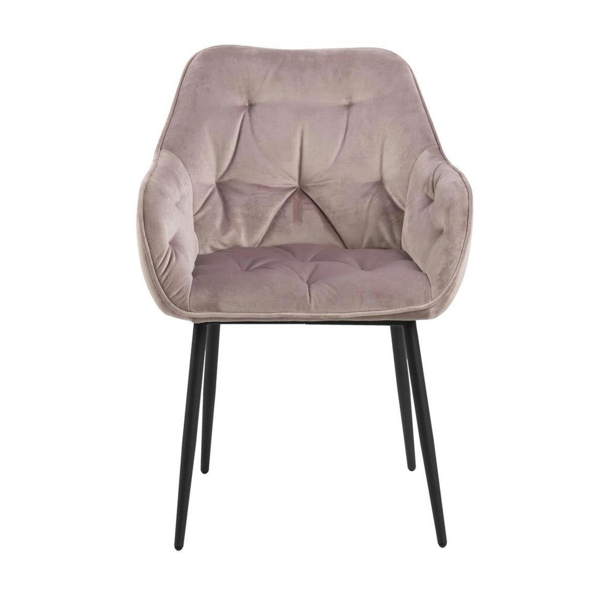 De zitting van de eetkamerstoel is volledig gevoerd met zacht foam en afgewerkt met een zachte velvet stof. Het zitgedeelde is extra comfortabel gemaakt en de armleuningen zitten op perfecte hoogte. Het onderstel is gemaakt van sterk metaal, wat de stoel ook een industriële touch geeft. Maar door de gecapitonneerde zitting weer erg retro is.