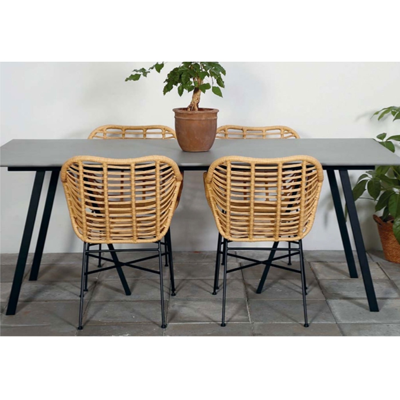 De rattan zitting vormt een mooi contrast met het metalen onderstel, dat de stoel dankzij het metalen kruis een moderne uitstraling geeft. Het leuke aan de Dax eetkamerstoel is dat deze is gemaakt van waterbestendig materiaal. Hierdoor kun je de stoel dus tevens als tuinstoel gebruiken! Behalve aan de eettafel is de stoel tevens leuk om bijvoorbeeld te gebruiken als sfeermaker in de kinderkamer of onder een leeslampje in de woonkamer.