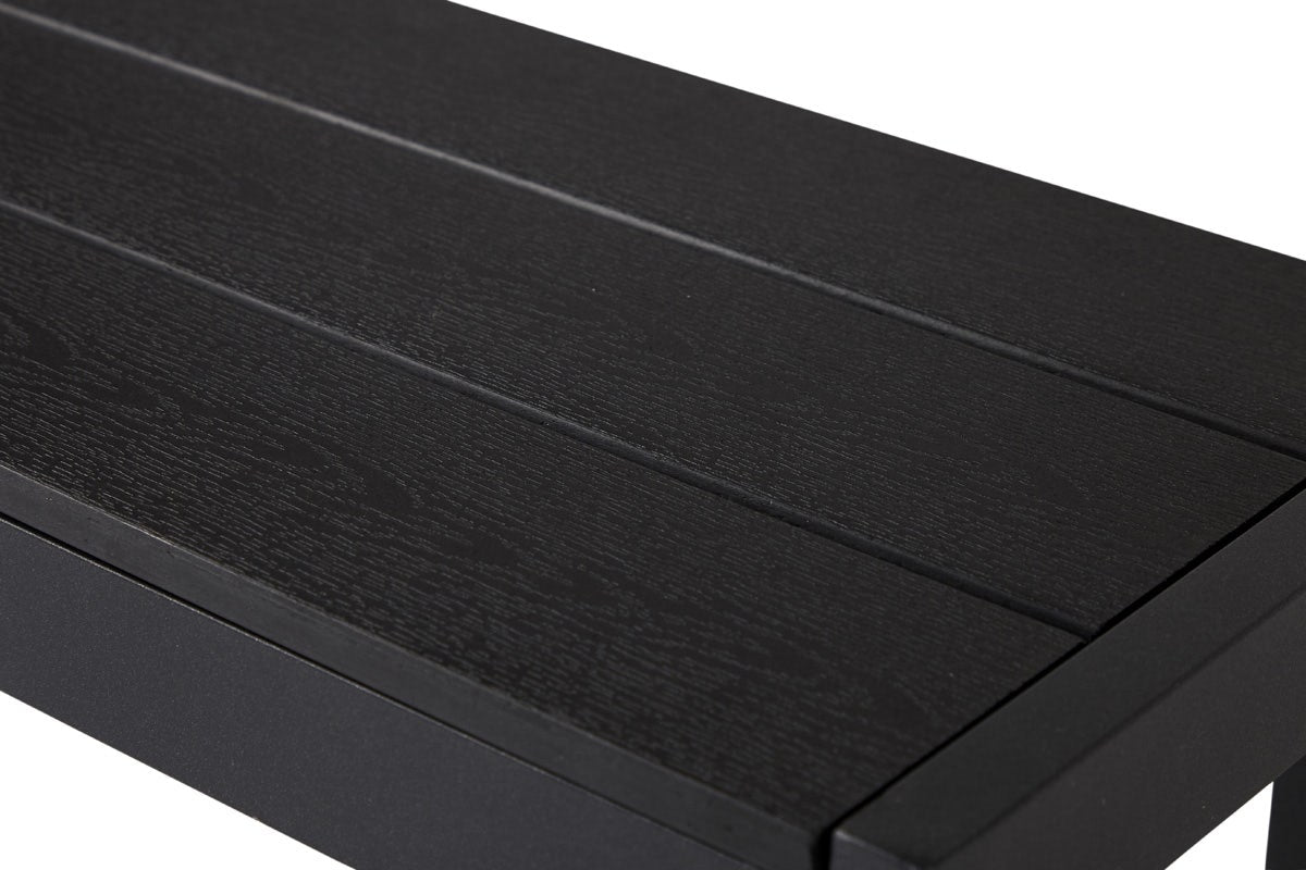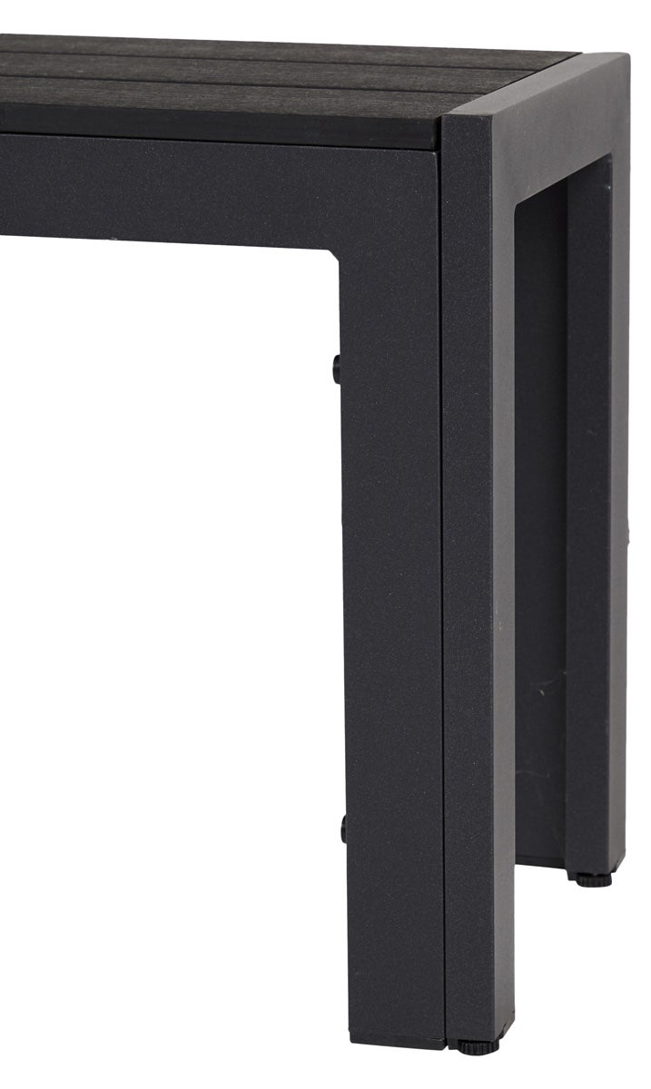 De Dylan tuinbank is gemaakt van lichtgewicht aluminium en heeft een zitting van polywood. Dit kunststof is ijzersterk en ziet eruit als hout, wat het bankje een natuurlijke uitstraling geeft. De zitting bestaat uit drie latten over de lengte, die elk 9,5 cm breed zijn. Deze tuinbank biedt extra zitplaatsen aan de tuintafel en neemt minder ruimte in dan stoelen rond de tafel. Ideaal dus als je een kleiner terras of balkon hebt. Ook leuk om als losse tuinbank op een plekje in de tuin of tegen het huis aan te zetten.