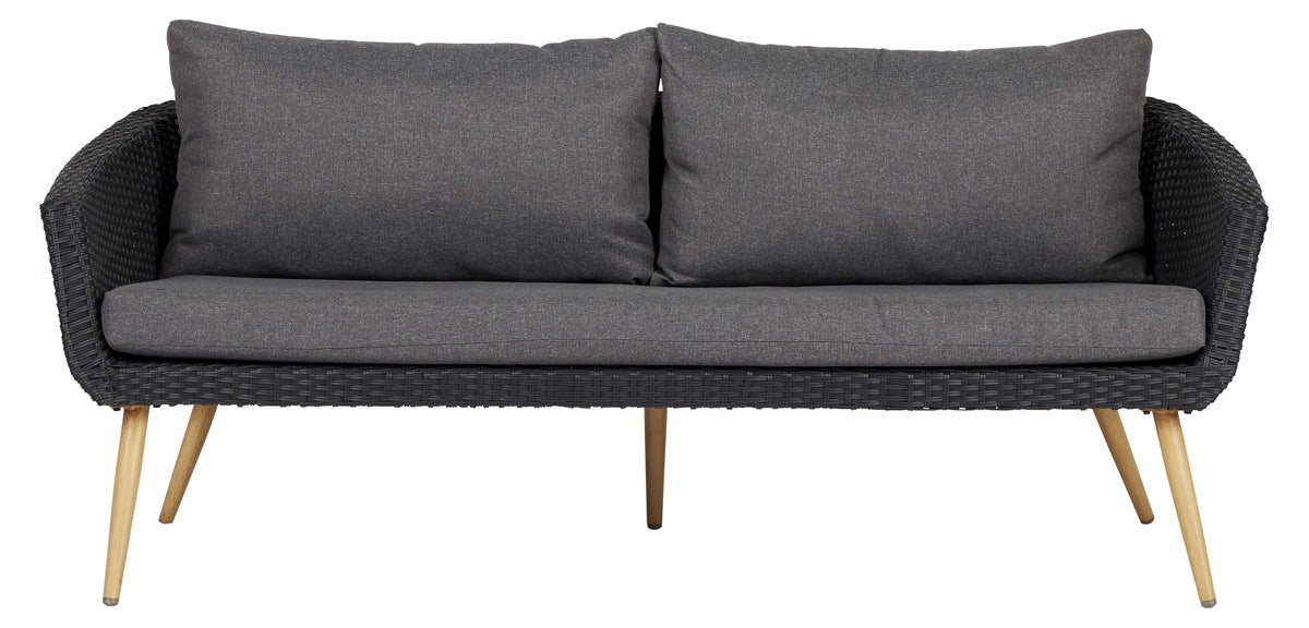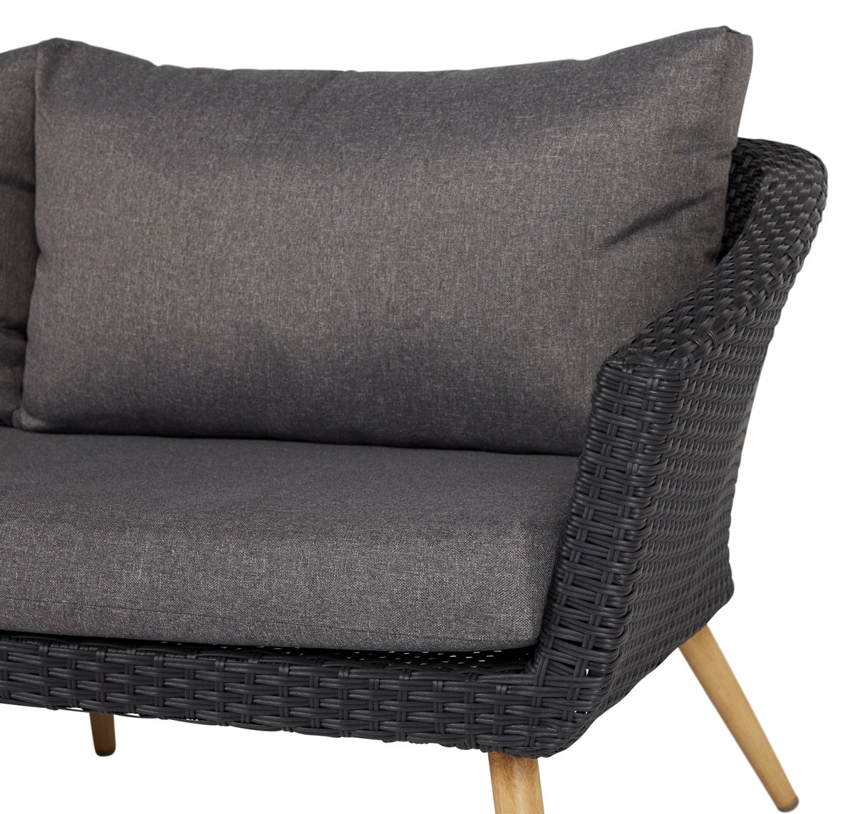 Lisomme Fien rotan tuinbank zwart - Met zitkussens