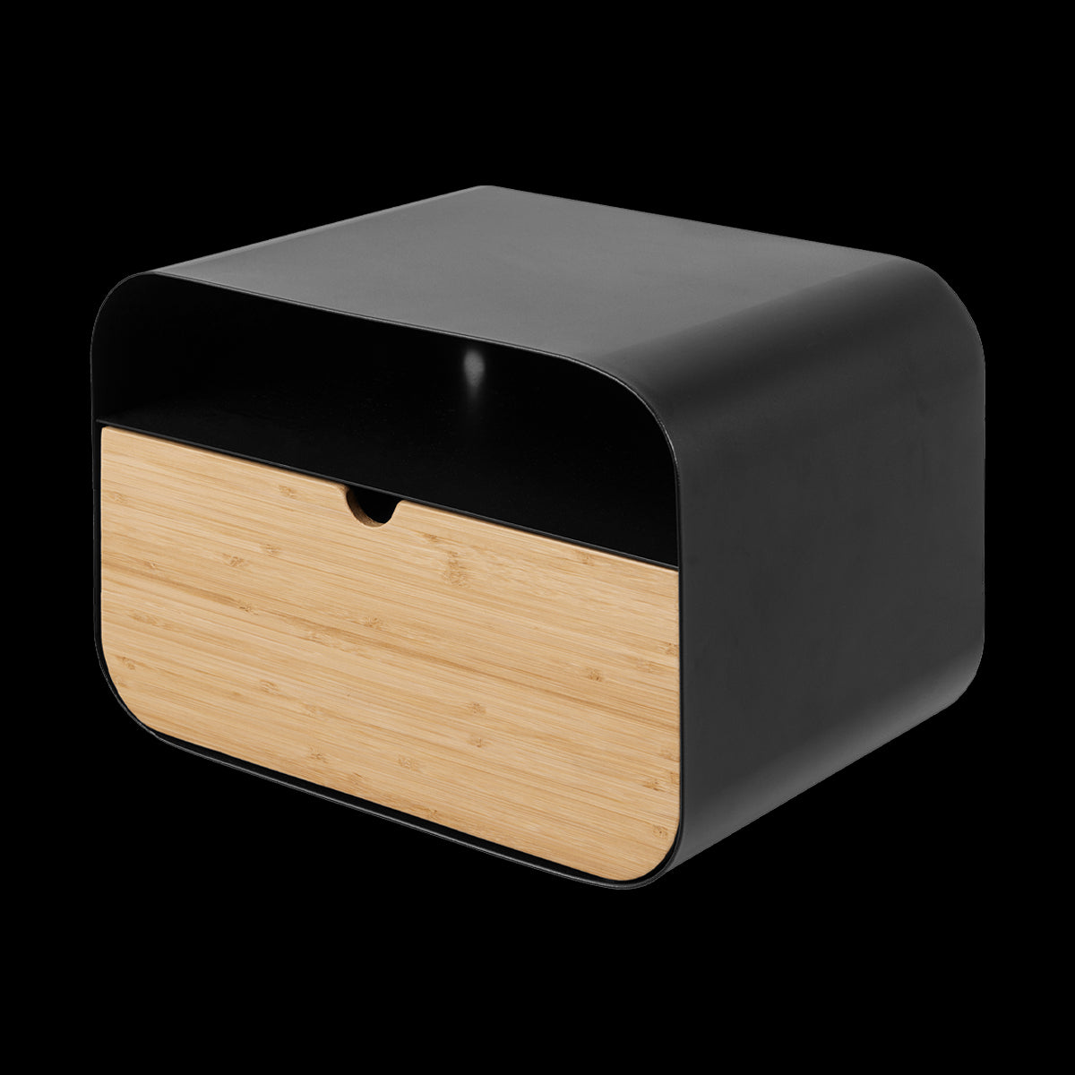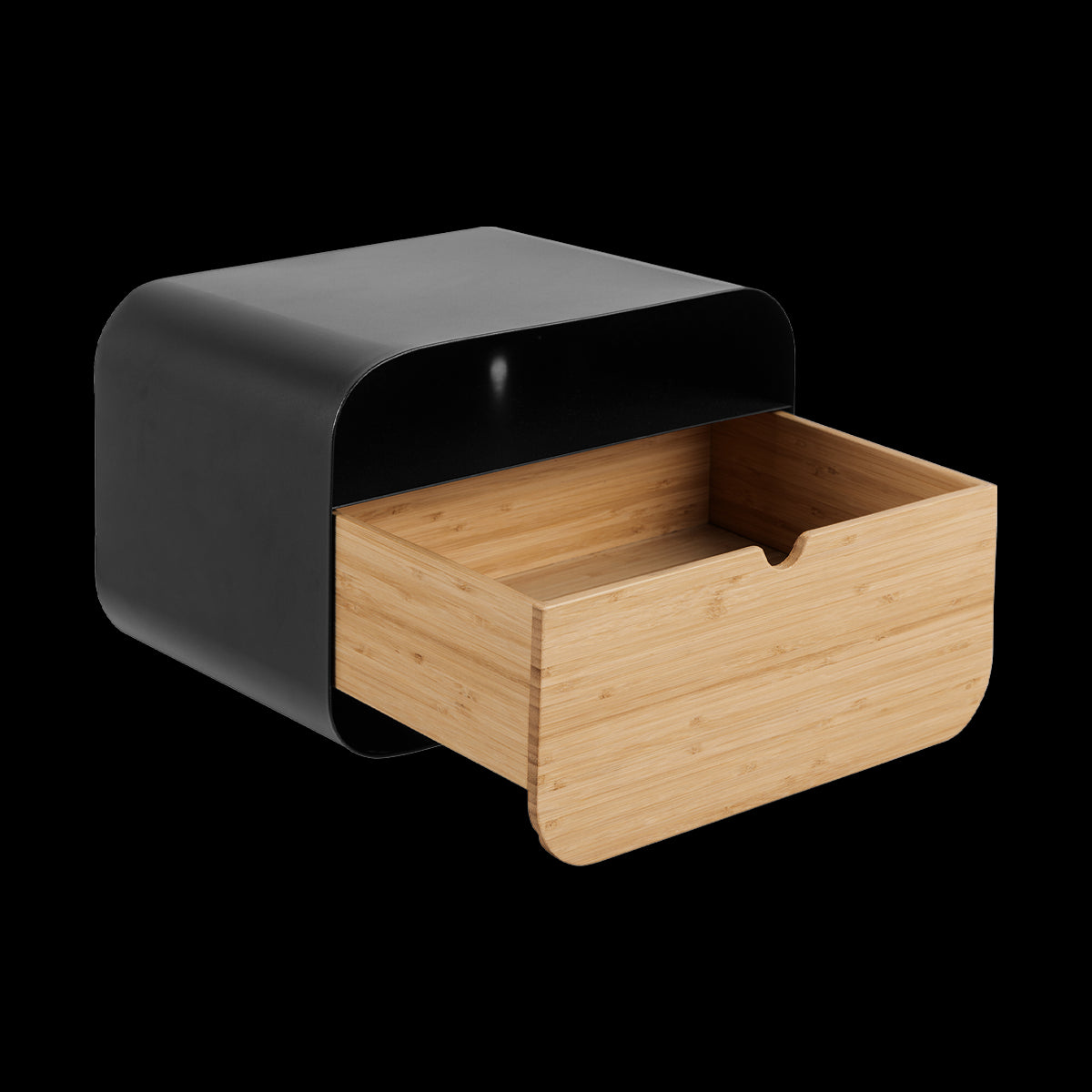 Het Jikke nachtkastje van Lisomme is niet alleen een stijlvol meubelstuk, maar ook een slimme oplossing voor elke slaapkamer. Dit zwarte, metalen nachtkastje heeft een industriële uitstraling die perfect aansluit bij moderne en minimalistische interieurs. Dankzij de zwevende vormgeving creëer je een ruimtelijk en luchtig effect in je slaapkamer. De houten lade biedt voldoende opbergruimte voor je persoonlijke spullen, terwijl de extra ruimte boven de lade ideaal is voor boeken, je telefoon of bril.