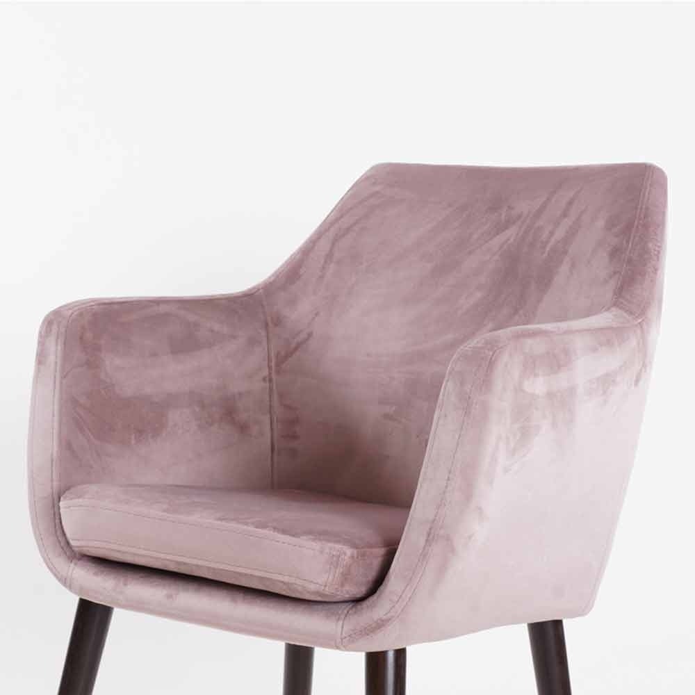 De stoel is bekleed met velours stof, wat de stoel een chique uitstraling geeft. Door het dikke zitkussen, de brede zitting en de hoge armleuningen heb je urenlang comfortabel zitplezier. De combinatie van het velours en de houten poten zorgen voor een elegante uitstraling. De ergonomische stoel is de perfecte stoel voor aan jouw eettafel. De poten zijn gemaakt van duurzaam eikenhout wat is behandeld met olie. Op deze manier blijven de pootjes in goede staat en heb je jarenlang plezier van de stoel! Bovendien is de achterzijde van de stoel afgewerkt met een subtiele rits.