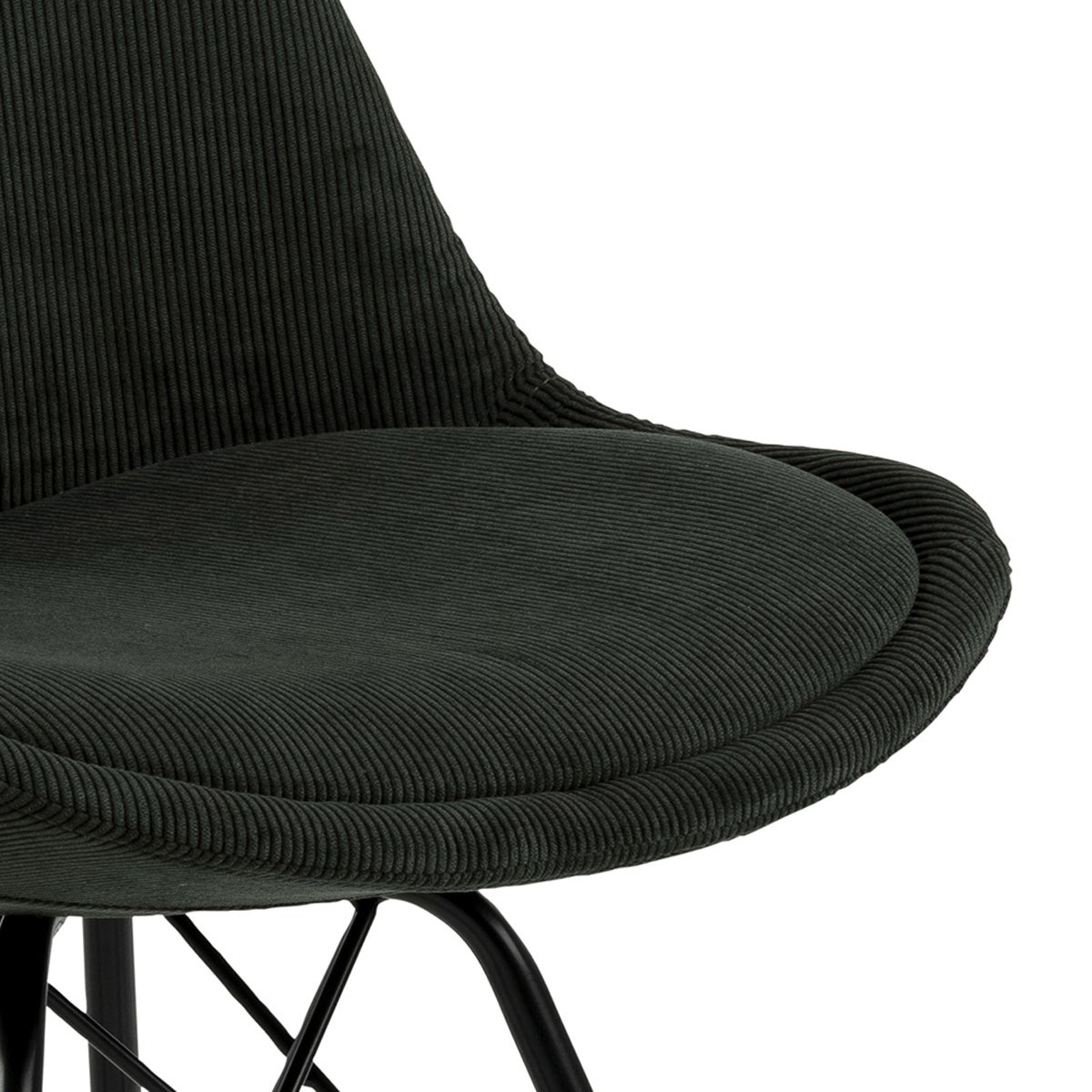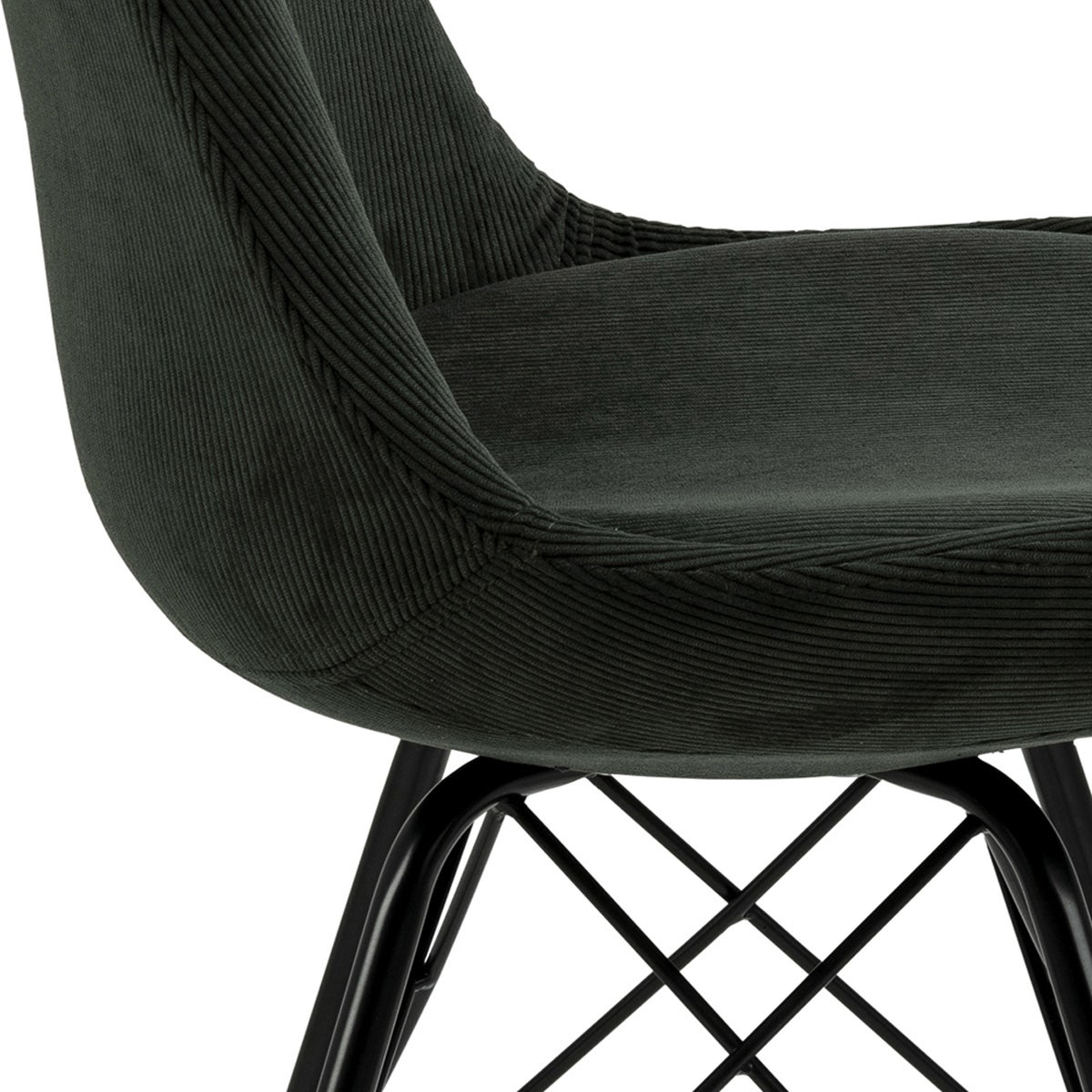 Urenlang natafelen is geen enkel probleem met deze kuipstoel. De stoel is volledig gestoffeerd met een zachte ribstof en ontworpen met een dik vast zitkussen. Doordat hij zowel bij de rugleuning als het zitgedeelte is gevoerd maakt het de eetkamerstoel extra comfortabel. Het onderstel is gemaakt van zwart metaal en wordt verstevigd met twee metalen kruizen.