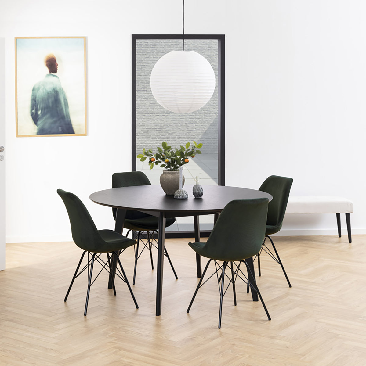 Lisomme Pien Eetkamerstoel Ribstof Donkergroen - Zwarte Poten