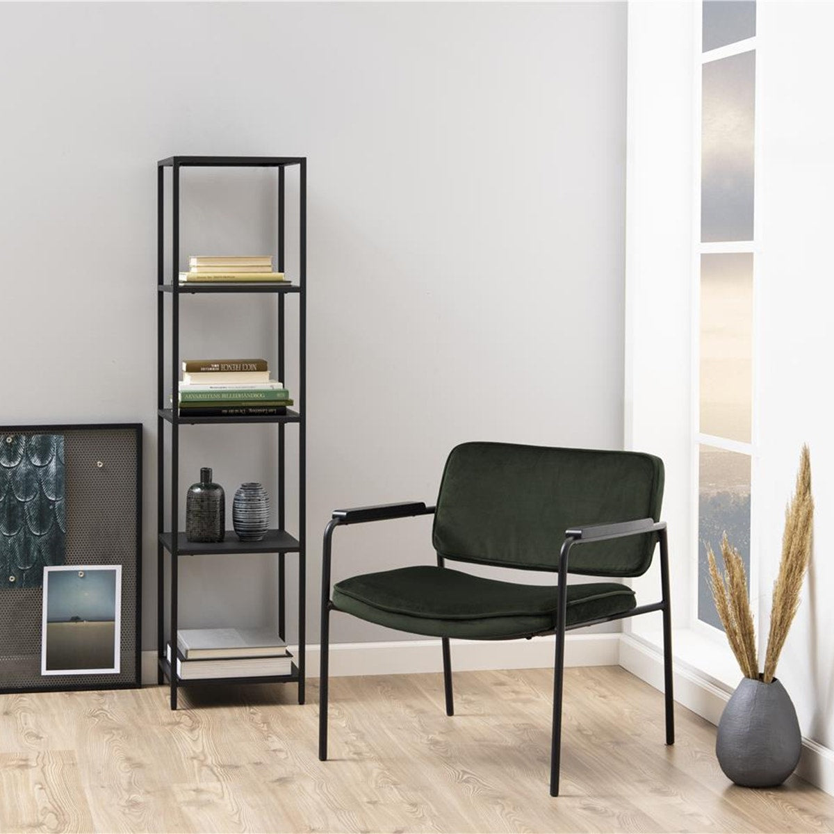 Deze prachtige opbergkast Roy van Lisomme heeft een industriële stijl en is aanwinst voor ieder interieur. De open kast heeft 4 ruime planken om je boeken, accessoires of fotolijstjes te plaatsen. De industriële wandkast is een praktisch ontwerp om al jouw mooie spulletjes te tonen. De kast is gemaakt van metaal en het zwart metalen frame is afgewerkt met een poedercoating. Hierdoor krijgt de kast een stoer aanblik. Kortom, wanneer je zoekt naar een wandkast met een industriële look, dan is deze kast perfect voor jou!