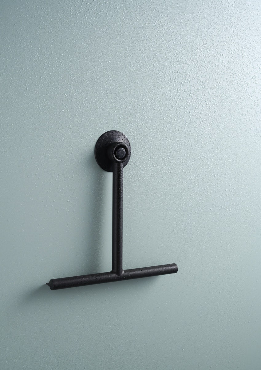 De Wick badkamer wisser is gemaakt van kunststof en heeft een rubberen strip die streeploos schoonmaakt. De wisser is 21,5 centimeter hoog, 21 centimeter breed en 3 centimeter dik. Doordat de wisser van kunststof is gemaakt, is hij erg licht van gewicht end is fijn om te gebruiken. Door de matzwarte afwerking heeft deze badkamer wisser een modern en stijlvol design, dus mag hij best in het zicht hangen. Gebruik de wisser op de douchewand en tegels zodat je kalkvlekken voorkomt en de badkamer mooi schoon houdt. Door de zuignap is de Wick badkamer wisser eenvoudig op te hangen. Dat gaat het beste op een schoon en glad oppervlak.