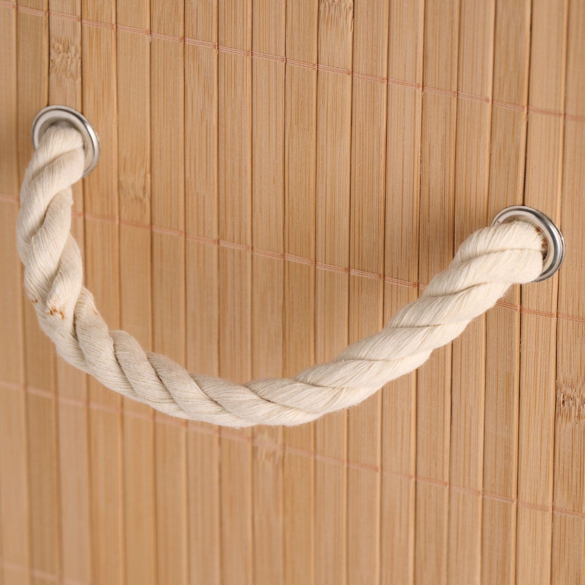 - De wasmand heeft twee handvaten van touw. Ook het deksel is voorzien van een handvat
