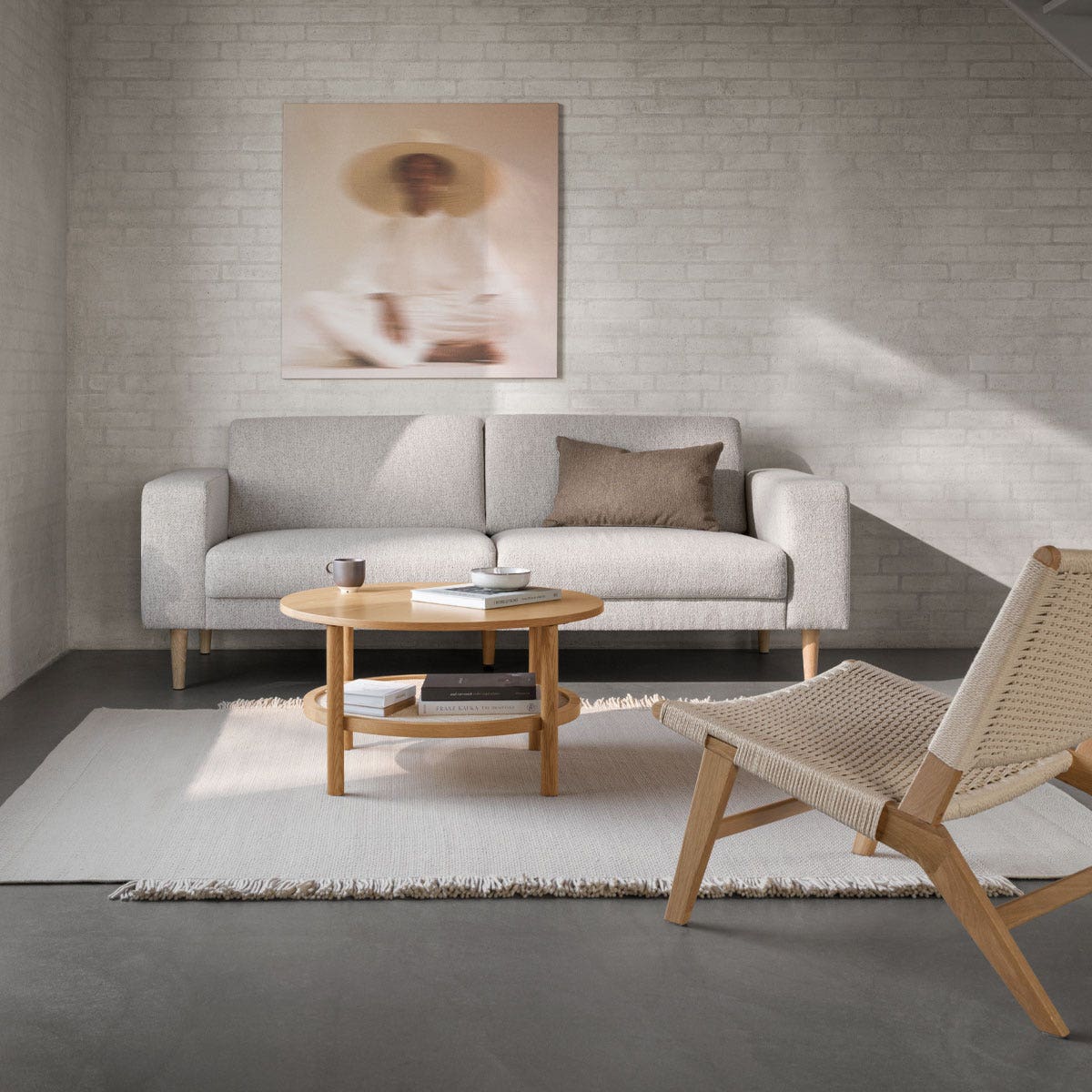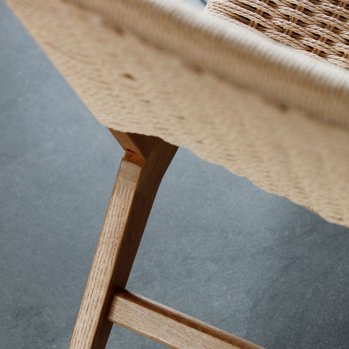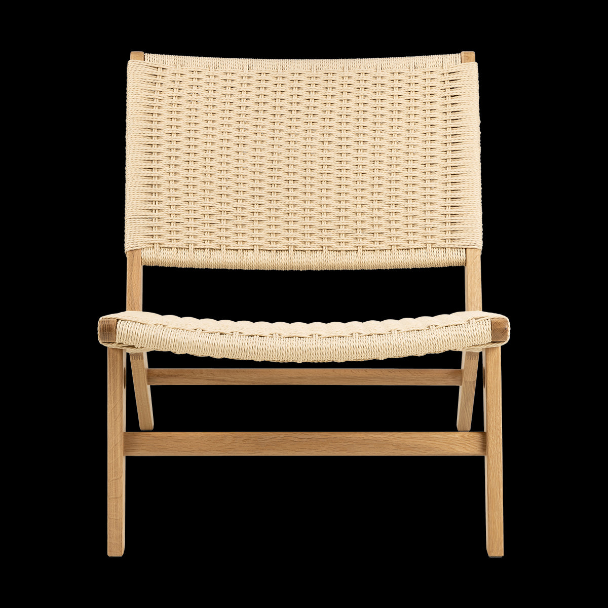 Deze fauteuil is gemaakt van hout en heeft een comfortabele, gewoven zitting in een beige tint. Hierdoor heeft deze houten loungestoel de ultieme natuurlijke uitstraling die perfect aansluit bij de Scandinavische woonstijl. Het compacte formaat maakt deze kleine fauteuil perfect voor verschillende ruimtes, van de woonkamer tot een knusse leeshoek. Het natuurlijke hout en de neutrale beige tint creëren een warme, uitnodigende sfeer.