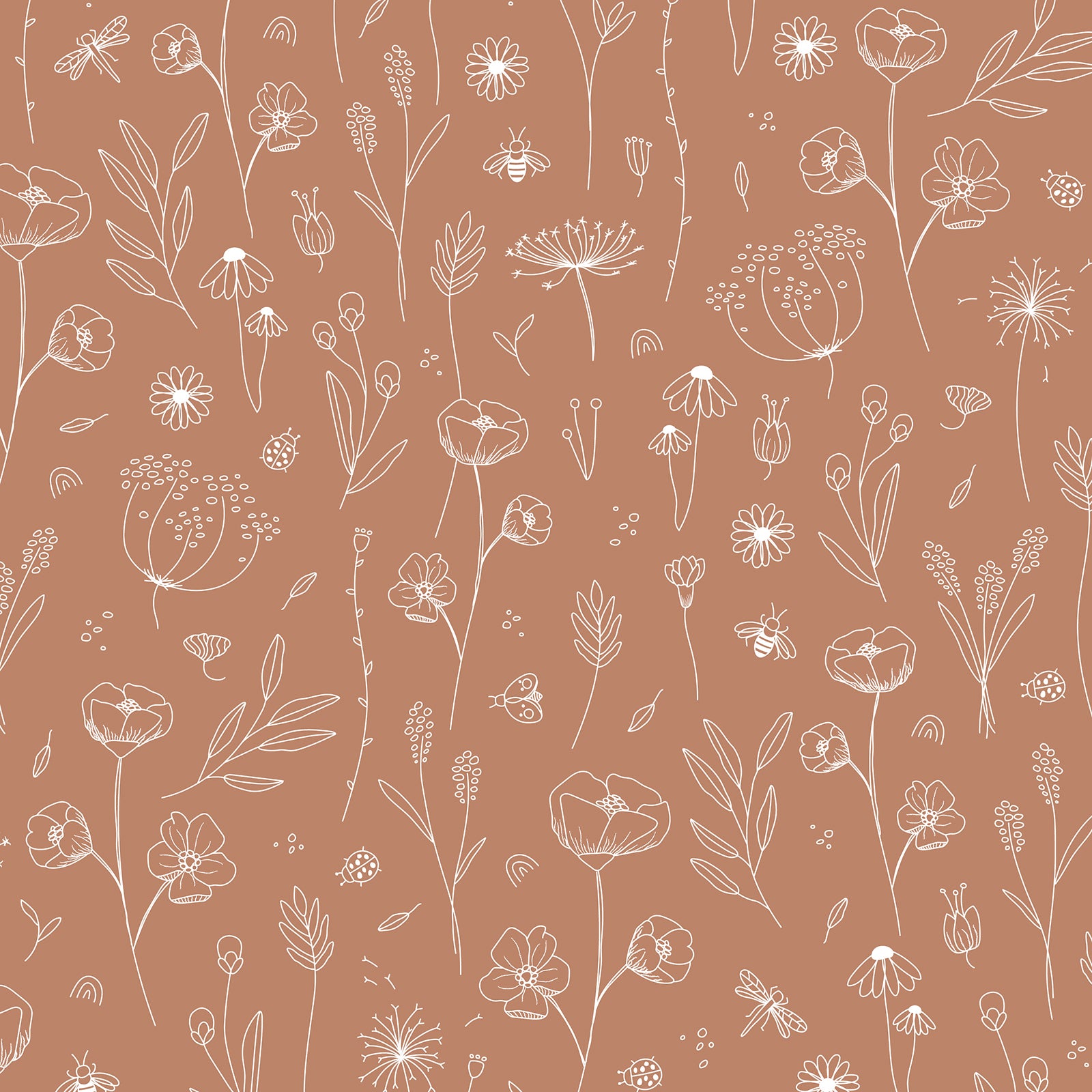 Little Dutch - Vliesbehang - Wild flowers Rust - Oranje - 10mx53cm