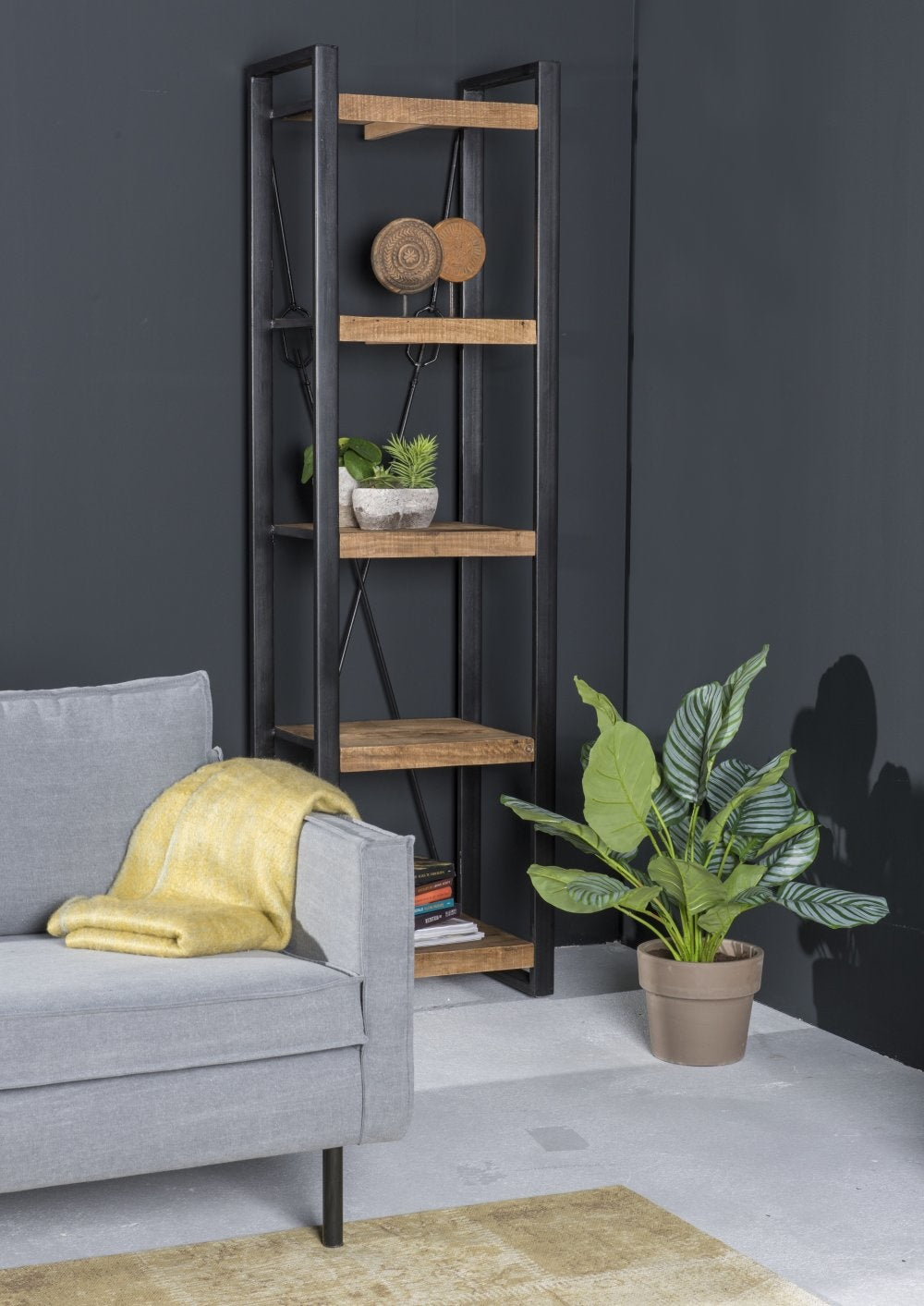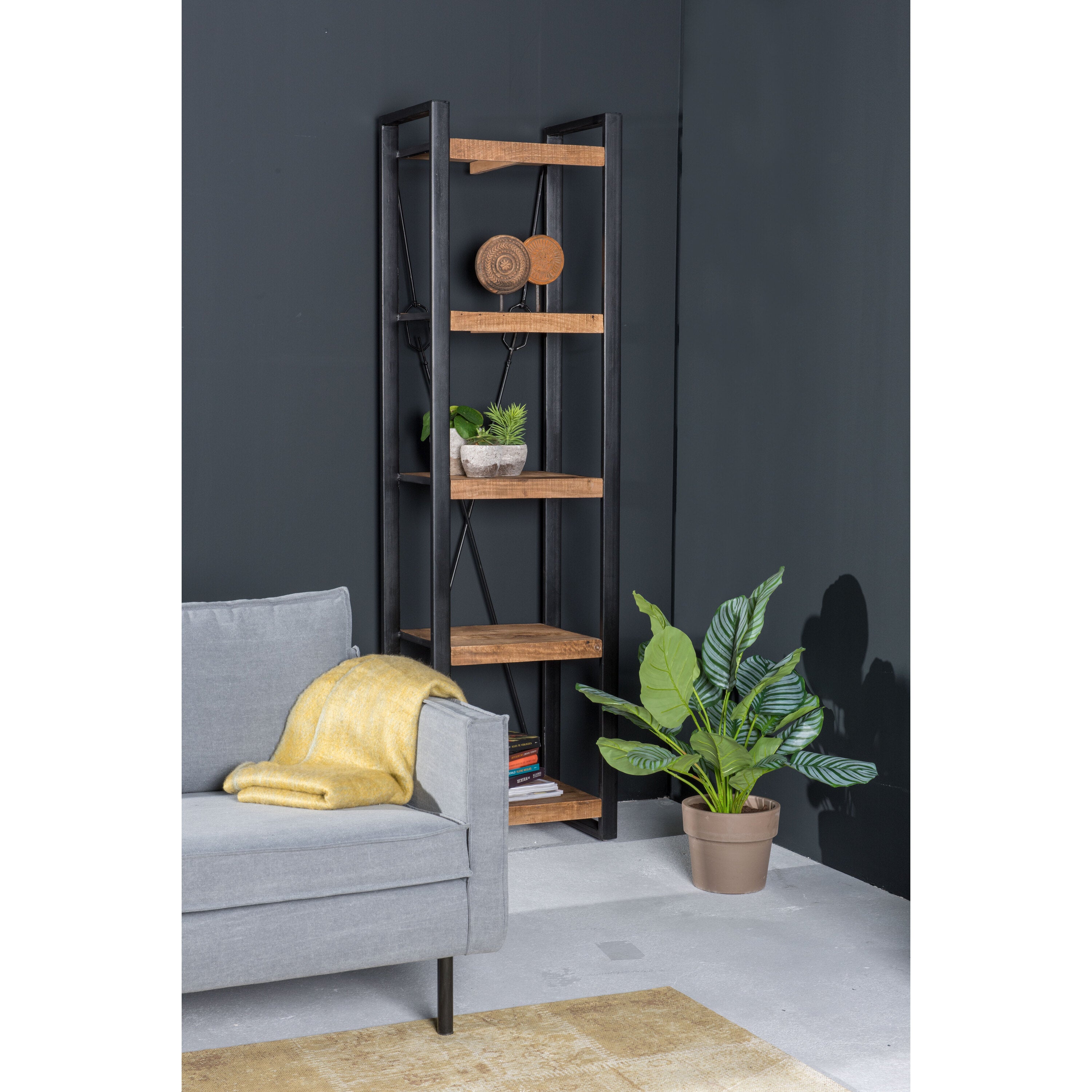 Livingfurn - Boekenkast Strong - 200cm - Mangohout en Gecoat Staal