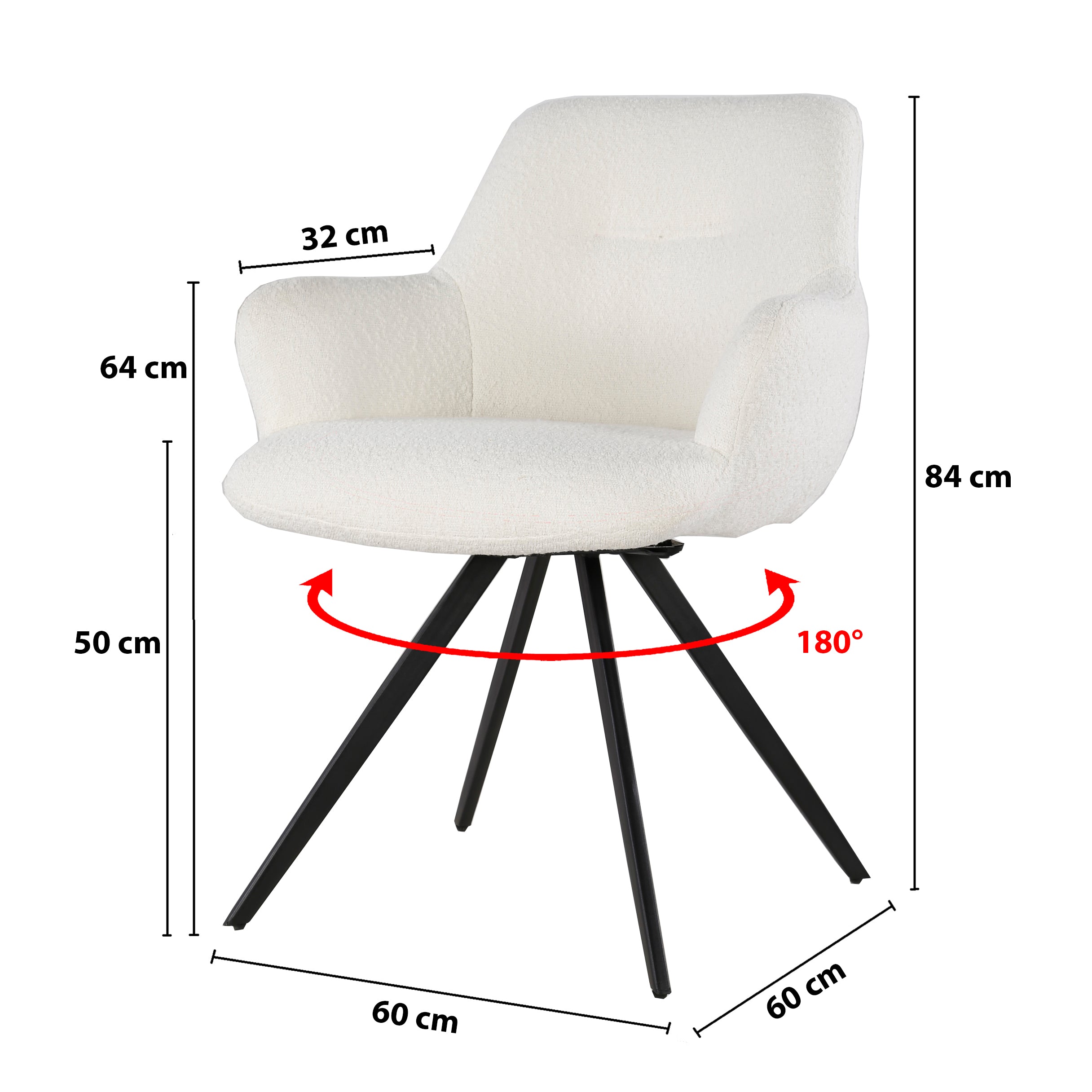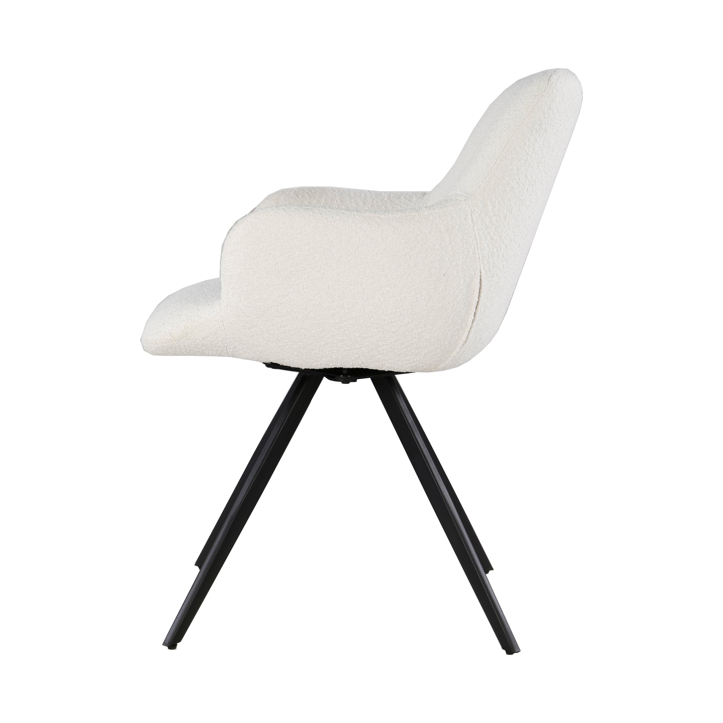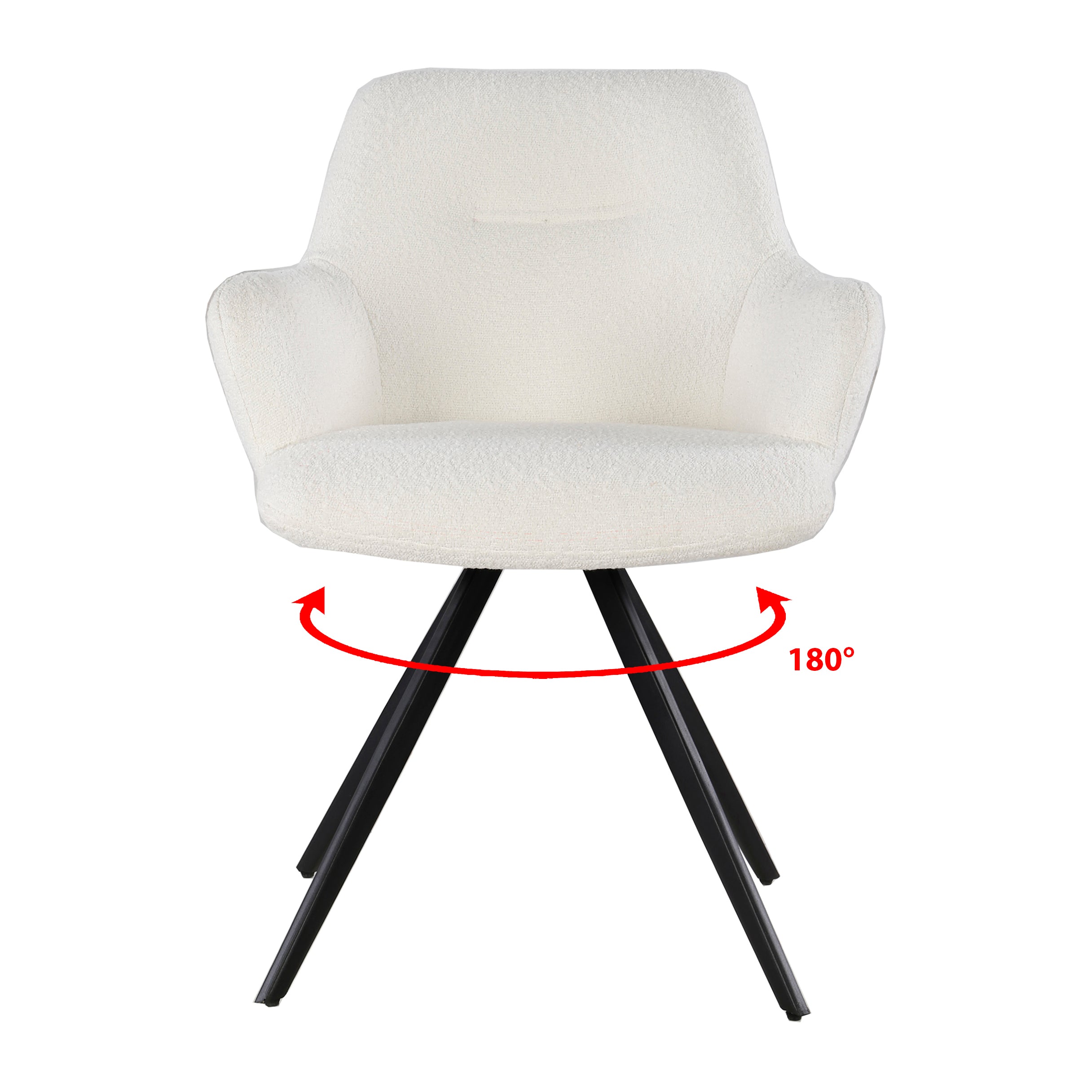 Livingfurn - Giga Meubel - Eetkamerstoel Doreen Bouclé Wit Draaibaar