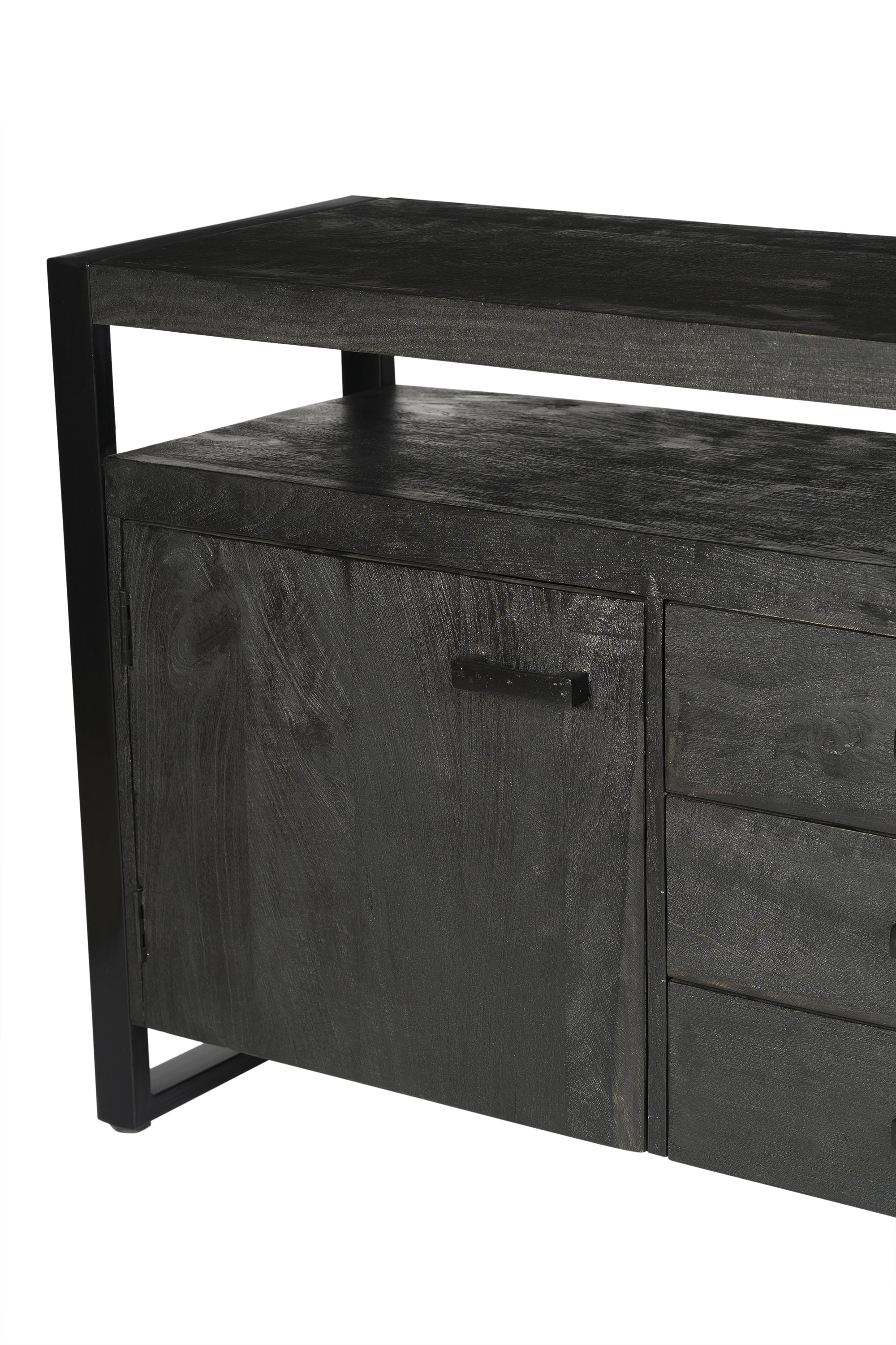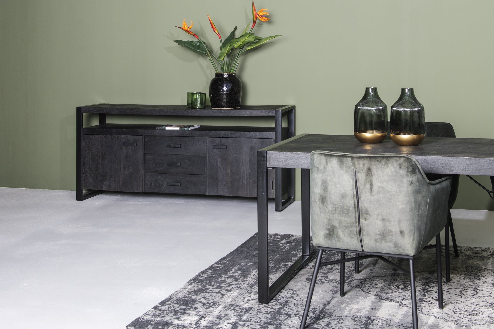 Het Livingfurn Norris dressoir heeft een eigentijds design dat moeiteloos past bij verschillende interieurstijlen, van modern tot industrieel. Het gebruik van zwart mangohout met een beschermende topafwerking zorgt voor een robuuste uitstraling die de aandacht trekt in elke kamer. Of het nu in de woonkamer, eetkamer of hal is, dit dressoir voegt een vleugje elegantie toe aan elke ruimte.