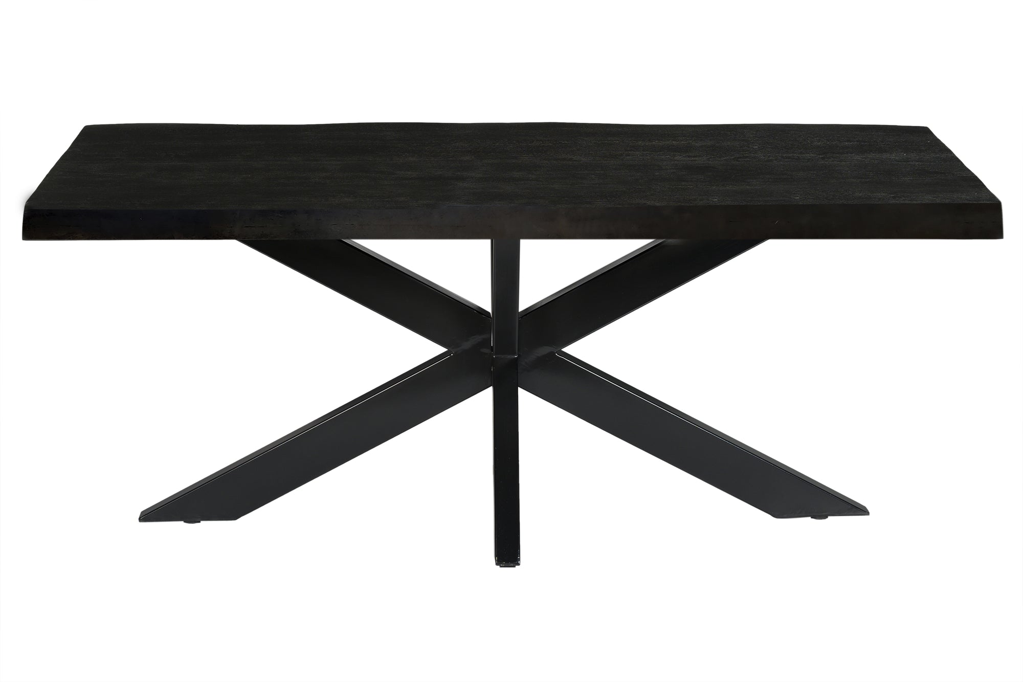 De Livingfurn Norris Tree Top Spider eettafel van 180x90x76 cm voegt een eigentijdse uitstraling toe aan elke eetkamer. Het robuuste materiaal- en kleurenschema, met zwart mangohout voorzien van een beschermende topafwerking, zorgt voor een duurzame en stijlvolle toevoeging aan je interieur.