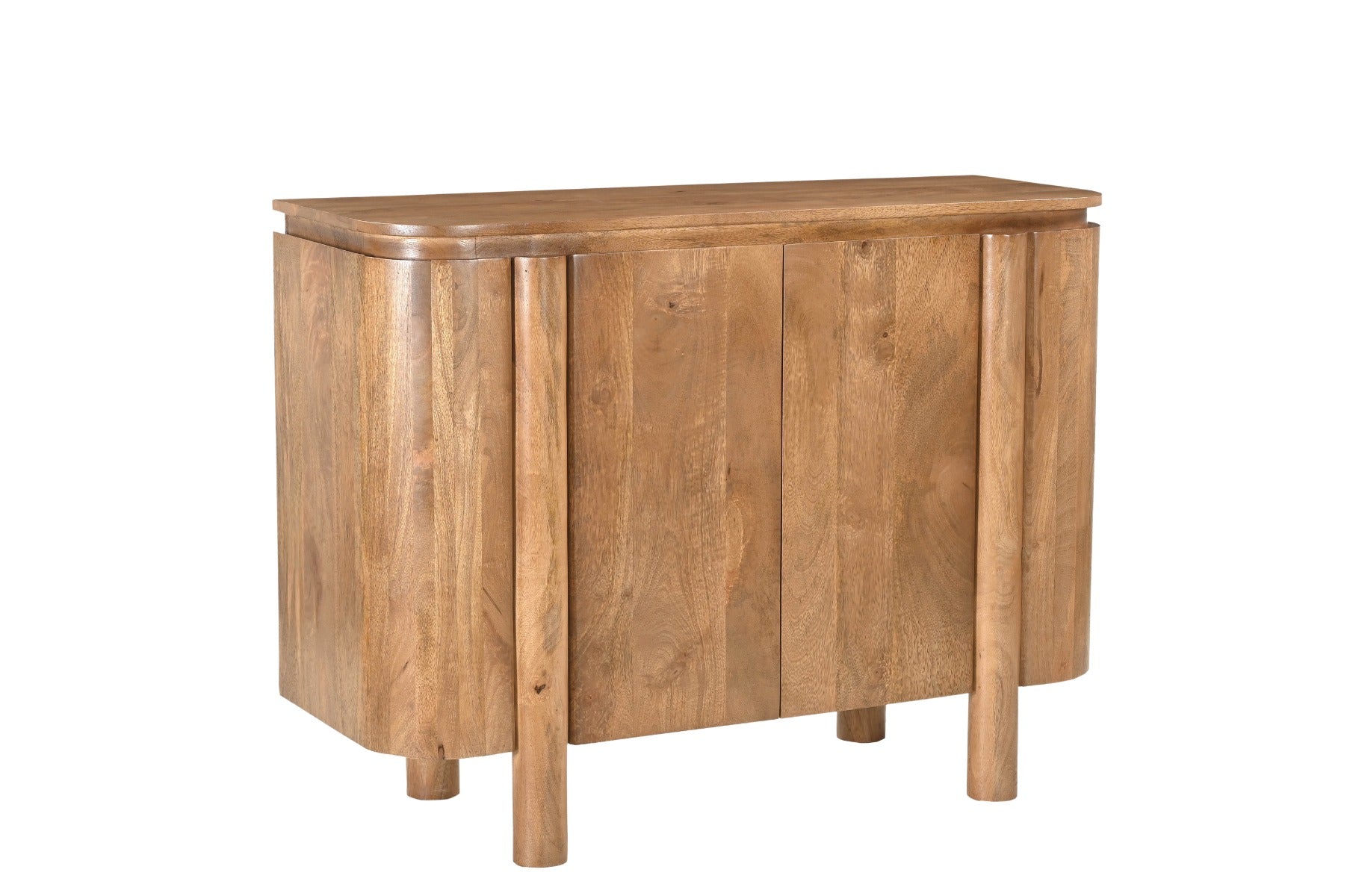 De afgeronde hoeken en zachte lijnen geven het dressoir een verfijnde uitstraling. Dit subtiele design zorgt ervoor dat het meubel moeiteloos past in diverse interieurstijlen, van modern tot landelijk.