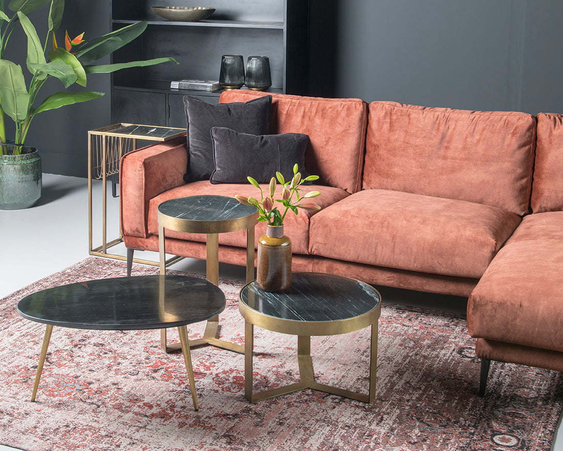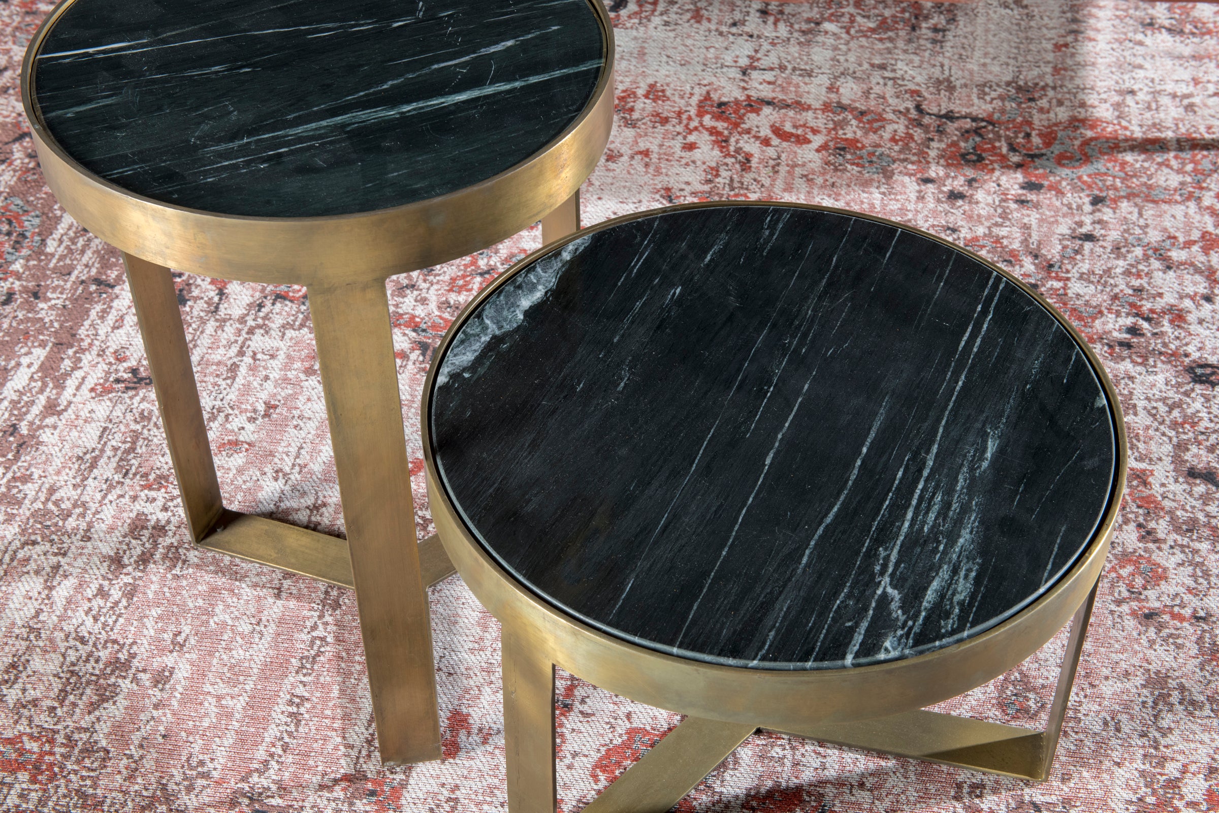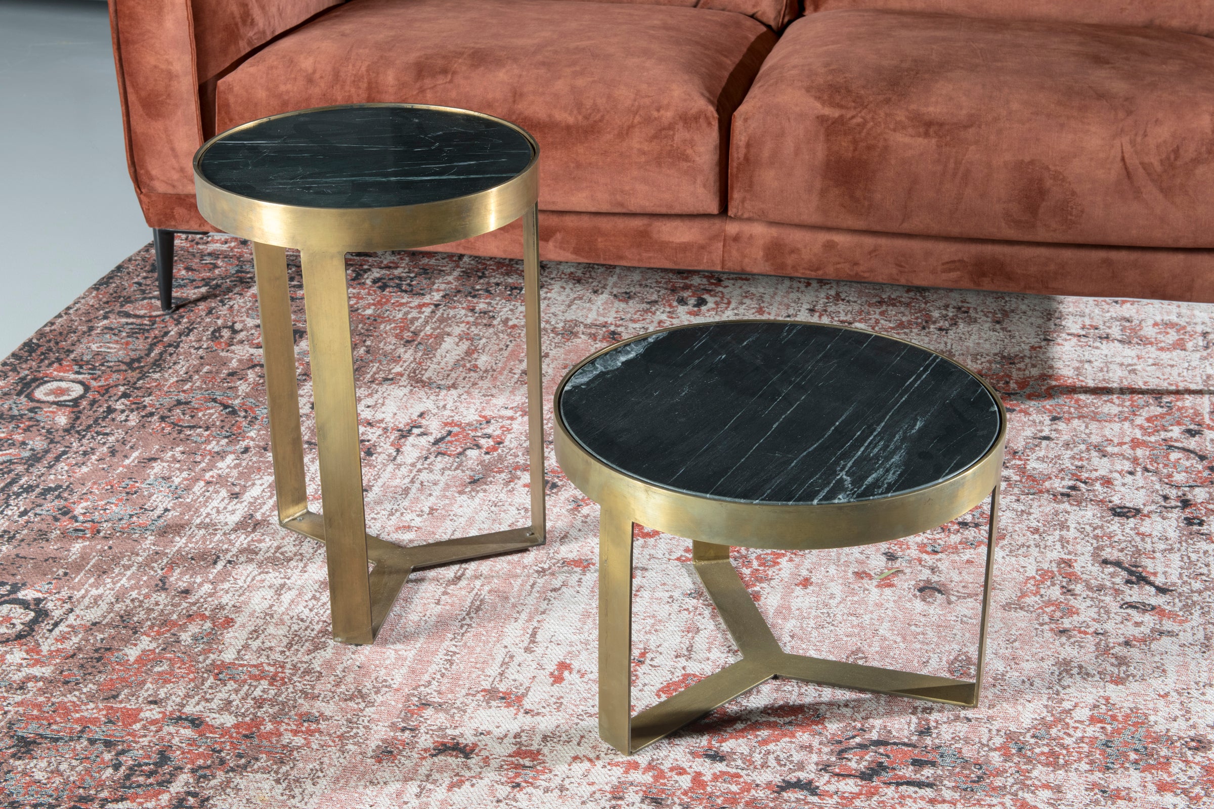 Livingfurn - Salontafel Glennis - Zwart Goud - 40x40x55cm - Marmer