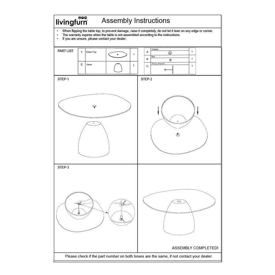Livingfurn - Salontafel Ivoor Glas - 110x65x35cm - Mylon